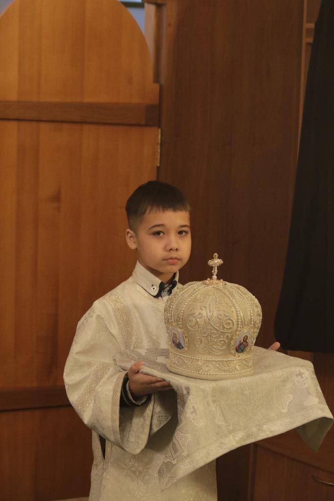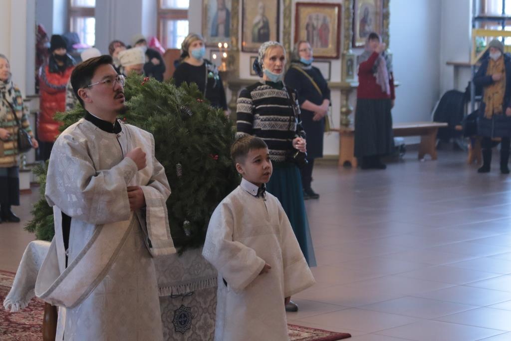 Праздничные песнопения исполнял хор кафедрального собора, регент Н. Романцова. В храме молились сотрудники епархиального управления, насельники Свято-Троицкого мужского монастыря города Усть-Каменогорска и прихожане кафедрального собора.