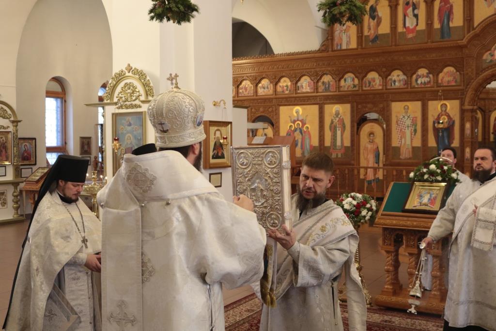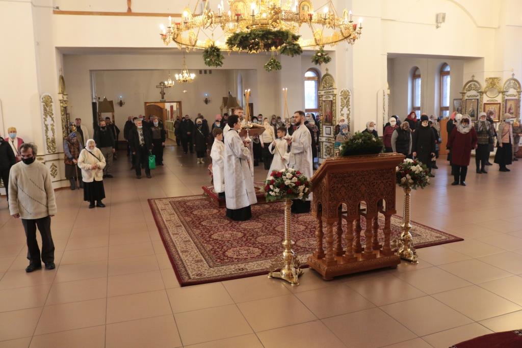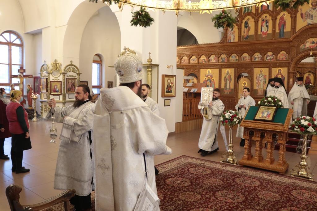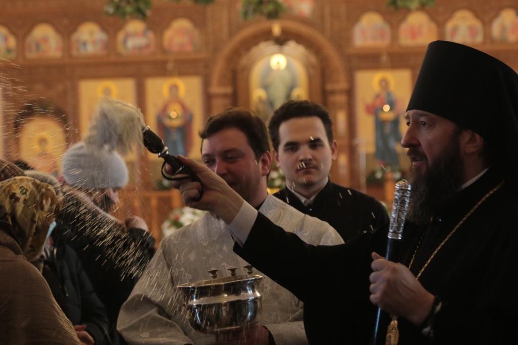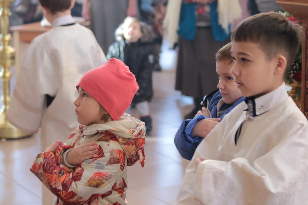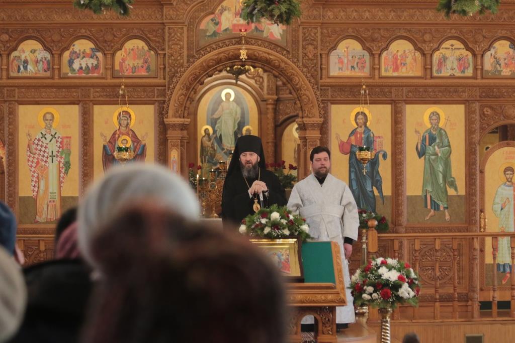 Перед причастием мирян священник Константин Дьяков огласил прихожанам Рождественское послание Преосвященнейшего епископа Усть-Каменогорского и Семипалатинского Амфилохия. После окончания Божественной Литургии Владыка епископ поздравил народ Божий с воскресным днем и обратился к христианам со словами наставления.