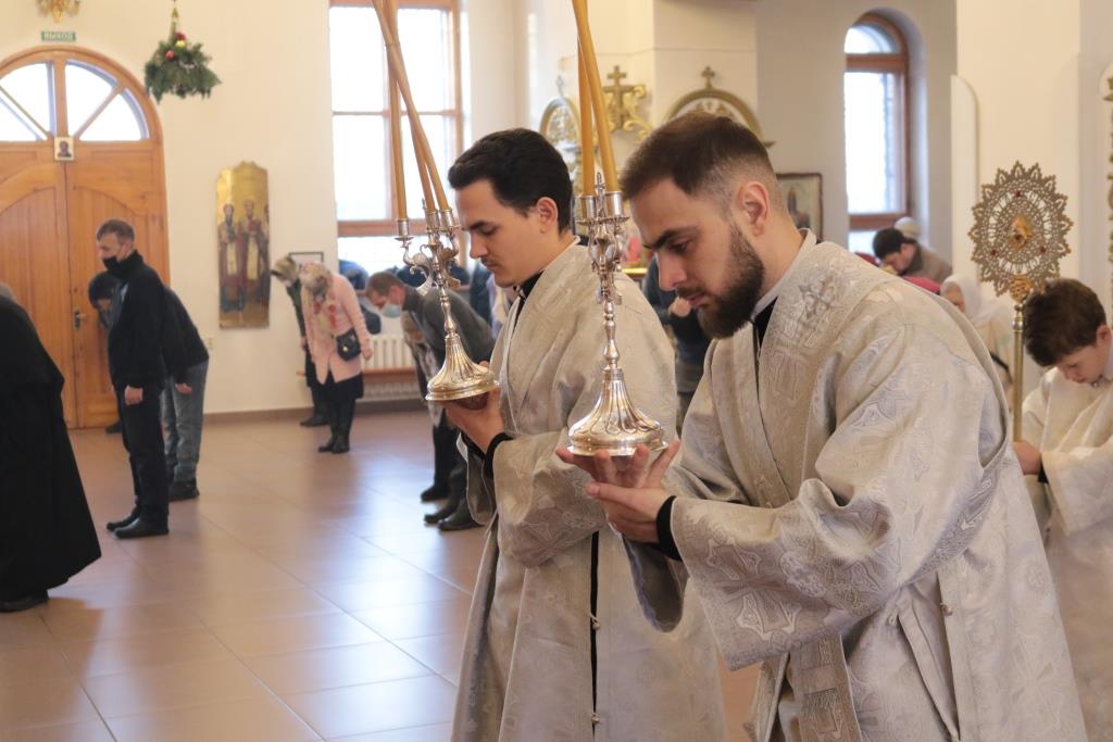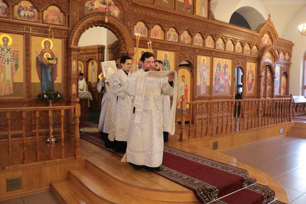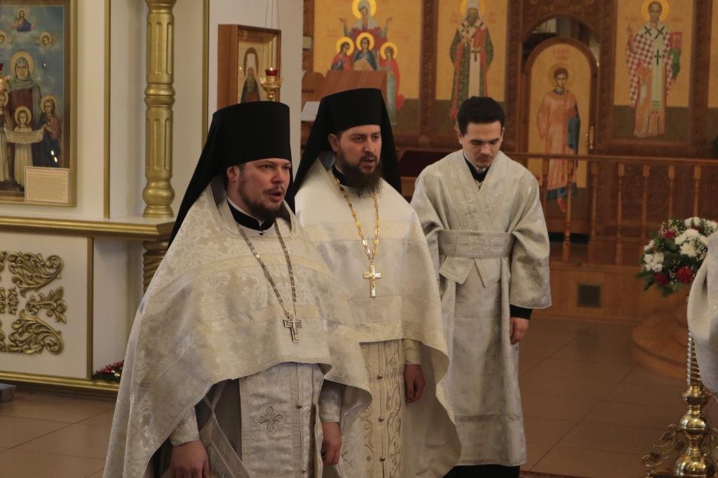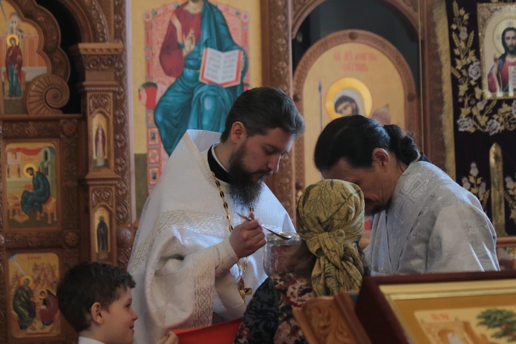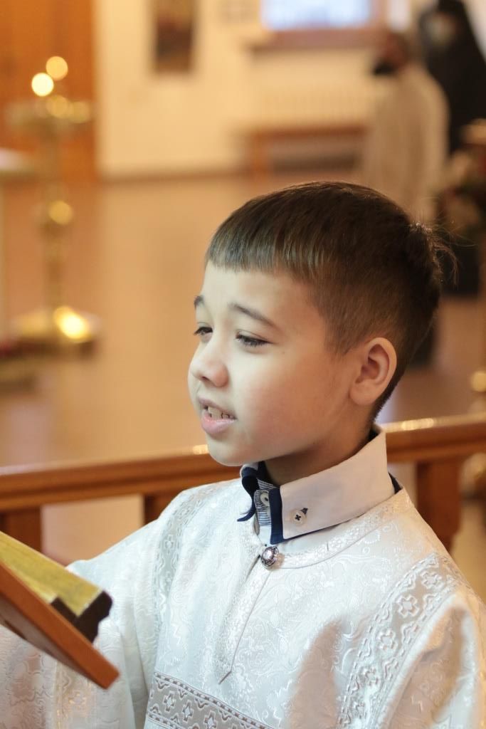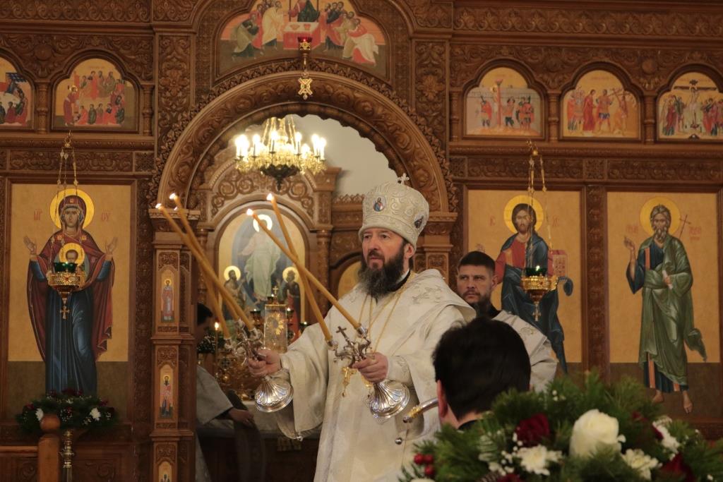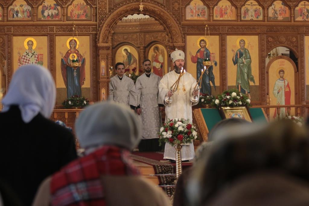 Перед причастием мирян священник Константин Дьяков огласил прихожанам Рождественское послание Преосвященнейшего епископа Усть-Каменогорского и Семипалатинского Амфилохия. После окончания Божественной Литургии Владыка епископ поздравил народ Божий с воскресным днем и обратился к христианам со словами наставления.