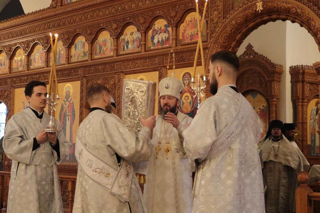 Управляющий Усть-Каменогорской и Семипалатинской епархией Преосвященнейший епископ Амфилохий возглавил служение Божественной Литургии святителя Иоанна Златоуста в Андреевском кафедральном соборе столицы Восточного Казахстана. В воскресный день Его Преосвященству сослужили: ключарь Андреевского собора иеромонах Никодим (Авдеев), клирики собора иеромонах Силуан (Магилев), иерей Константин Дьяков, иеромонах Мефодий (Шевчук), протодиакон Георгий Засыпкин и протодиакон Андрей Дудник.