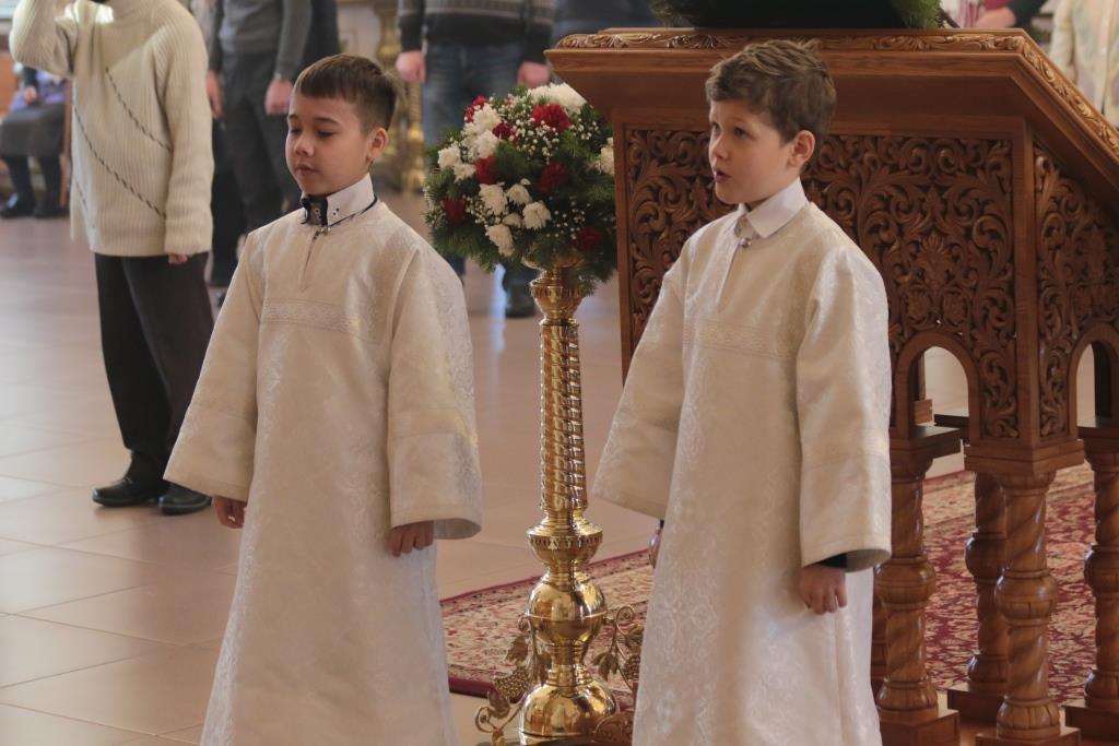 Песнопения Недели пред Богоявлением и Божественной Литургии исполнял хор кафедрального собора, регент Н. Романцова. В храме за Архипастырским богослужением молились прихожане главного храма епархии, сотрудники епархиального управления, воспитанники Центральной воскресной школы и насельники Свято-Троицкого мужского монастыря города Усть-Каменогорска.