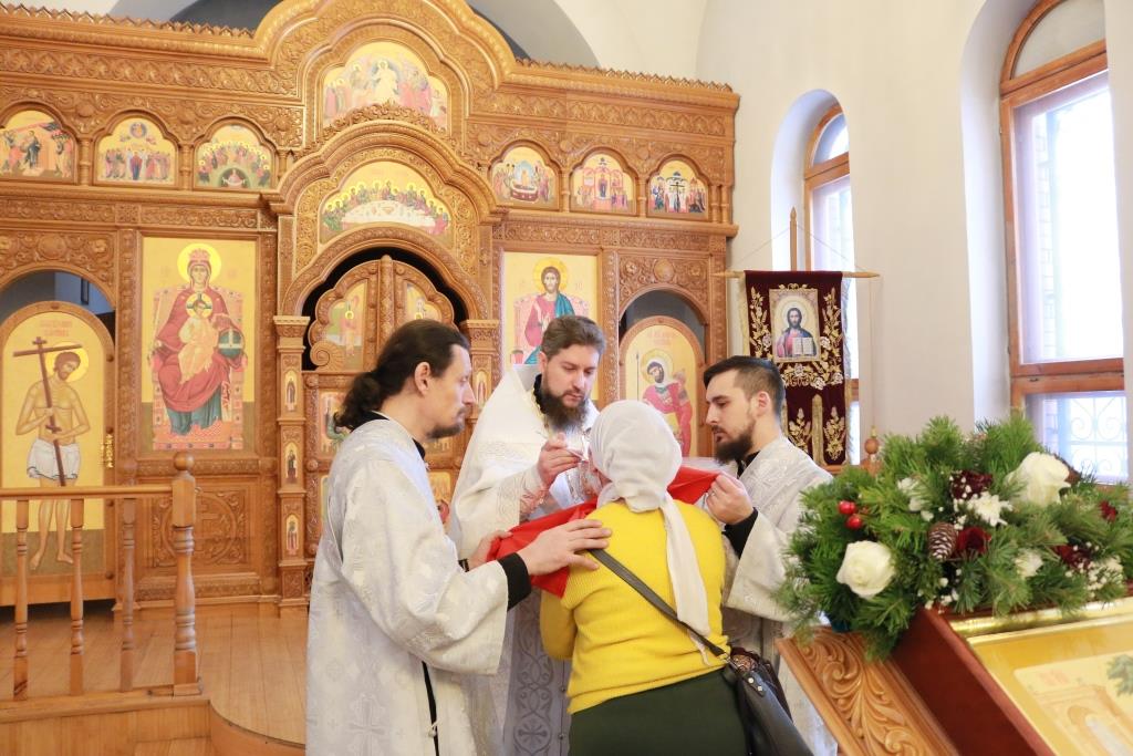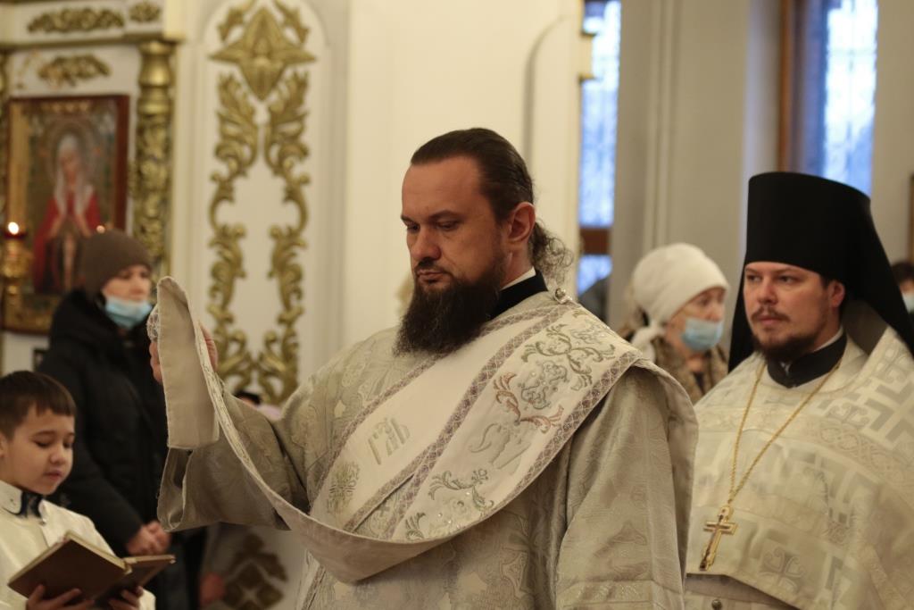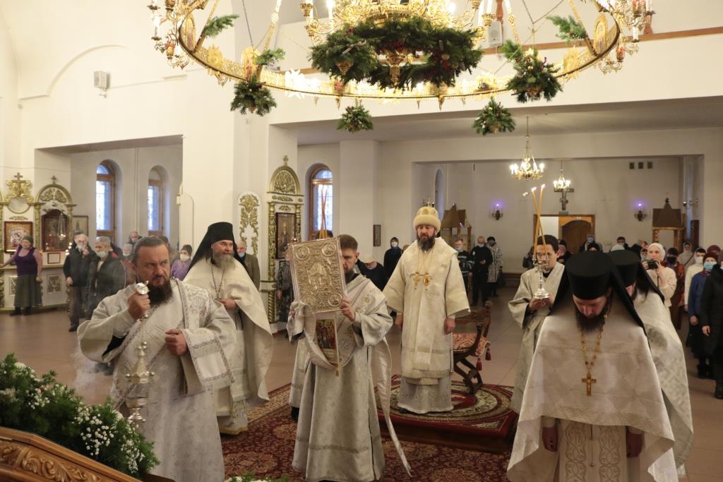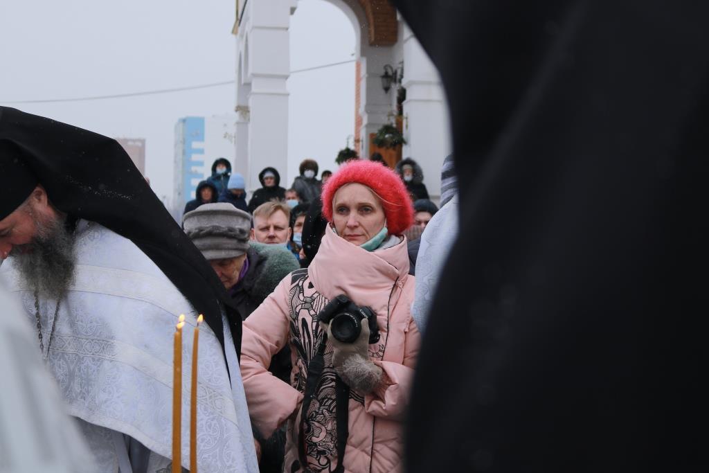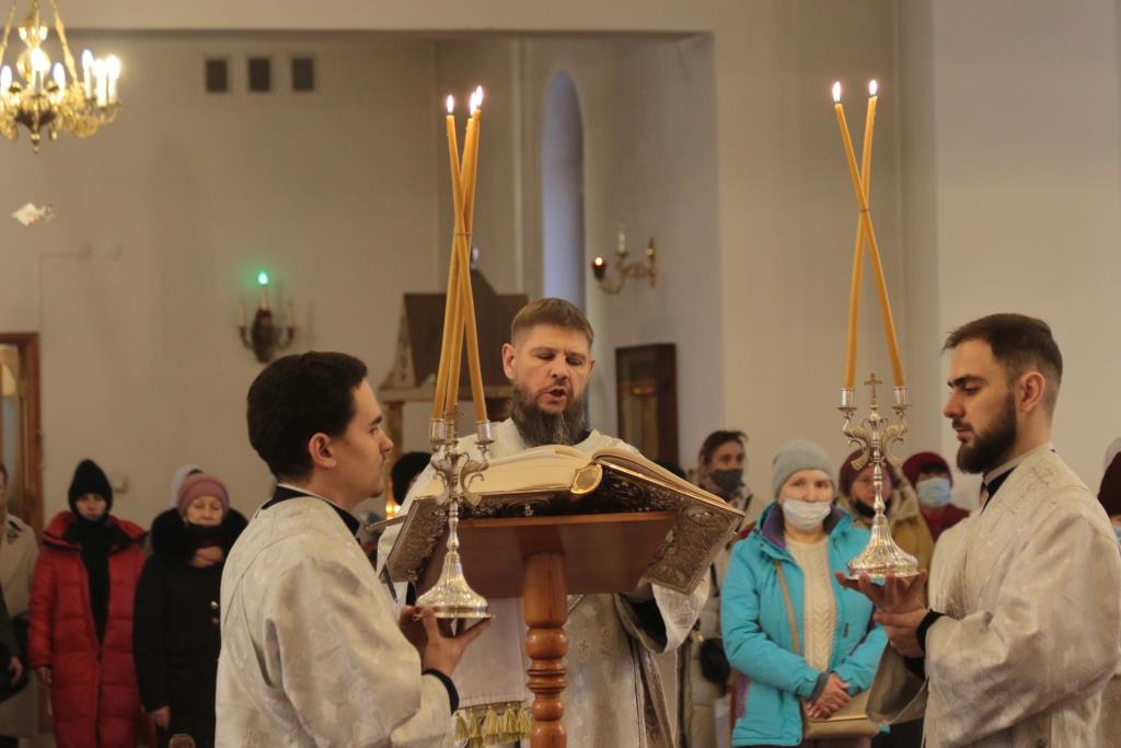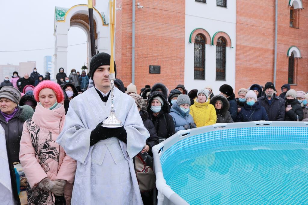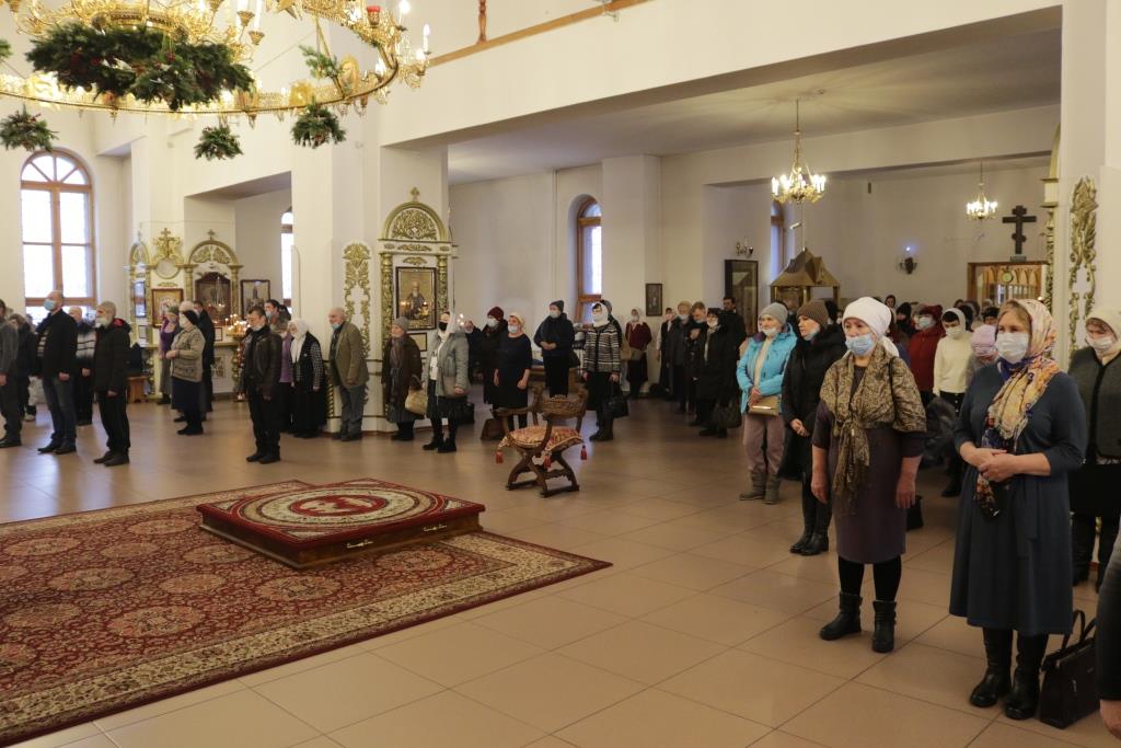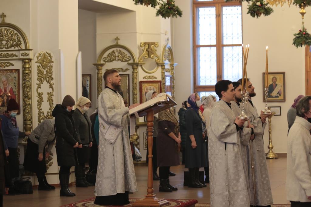 Песнопения Богоявления Господня и Божественной Литургии исполнял хор кафедрального собора, регент Н. Романцова. В храме молились сотрудники епархиального управления, прихожане кафедрального собора, преподаватели и воспитанники Центральной воскресной школы. Перед причащением мирян проповедовал иеромонах Силуан (Магилев).