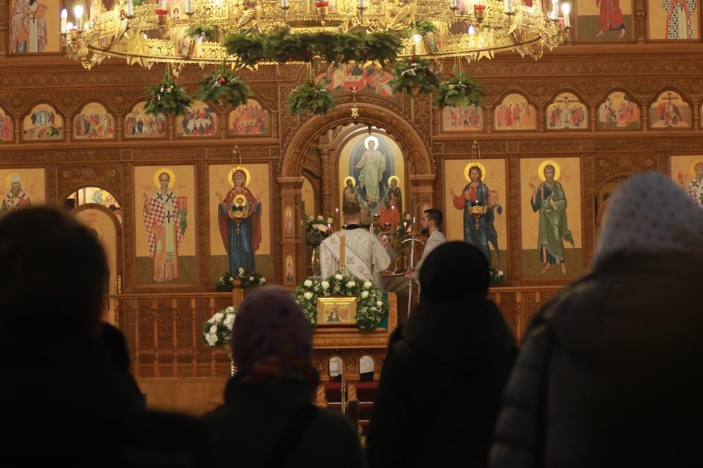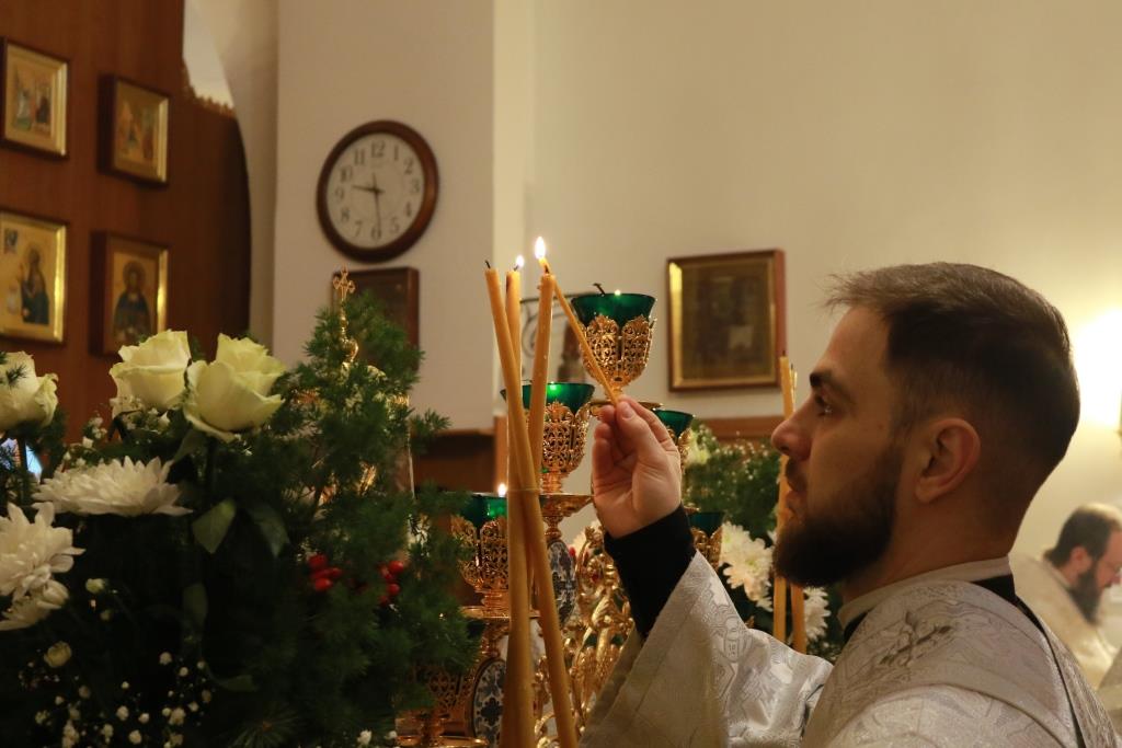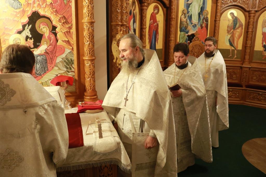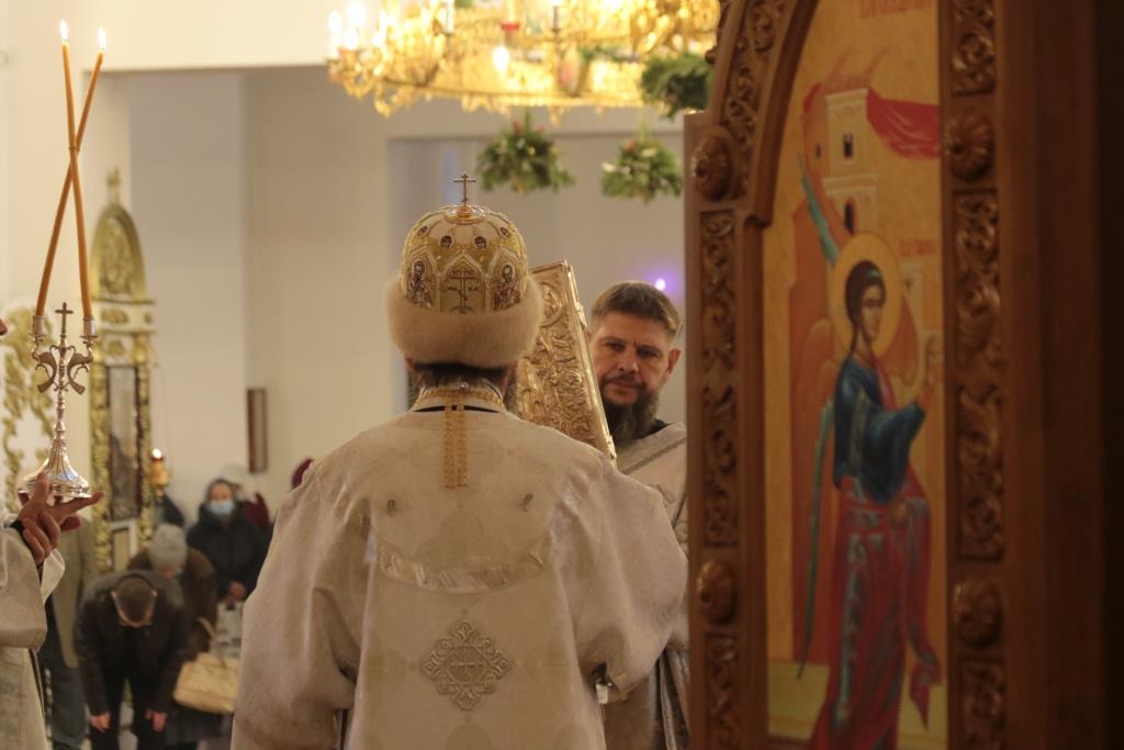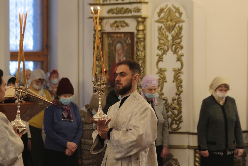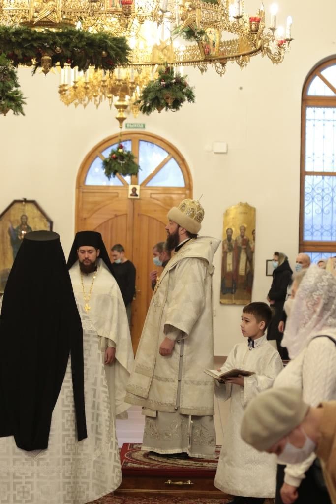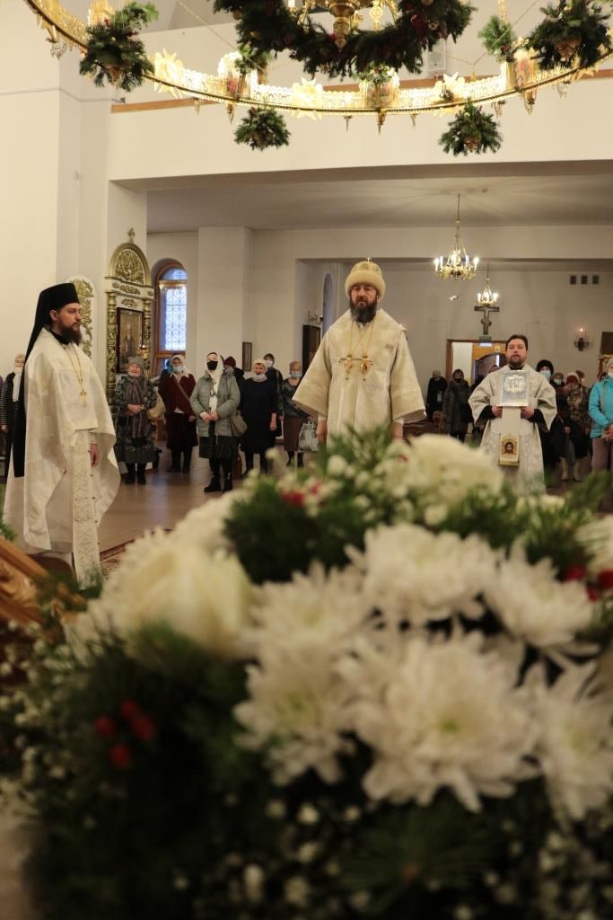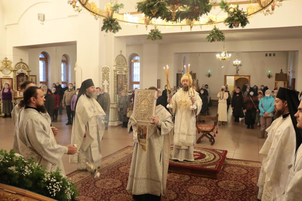 Песнопения Богоявления Господня и Божественной Литургии исполнял хор кафедрального собора, регент Н. Романцова. В храме молились сотрудники епархиального управления, прихожане кафедрального собора, преподаватели и воспитанники Центральной воскресной школы. Перед причащением мирян проповедовал иеромонах Силуан (Магилев).