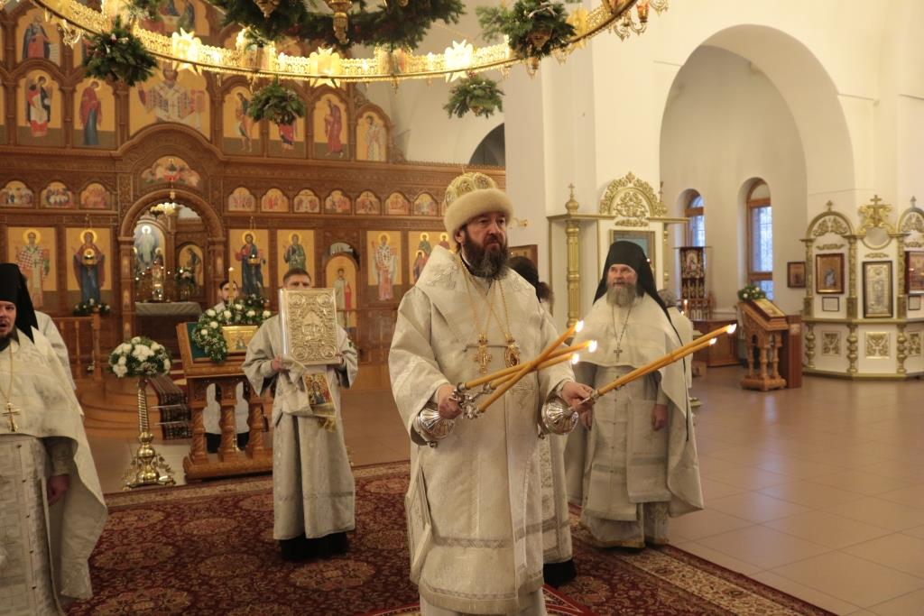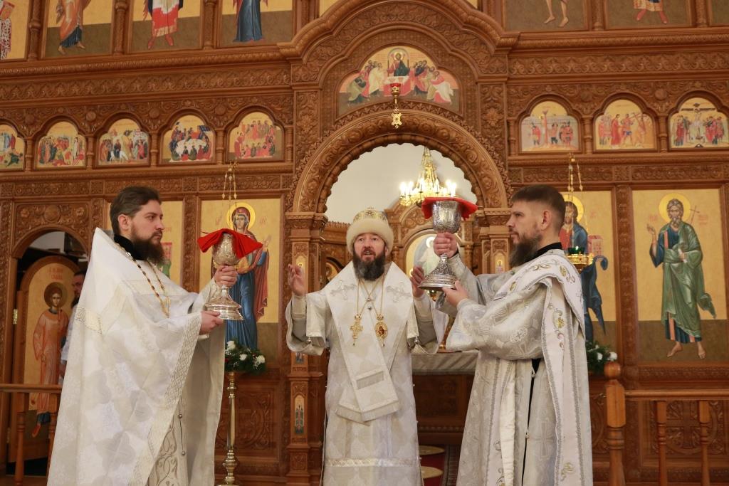 Епископ Усть-Каменогорский и Семипалатинский Амфилохий совершил Божественную Литургию святителя Иоанна Златоуста в главном храме Рудного Алтая – кафедральном соборе во имя святого апостола Андрея Первозванного города Усть-Каменогорска. Его Преосвященству сослужили: ключарь кафедрального собора иеромонах Никодим (Авдеев), клирики собора иеромонах Силуан (Магилев) и иеромонах Мефодий (Шевчук), протодиаконы Георгий Засыпкин и Андрей Дудник.