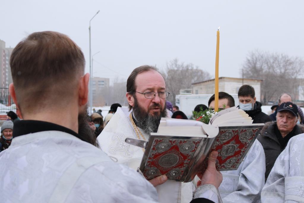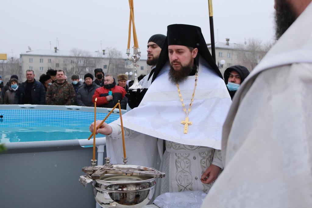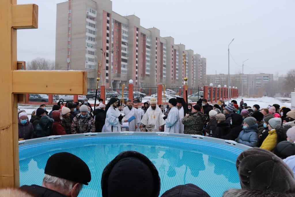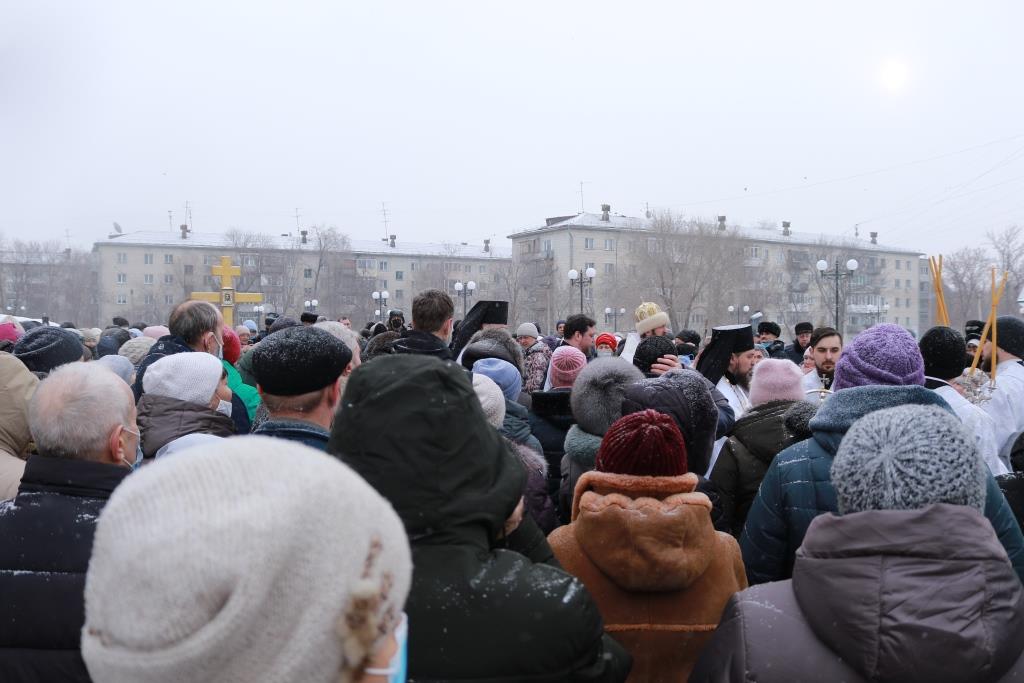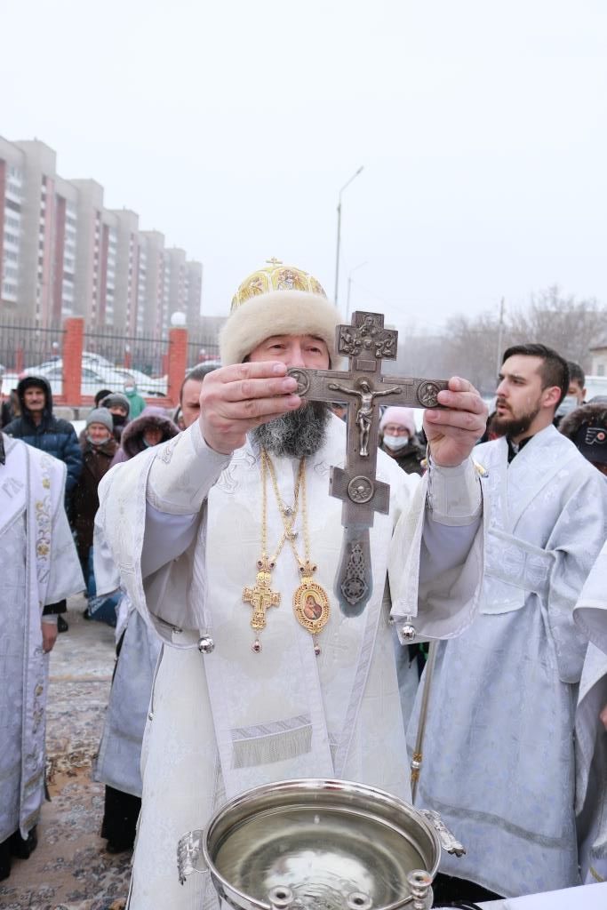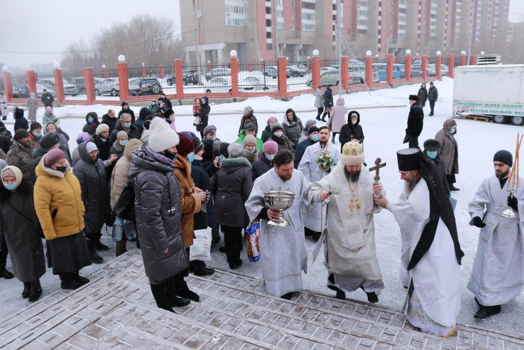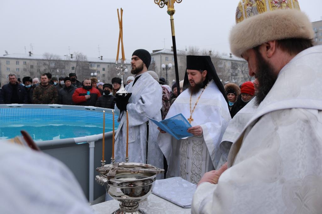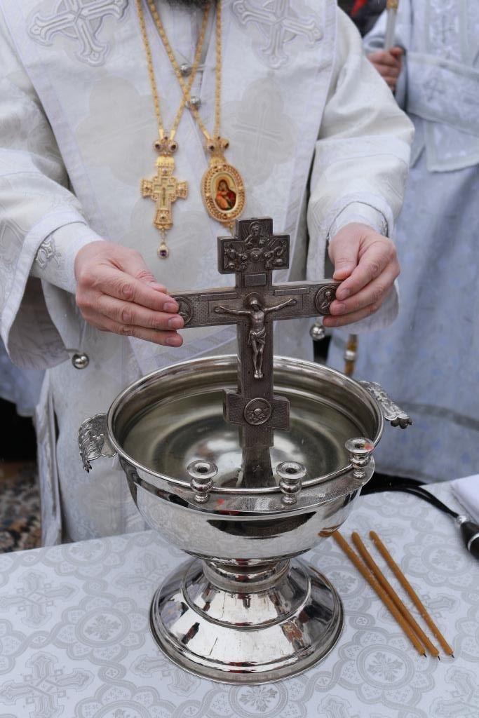 После заамвонной молитвы, при пении тропарей «Глас Господень на водах» епископ Амфилохий с клириками и молящимися крестным ходом вышли из храма на соборную площадь, где в специально устроенной купели было совершено великое освящение воды. В завершение праздничного богослужения Преосвященнейший Архипастырь поздравил народ Божий с великим торжеством Крещения Господня и обратился к христианам со словами наставления.