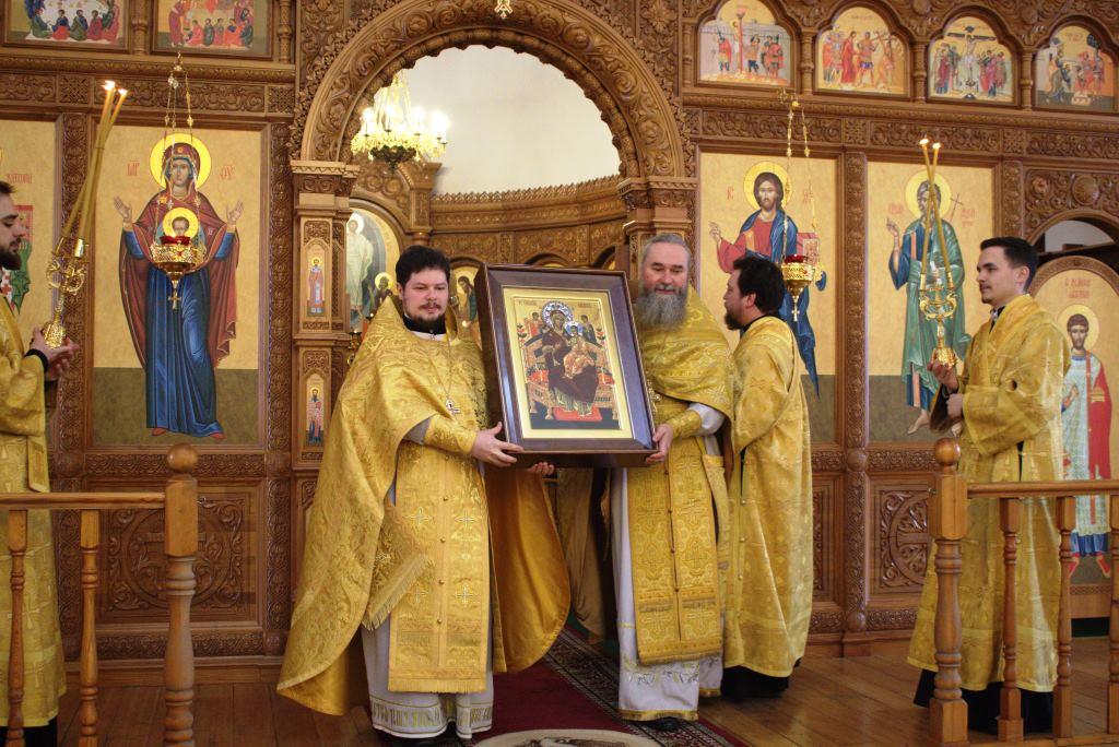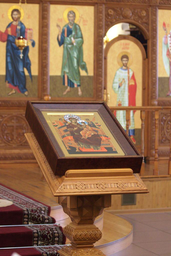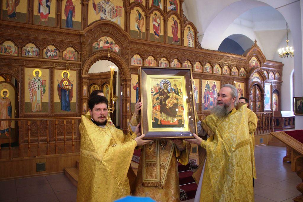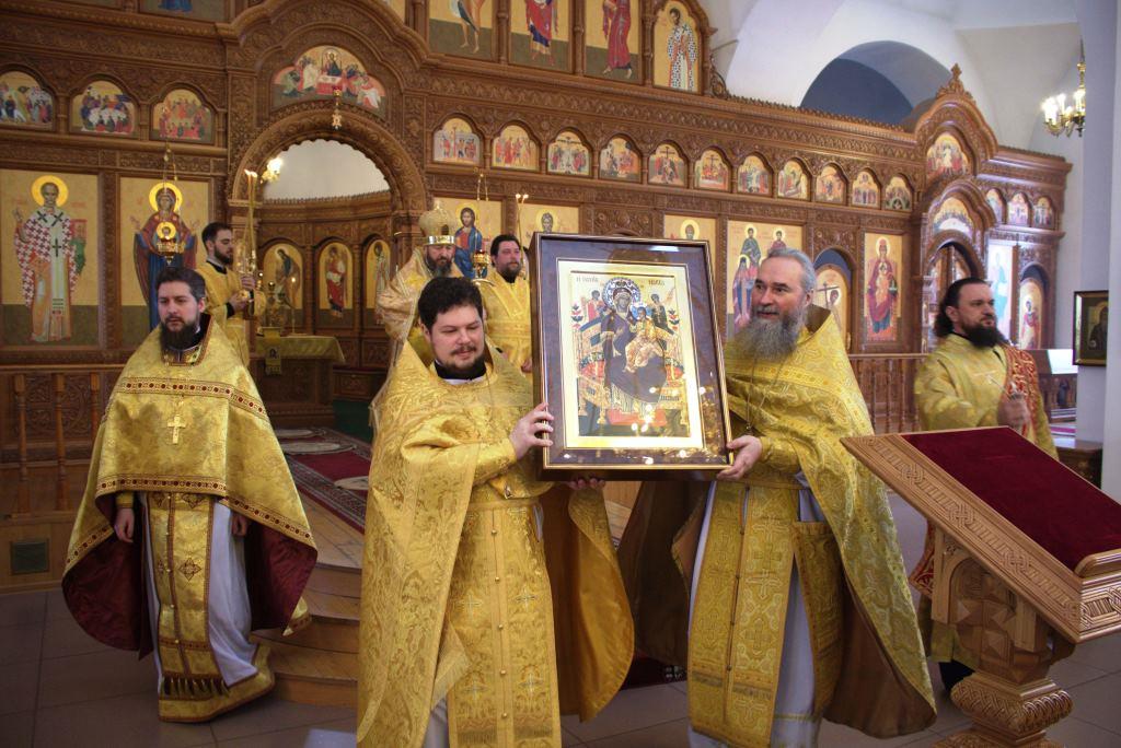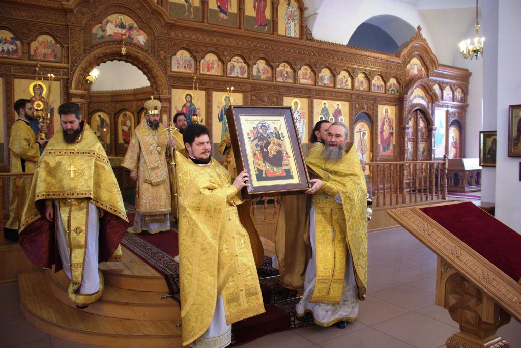 После выноса святыни из алтаря епископ Амфилохий в сослужении соборного духовенства совершил молебен перед чтимым образом. На молитве сугубо поминались православные христиане Рудного Алтая, благодетели и жертвователи православных храмов, и все «тяжкими недугами уязвленные». После величания Царице Небесной Архипастырь окропил духовенство и прихожан святой водой. Затем икона Божией Матери была помещена в специальный киот слева от царских врат главного придела, где и будет находиться для духовного укрепления и утешения православных христиан.
