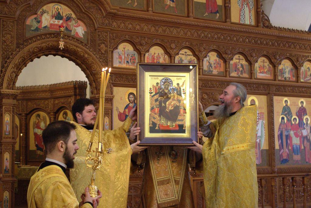 По благословению Преосвященнейшего епископа Амфилохия еженедельно по воскресным вечерам, начиная с вечера 13 февраля, перед святыней будет совершаться молебное пение с акафистом.