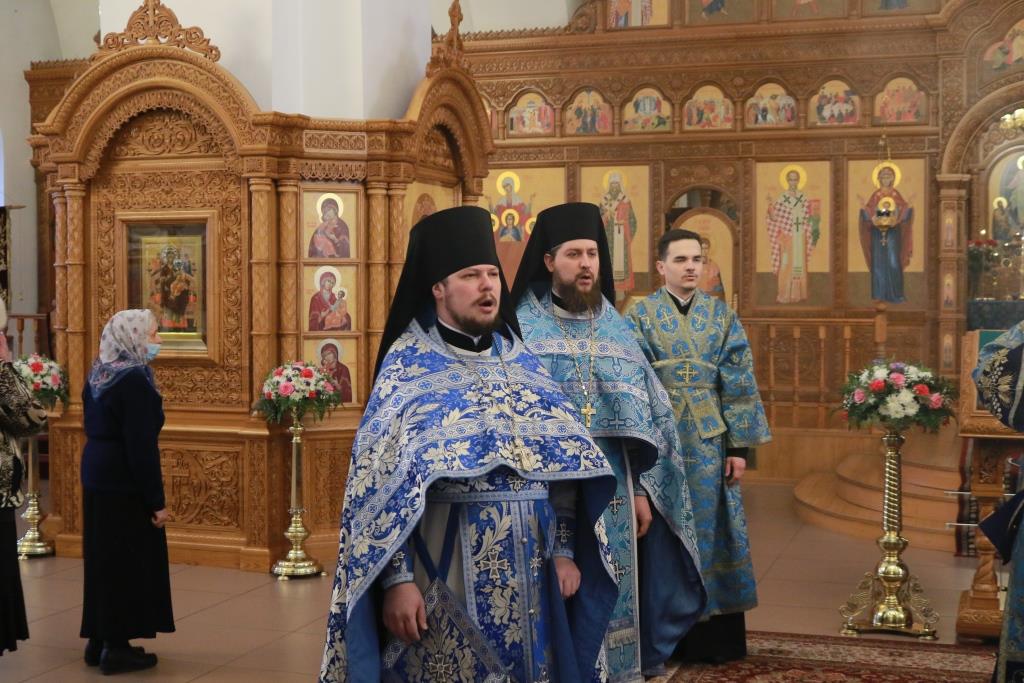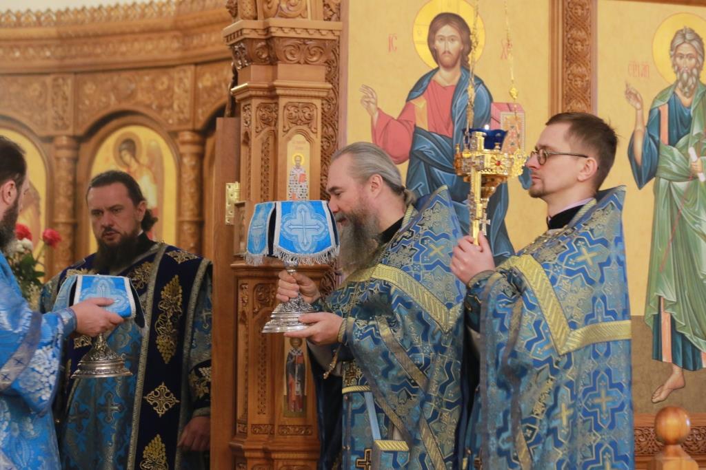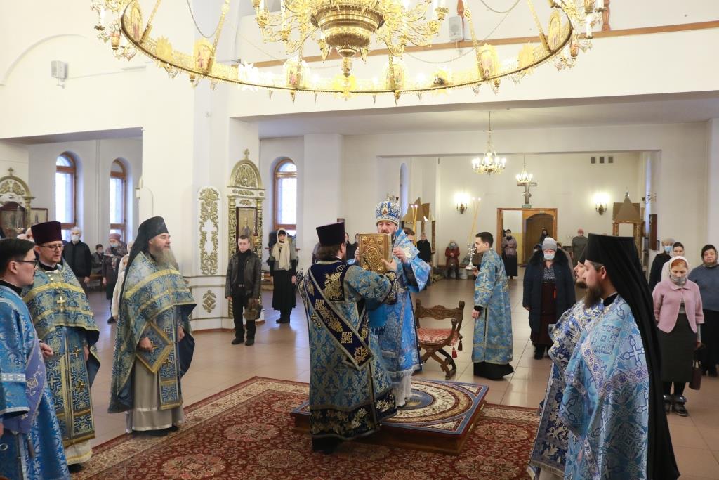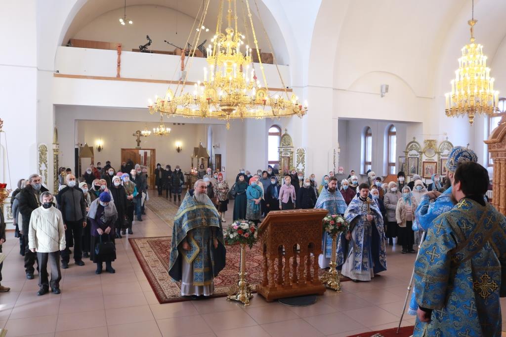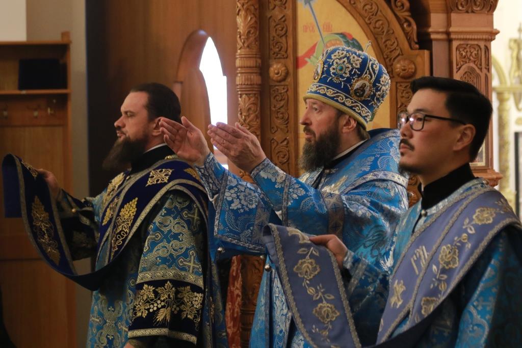 Богослужебные песнопения исполнял хор Андреевского собора, регент – Н. Романцова. В храме молились насельники Свято-Троицкого мужского монастыря города Усть-Каменогорска, сотрудники епархиального управления и прихожане кафедрального собора. Перед причастием мирян проповедовал иеромонах Силуан (Магилев). После заамвонной молитвы было совершено славление Господу Иисусу Христу перед праздничной иконой.