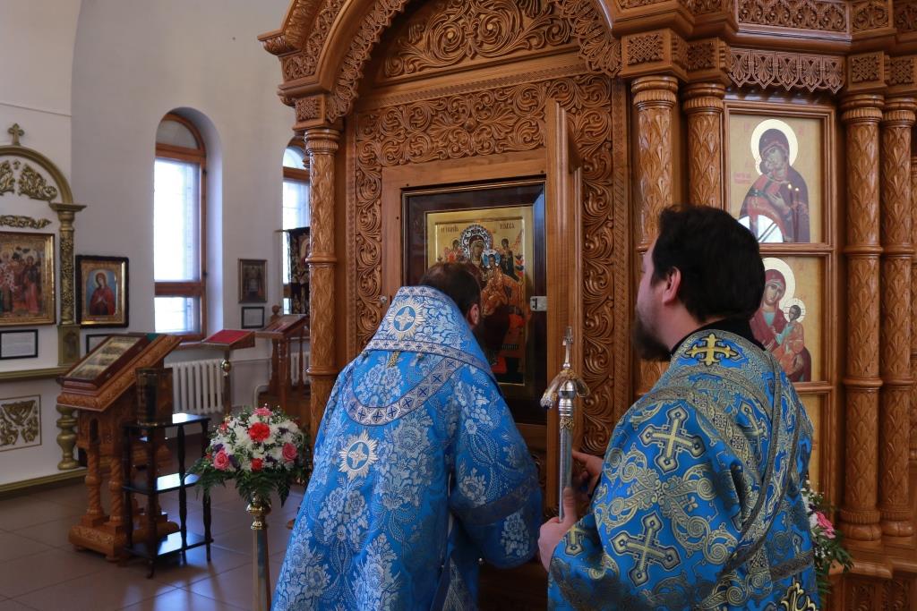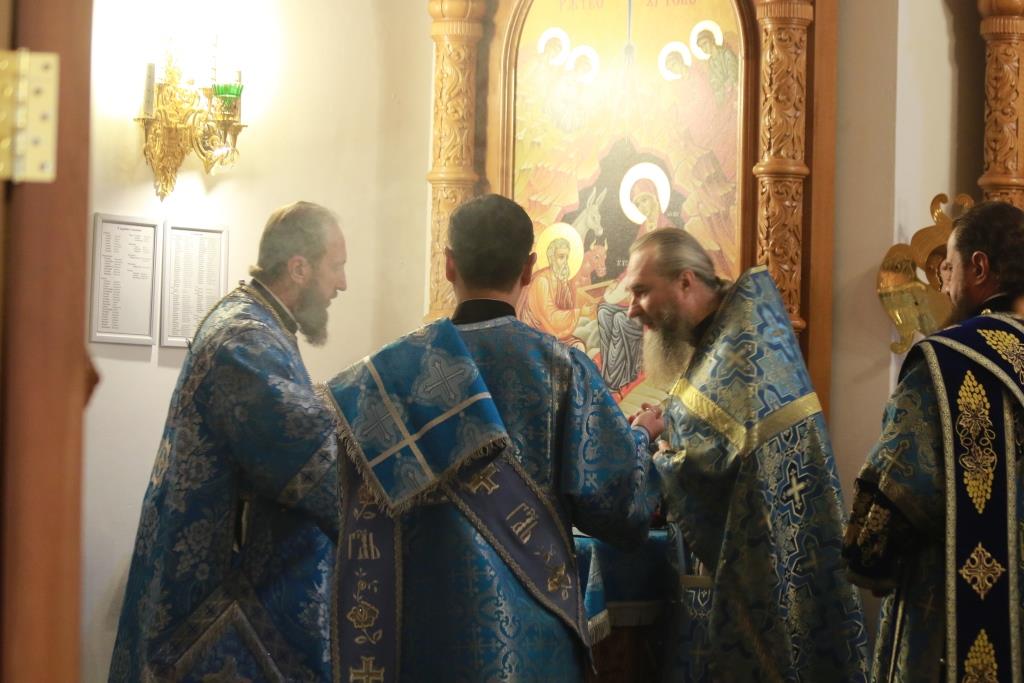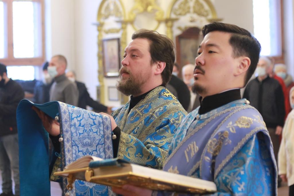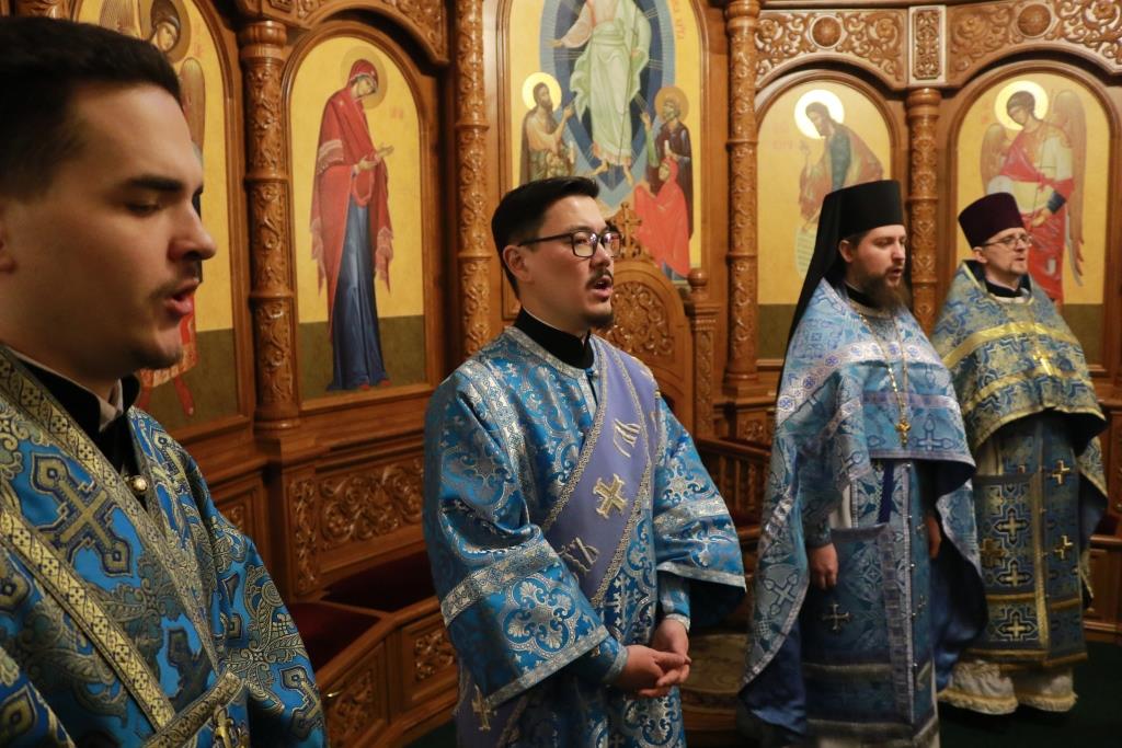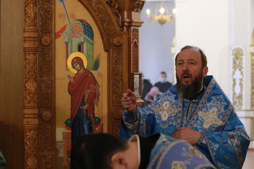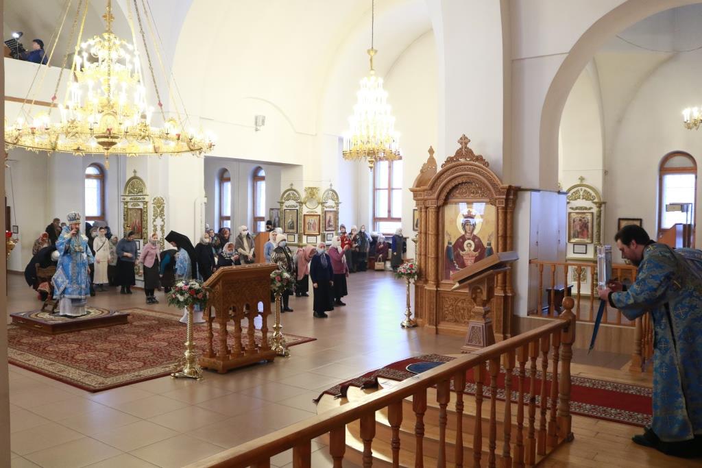 Богослужебные песнопения исполнял хор Андреевского собора, регент – Н. Романцова. В храме молились насельники Свято-Троицкого мужского монастыря города Усть-Каменогорска, сотрудники епархиального управления и прихожане кафедрального собора. Перед причастием мирян проповедовал иеромонах Силуан (Магилев). После заамвонной молитвы было совершено славление Господу Иисусу Христу перед праздничной иконой.