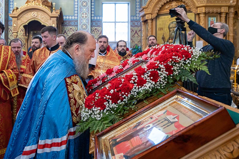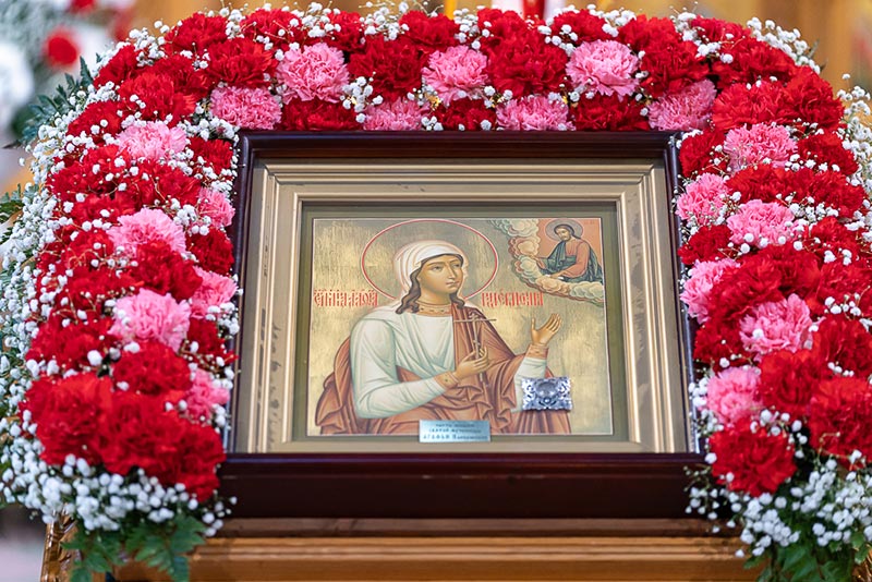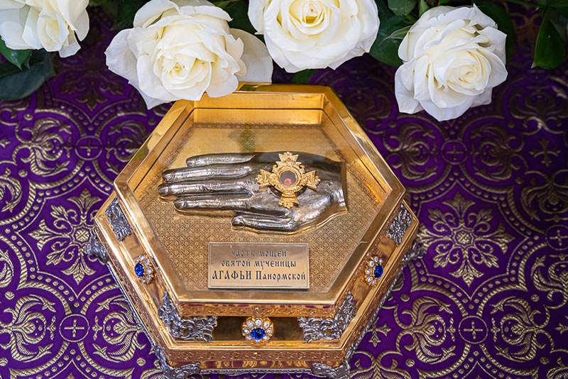 В завершение Литургии состоялось славление празднику Сретения Господня и мученице Агафии Панормской перед образом святой и ковчегом с частицей ее честных мощей. Была произнесена молитва святой Агафии с ходатайством «избавити град Алма-Ату, и вся грады и страны христианския от земли трясений и огненных запалений, защитити вся люди от бед и напастей, даровати грехов избавление и веры Православныя утверждение».