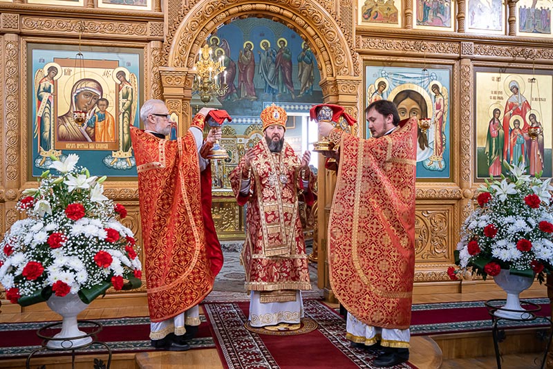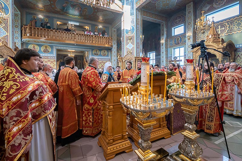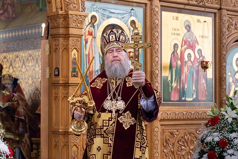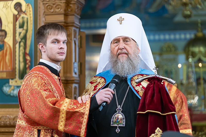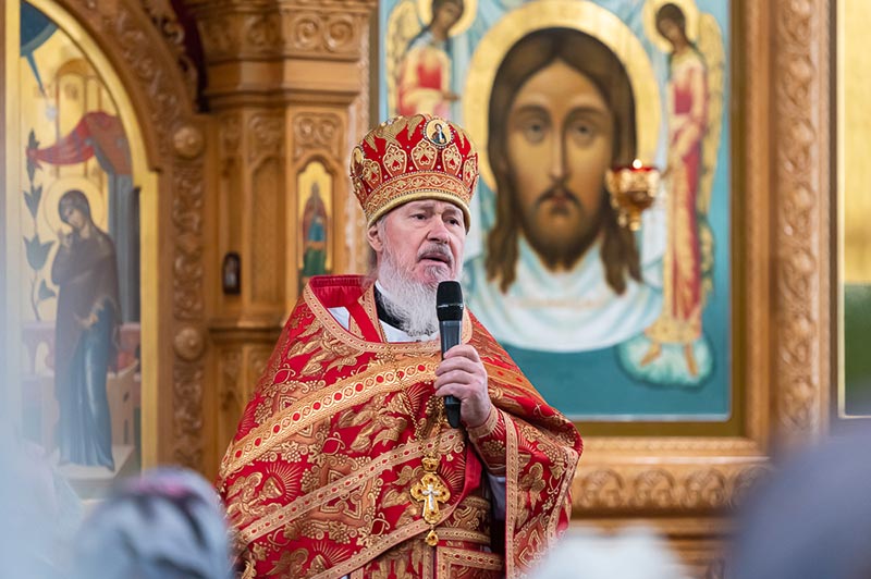 По окончании богослужения митрополит Александр сердечно поблагодарил иерархов, священнослужителей, монашествующих и всех участников торжества за общую молитву, поздравил собравшихся с празднованием в честь мученицы Агафии Панормской и обратился с проповедью.
