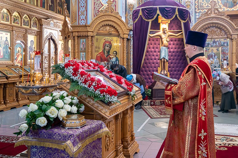 На протяжении всего дня в Софийском соборе совершалось молитвенное поклонение перед ковчегом с мощами угодницы Божией.