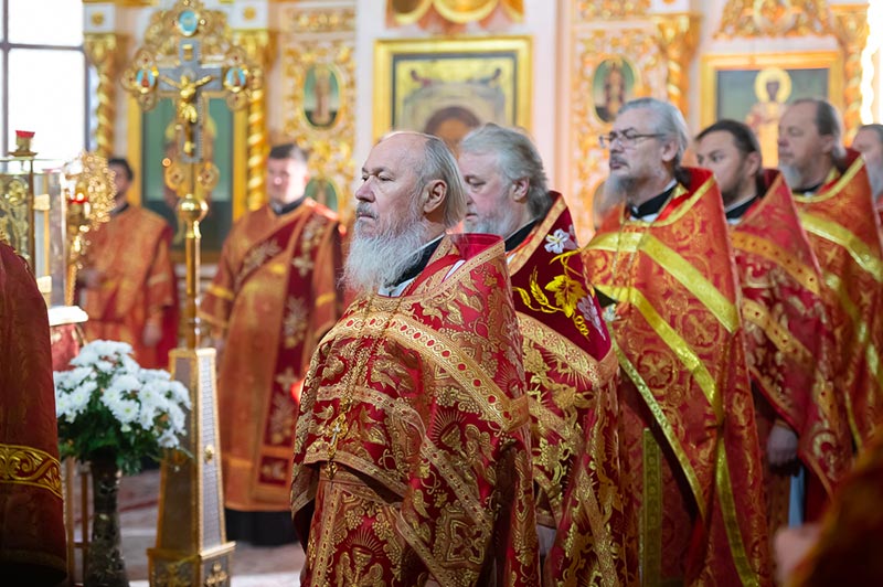 Предстоятелю Митрополичьего округа сослужили: управляющий делами Православной Церкви Казахстана епископ Каскеленский Геннадий, епископ Павлодарский и Экибастузский Варнава, епископ Карагандинский и Шахтинский Севастиан, епископ Усть-Каменогорский и Семипалатинский Амфилохий, епископ Кокшетауский и Акмолинский Серапион, епископ Петропавловский и Булаевский Владимир; благочинный храмов Алма-Аты, настоятель Никольского собора протоиерей Валерий Захаров, настоятель алма-атинского храма в честь иконы Божией Матери «Всех скорбящих Радость» митрофорный протоиерей Евгений Воробьев, ректор Томской духовной семинарии архимандрит Иосиф (Еременко); благочинный Узун-Агашского церковного округа, настоятель Казанского храма села Узун-Агаш протоиерей Геннадий Кадников; наместник Главы Казахстанского Митрополичьего округа в Чимкентской епархии иеромонах Хрисанф (Коноплев), благочинный Талдыкорганского церковного округа иеромонах Клавдиан (Поляков), председатель Комиссии по делам молодежи Казахстанского Митрополичьего округа, благочинный Иссыкского церковного округа игумен Игнатий (Сидоренко); настоятель Спасо-Силуановой Иссыкской пустыни игумен Назарий (Марков), ключарь Вознесенского кафедрального собора, руководитель отдела по связям с общественностью Митрополичьего округа протоиерей Александр Суворов; член Патриаршей комиссии по вопросам физической культуры и спорта, игумен Филипп (Моисеев); настоятели и духовенство храмов Алма-Атинской епархии, священнослужители, прибывшие с гостями-архипастырями.