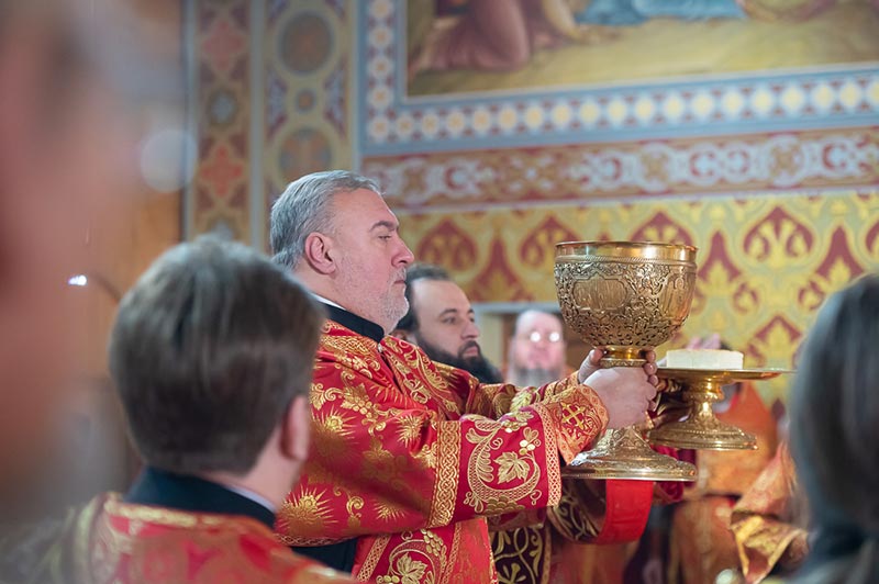 Проповедь после запричастного стиха произнес протоиерей Валерий Захаров.