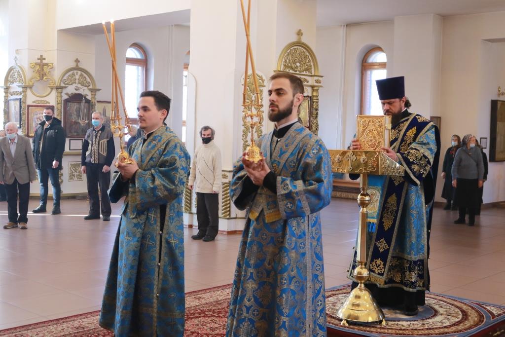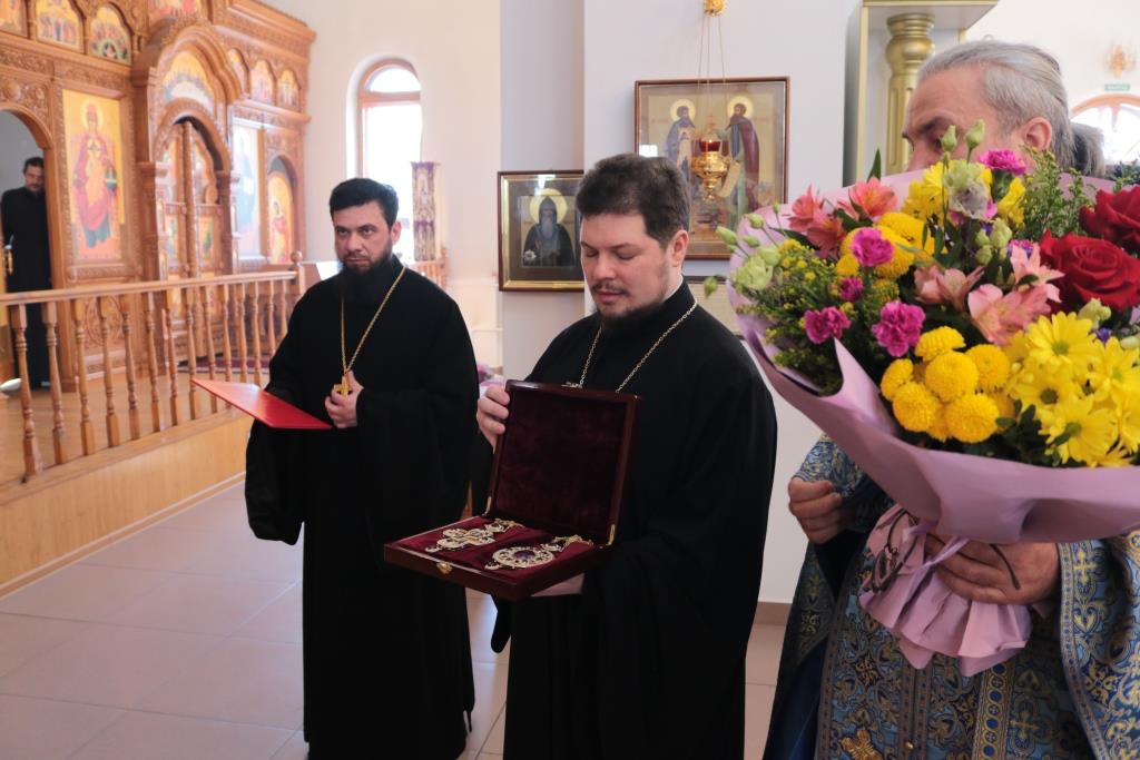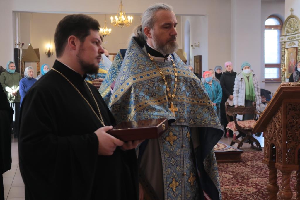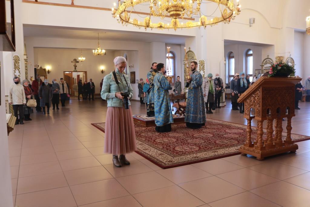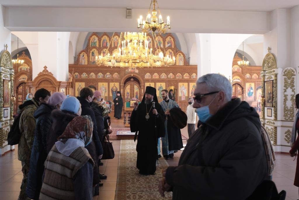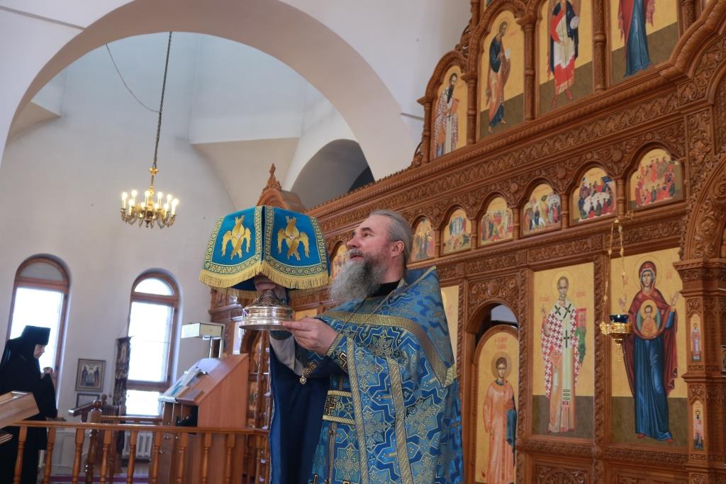 За богослужением молились: настоятельница Знаменско-Абалацкого женского монастыря города Семипалатинска игумения Марионилла (Помельникова), насельники Свято-Троицкого мужского монастыря города Усть-Каменогорска, сотрудники епархиального управления, прихожане Андреевского собора и паломники с городских приходов. Перед причастием мирян проповедовал священник Вячеслав Гутов. Во внимание к усердным трудам на благо Церкви Божией и в связи с 50-летием со дня рождения епископ Амфилохий удостоил клирика Знаменско-Абалацкого женского монастыря иеромонаха Агапита (Никонова) ордена Православной Церкви Казахстана «За усердное служение".