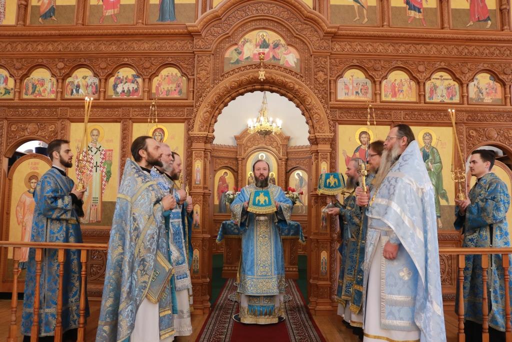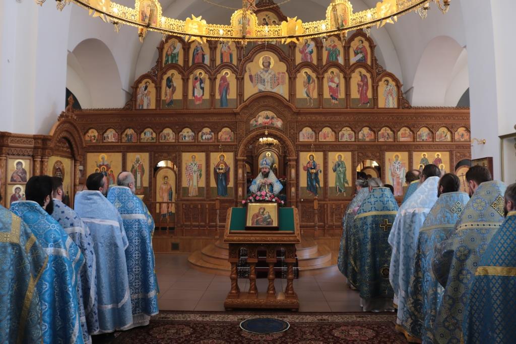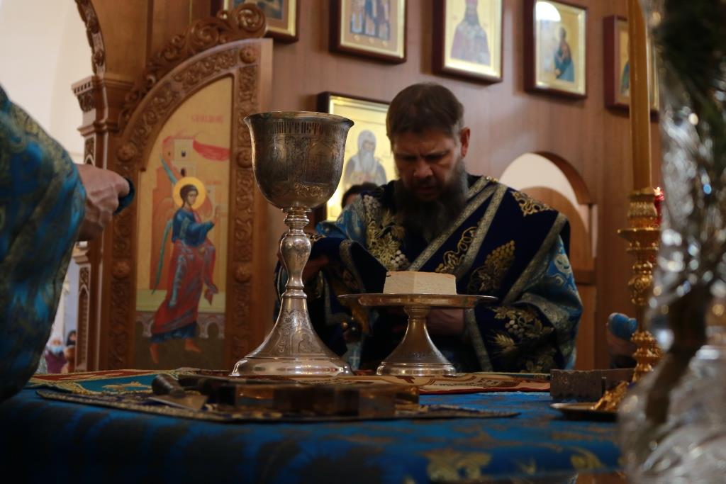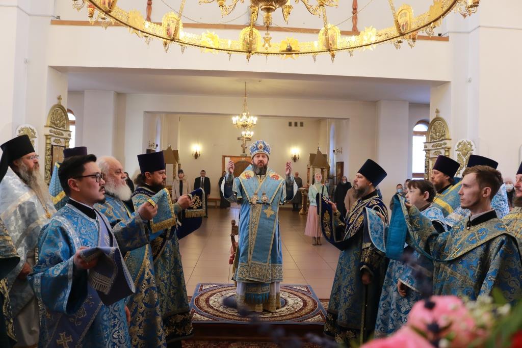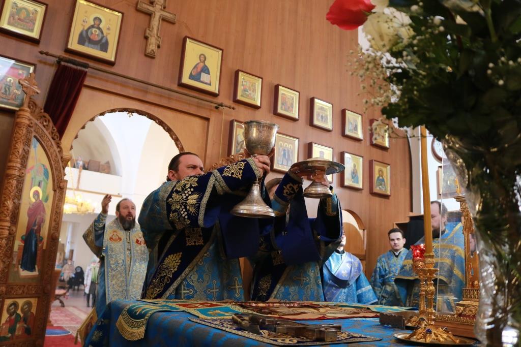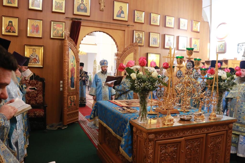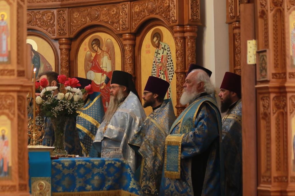 Божественную литургию святителя Иоанна Златоуста возглавил епископ Амфилохий. Архипастырю сослужили: духовник епархии протоиерей Игорь Копылов, благочинный Усть-Каменогорского церковного округа иерей Алексий Анищенко, благочинный Семипалатинского церковного округа иерей Вячеслав Гутов, ключарь кафедрального собора иеромонах Никодим (Авдеев), настоятели и клирики приходов Усть-Каменогорской и Семипалатинской епархии. Диаконский чин возглавил протодиакон Андрей Дудник. Песнопения духовных торжеств исполнял хор кафедрального собора под управлением регента Н. Романцовой. За богослужением возносилась молитва о мире на Украине.
