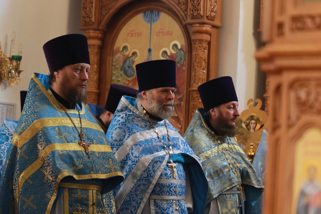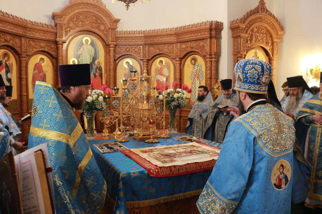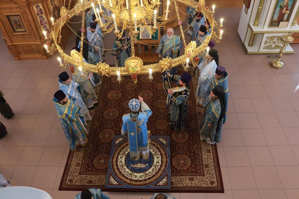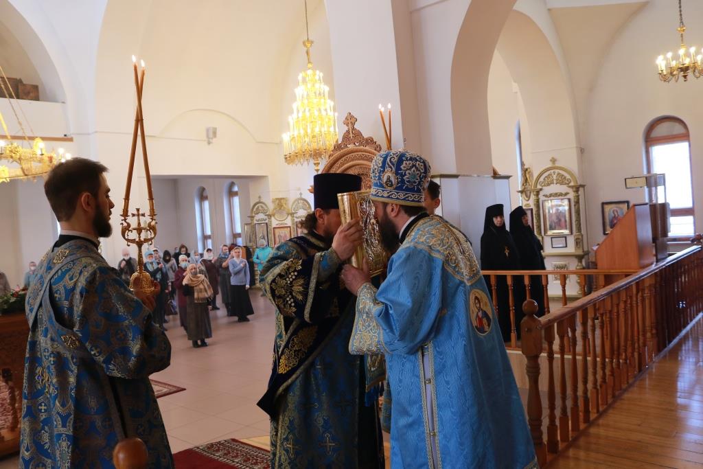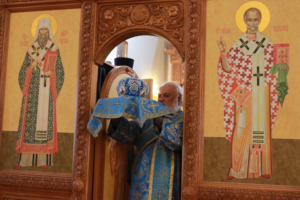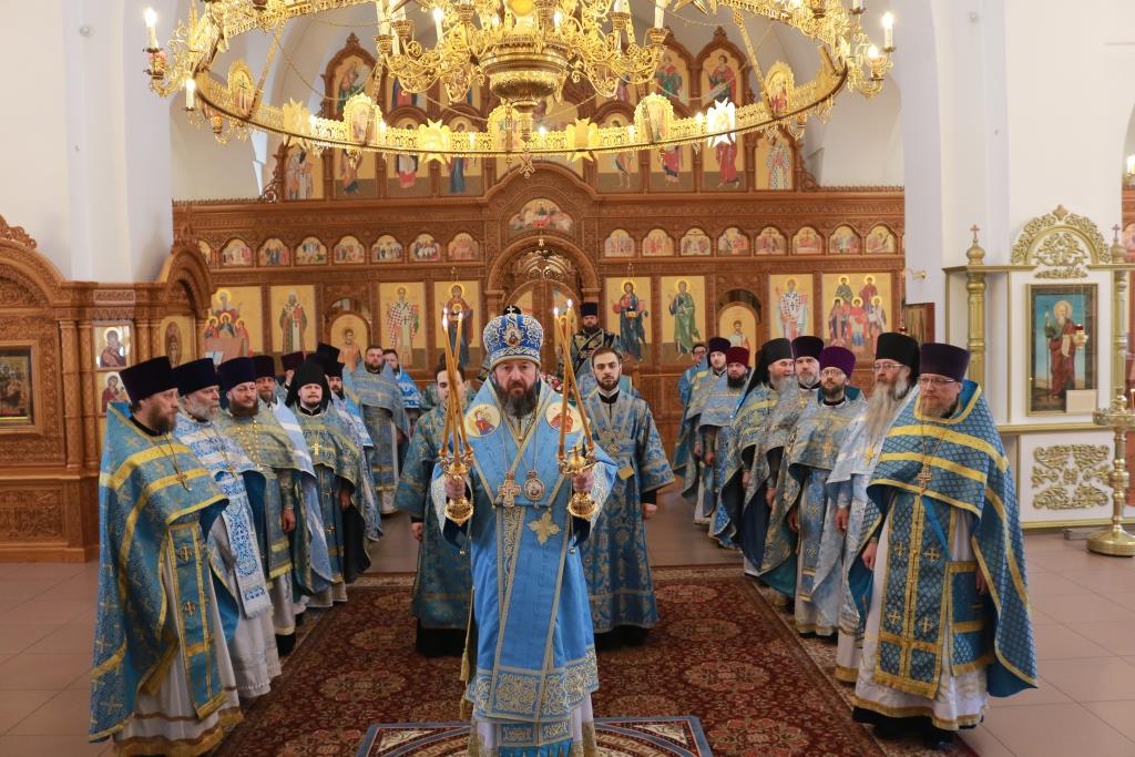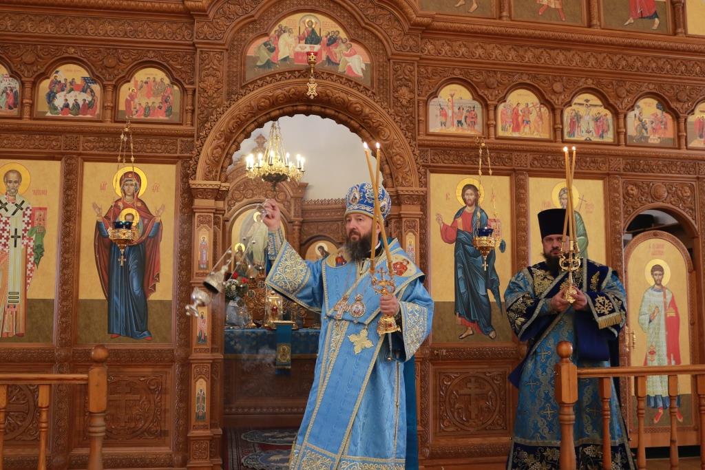 Божественную литургию святителя Иоанна Златоуста возглавил епископ Амфилохий. Архипастырю сослужили: духовник епархии протоиерей Игорь Копылов, благочинный Усть-Каменогорского церковного округа иерей Алексий Анищенко, благочинный Семипалатинского церковного округа иерей Вячеслав Гутов, ключарь кафедрального собора иеромонах Никодим (Авдеев), настоятели и клирики приходов Усть-Каменогорской и Семипалатинской епархии. Диаконский чин возглавил протодиакон Андрей Дудник. Песнопения духовных торжеств исполнял хор кафедрального собора под управлением регента Н. Романцовой. За богослужением возносилась молитва о мире на Украине.