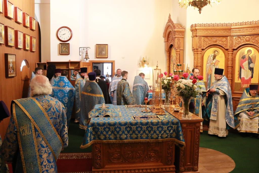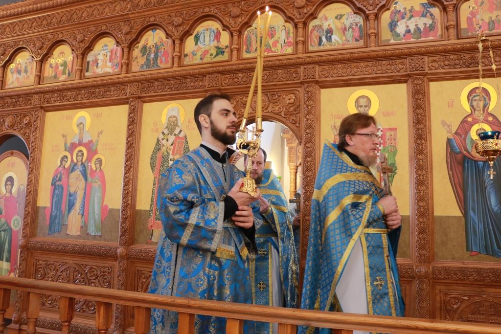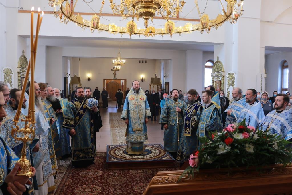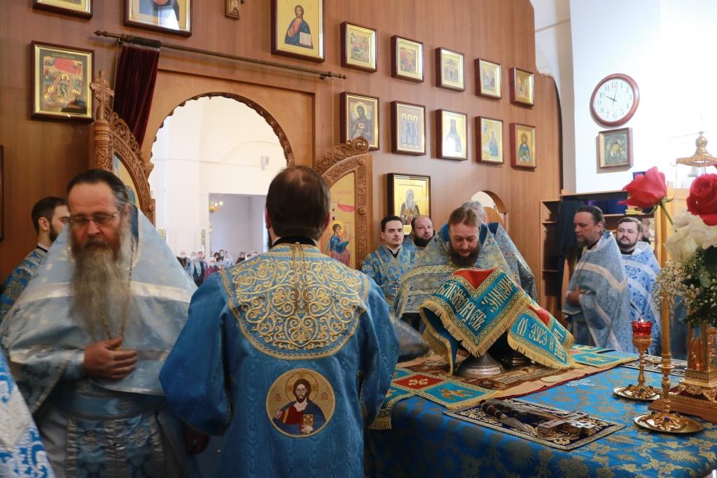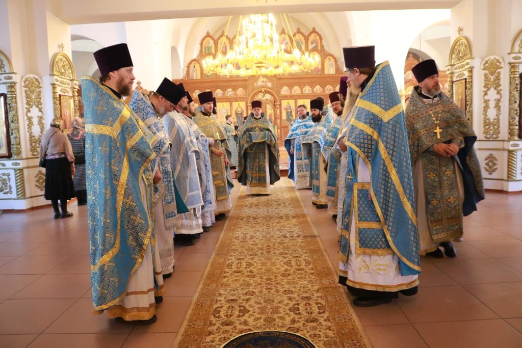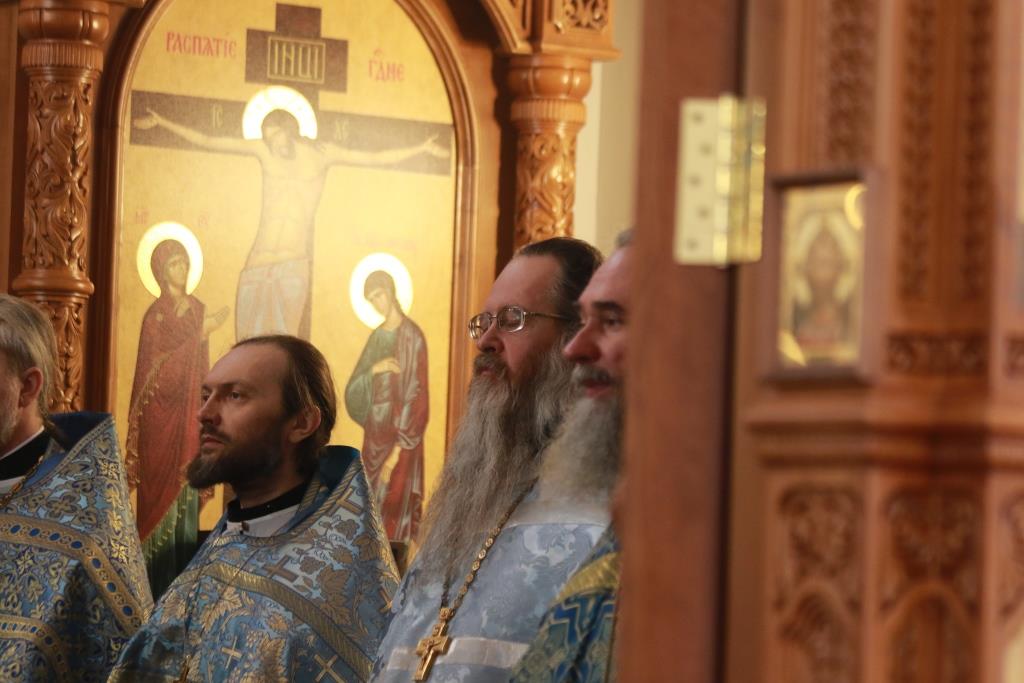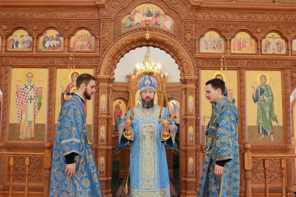 Божественную литургию святителя Иоанна Златоуста возглавил епископ Амфилохий. Архипастырю сослужили: духовник епархии протоиерей Игорь Копылов, благочинный Усть-Каменогорского церковного округа иерей Алексий Анищенко, благочинный Семипалатинского церковного округа иерей Вячеслав Гутов, ключарь кафедрального собора иеромонах Никодим (Авдеев), настоятели и клирики приходов Усть-Каменогорской и Семипалатинской епархии. Диаконский чин возглавил протодиакон Андрей Дудник. Песнопения духовных торжеств исполнял хор кафедрального собора под управлением регента Н. Романцовой. За богослужением возносилась молитва о мире на Украине.