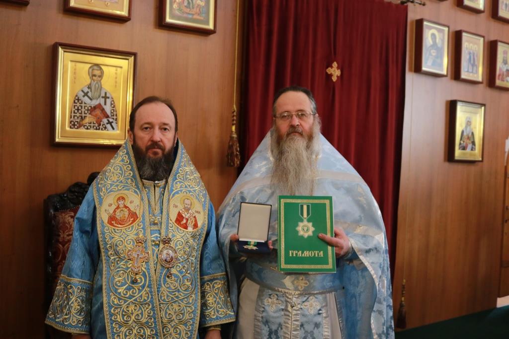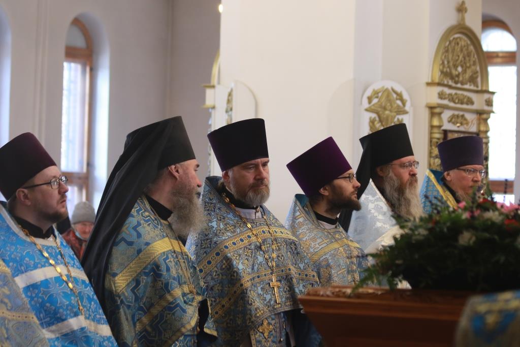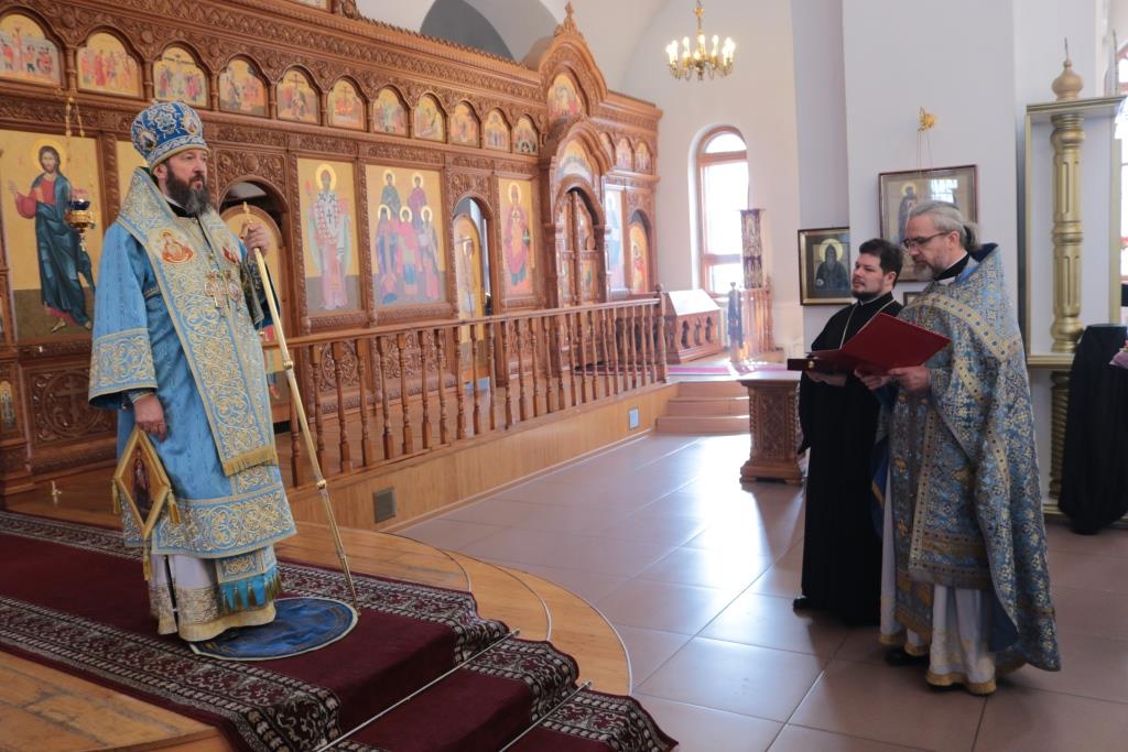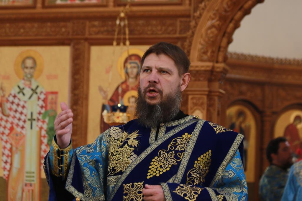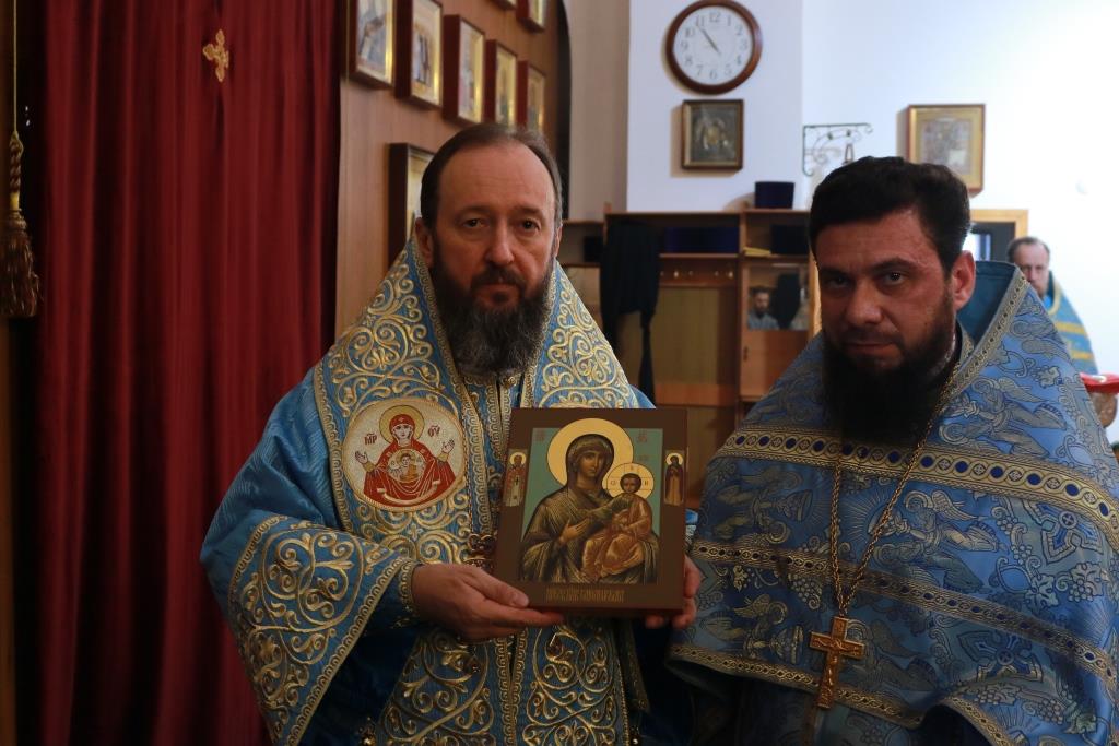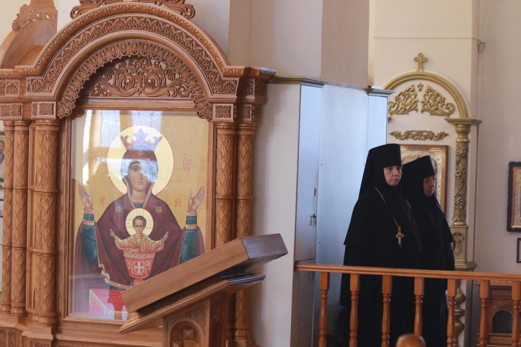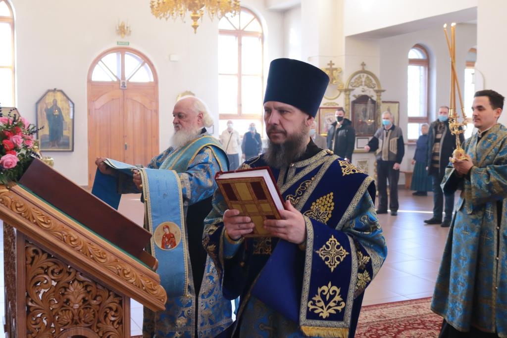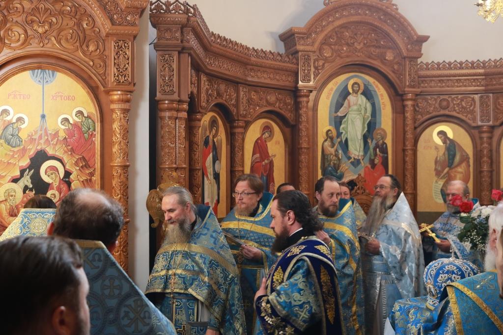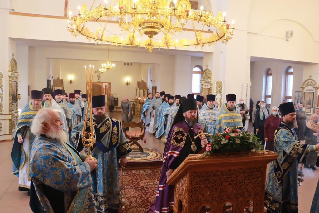 После заамвонной молитвы епископ Амфилохий с духовенством совершил славление пред Иверским образом Царицы Небесной, после чего благочинный Усть-Каменогорского церковного округа иерей Алексий Анищенко от лица духовенства и паствы огласил поздравительное слово епископу Амфилохию. Затем Владыка епископ обратился к собравшимся со словами поучения.
