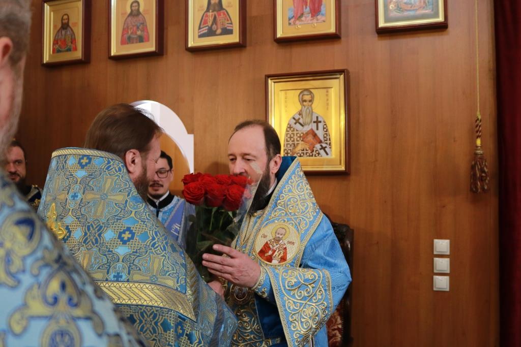 После проповеди Владыка епископ принимал поздравления от духовенства и прихожан. Праздничное богослужение завершилось братской трапезой.