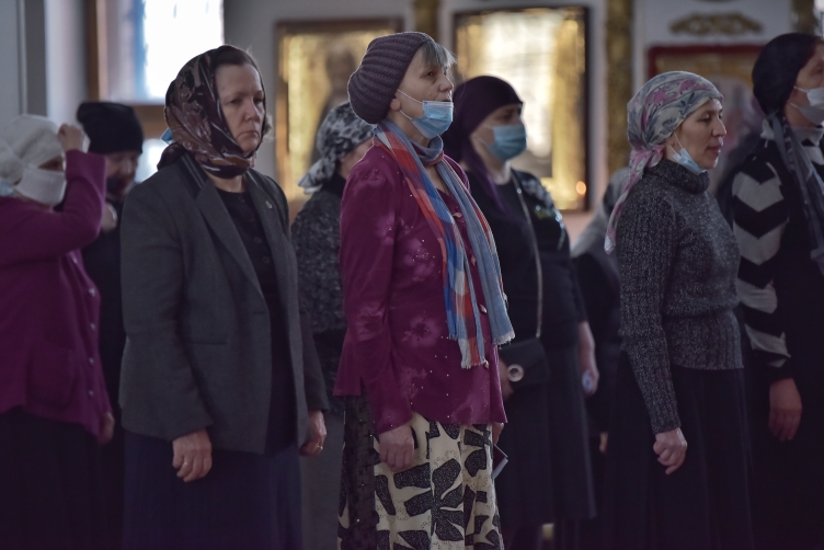 За богослужением молились клирики главного храма Восточного Казахстана, прихожане собора и сотрудники епархиального управления. Песнопения повечерия исполнял хор Андреевского кафедрального собора под управлением регента Н. Романцовой.