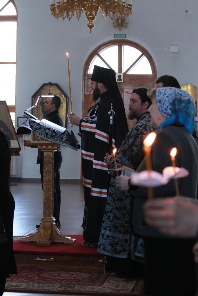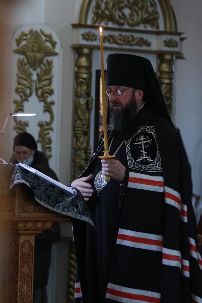 В среду первой седмицы Святой Четыредесятницы Преосвященнейший епископ Усть-Каменогорский и Семипалатинский Амфилохий возглавил служение Великого повечерия с чтением третьей части Великого покаянного канона преподобного Андрея Критского. Накануне днём были совершены уставные великопостные богослужения – утреня, часы и вечерня в соединении с Литургией Преждеосвященных Даров.