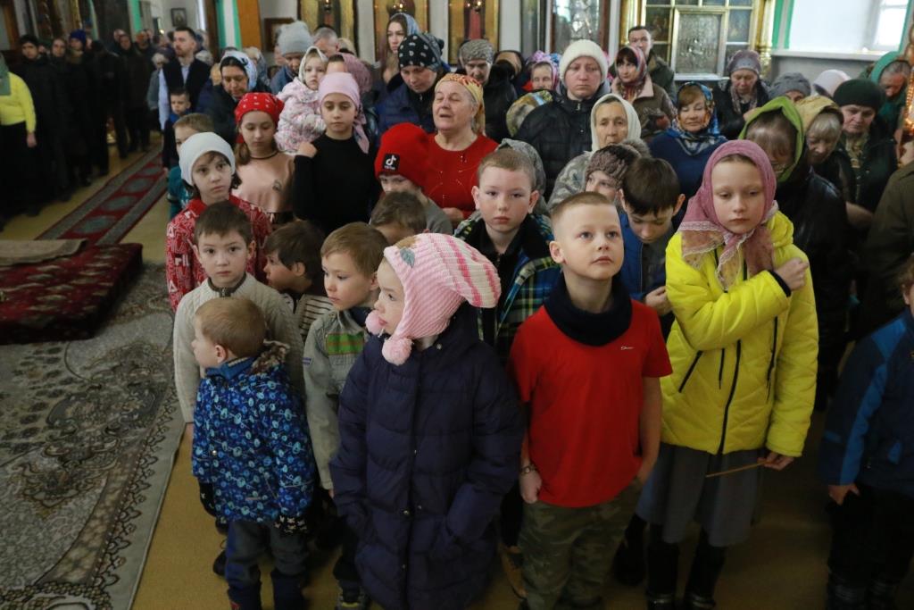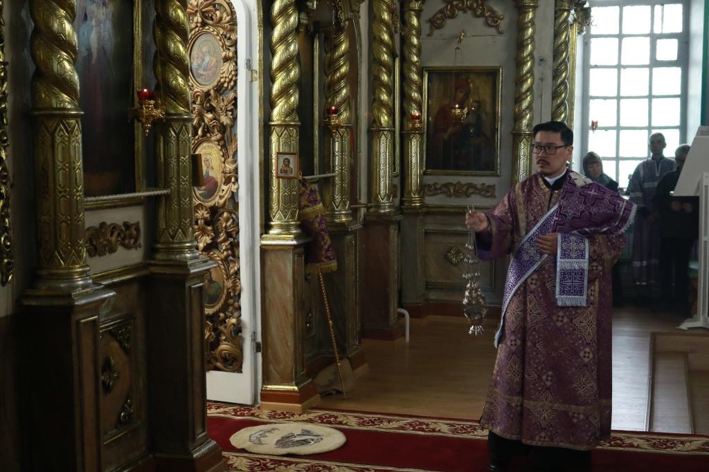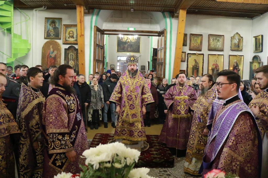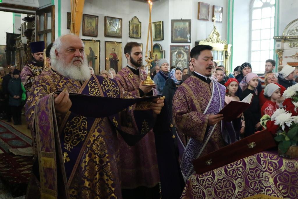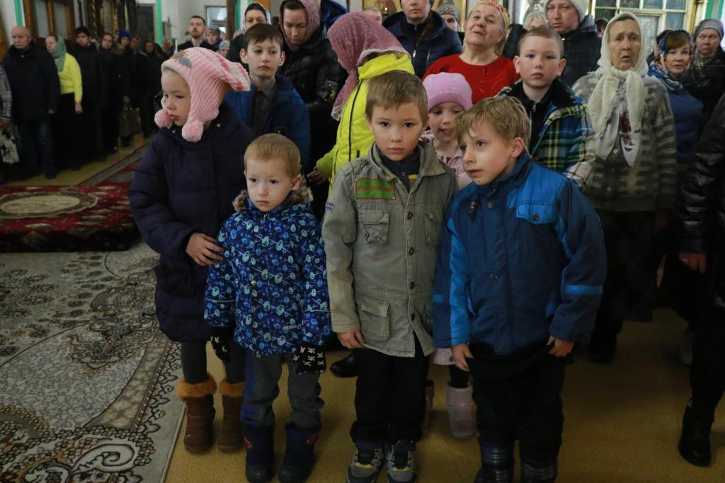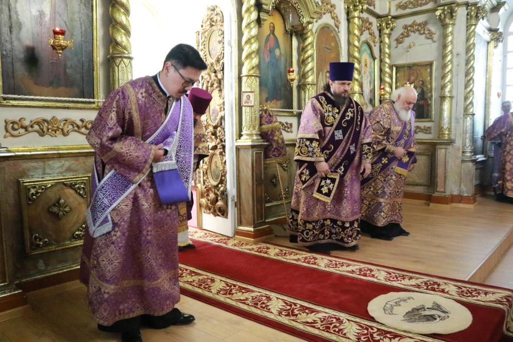 За архипастырским богослужением молились: прихожане Воскресенского собора, воспитанники приходской воскресной школы, представители семипалатинского казачества и паломники. Перед причастием мирян проповедовал иерей Вячеслав Гутов.
