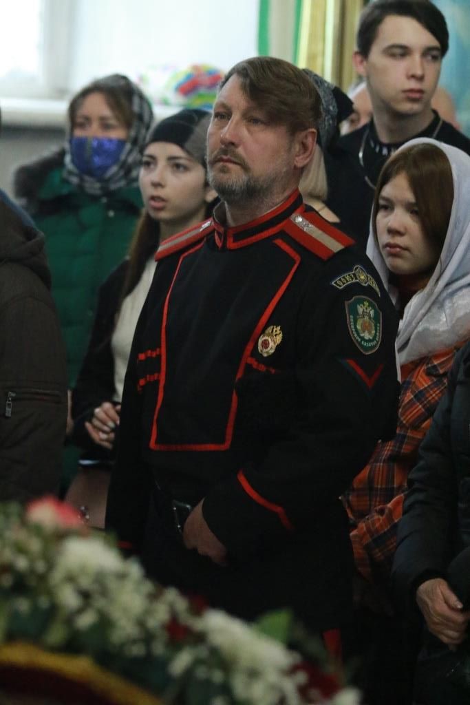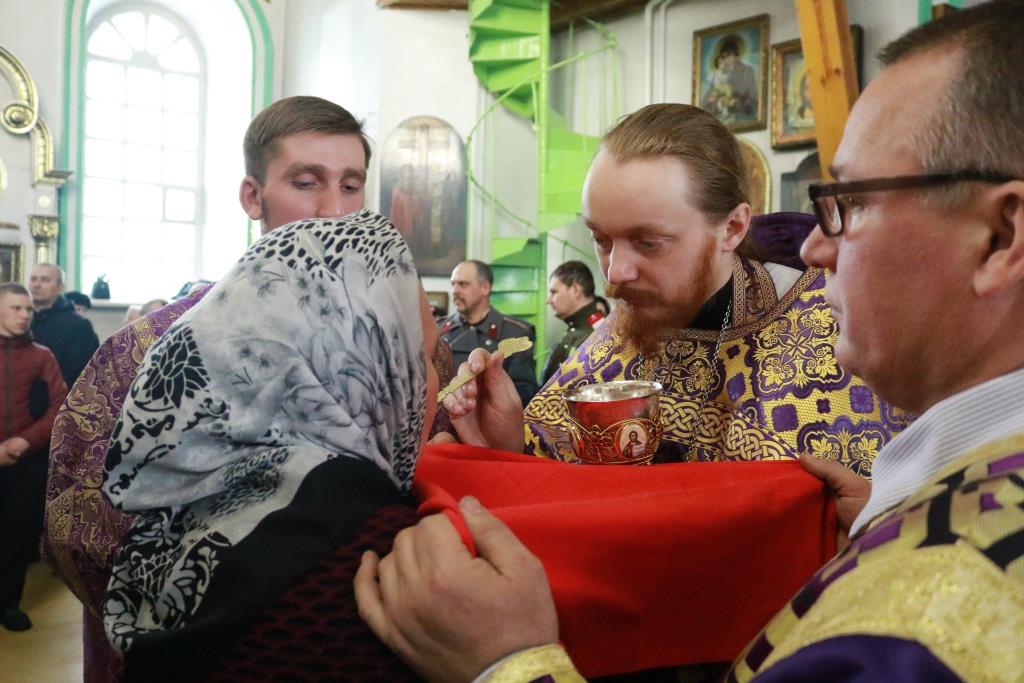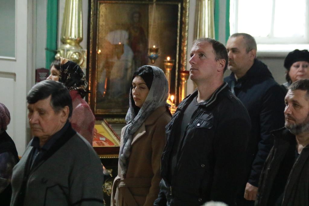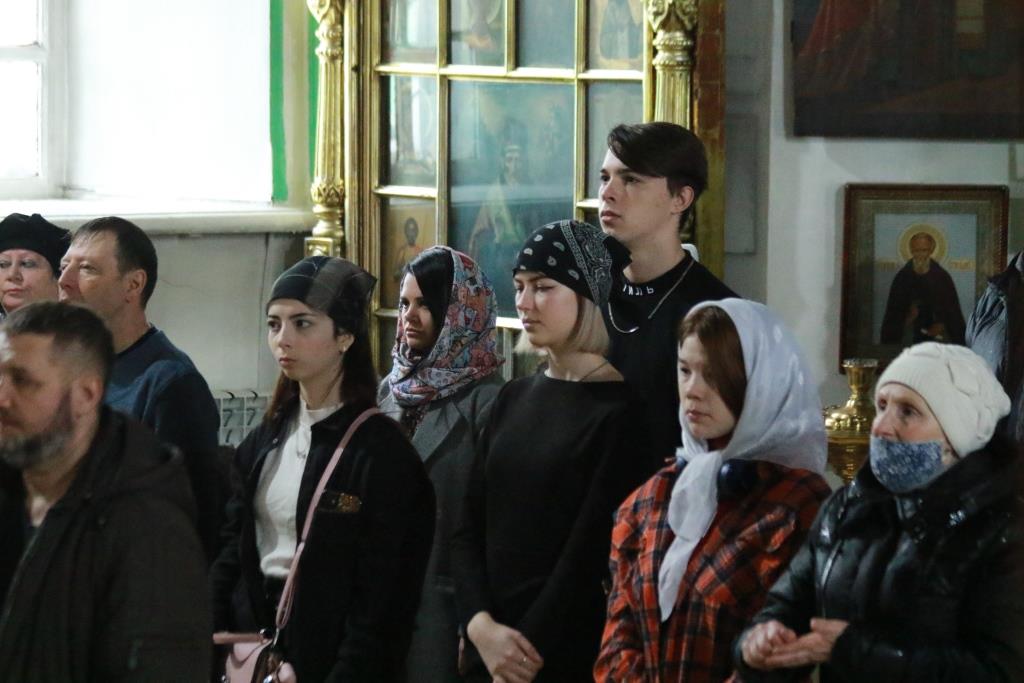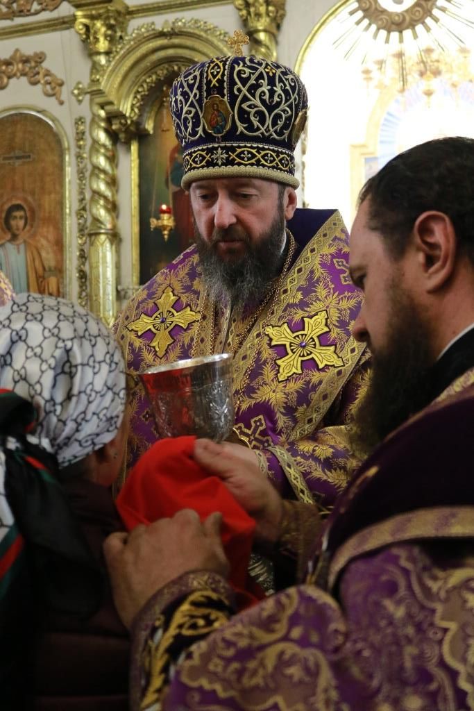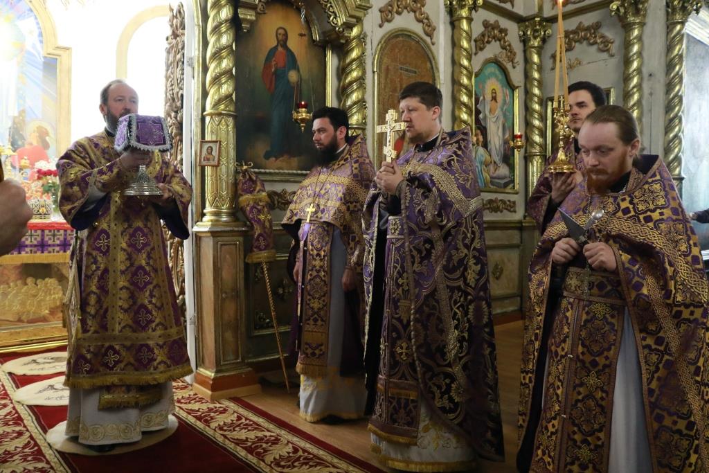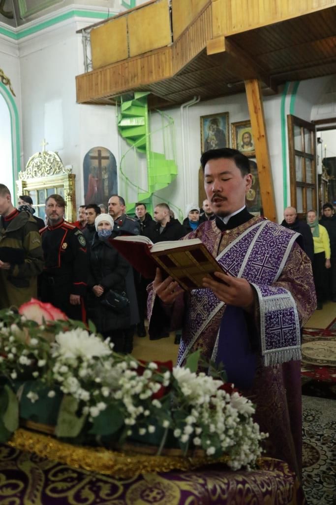 За архипастырским богослужением молились: прихожане Воскресенского собора, воспитанники приходской воскресной школы, представители семипалатинского казачества и паломники. Перед причастием мирян проповедовал иерей Вячеслав Гутов.