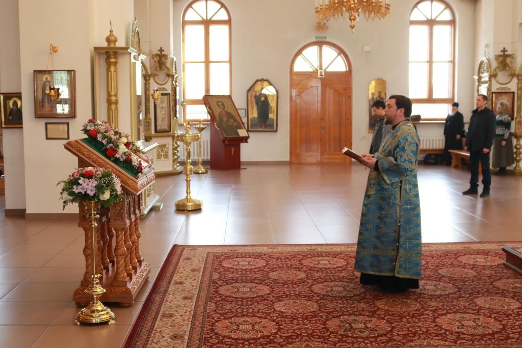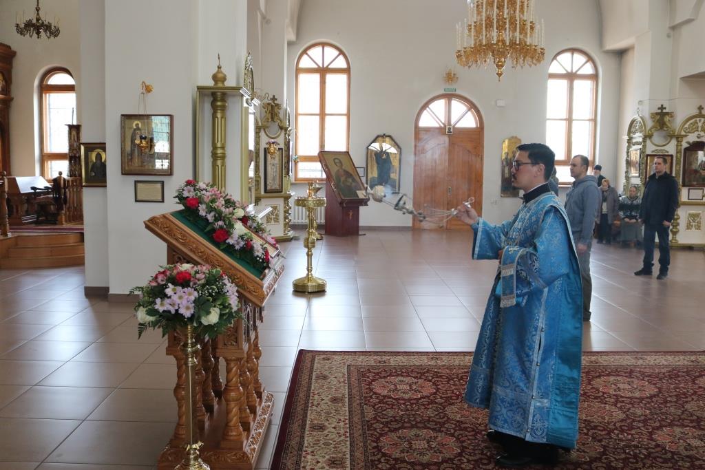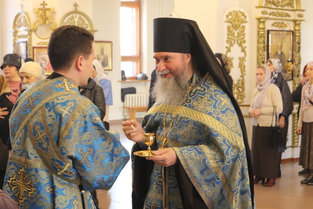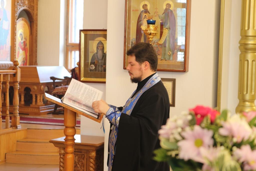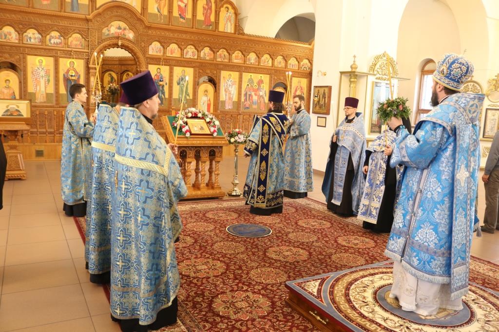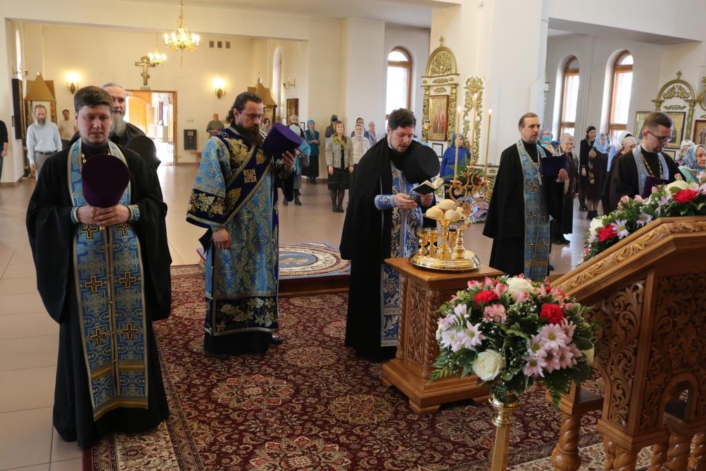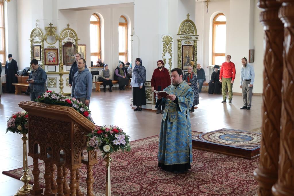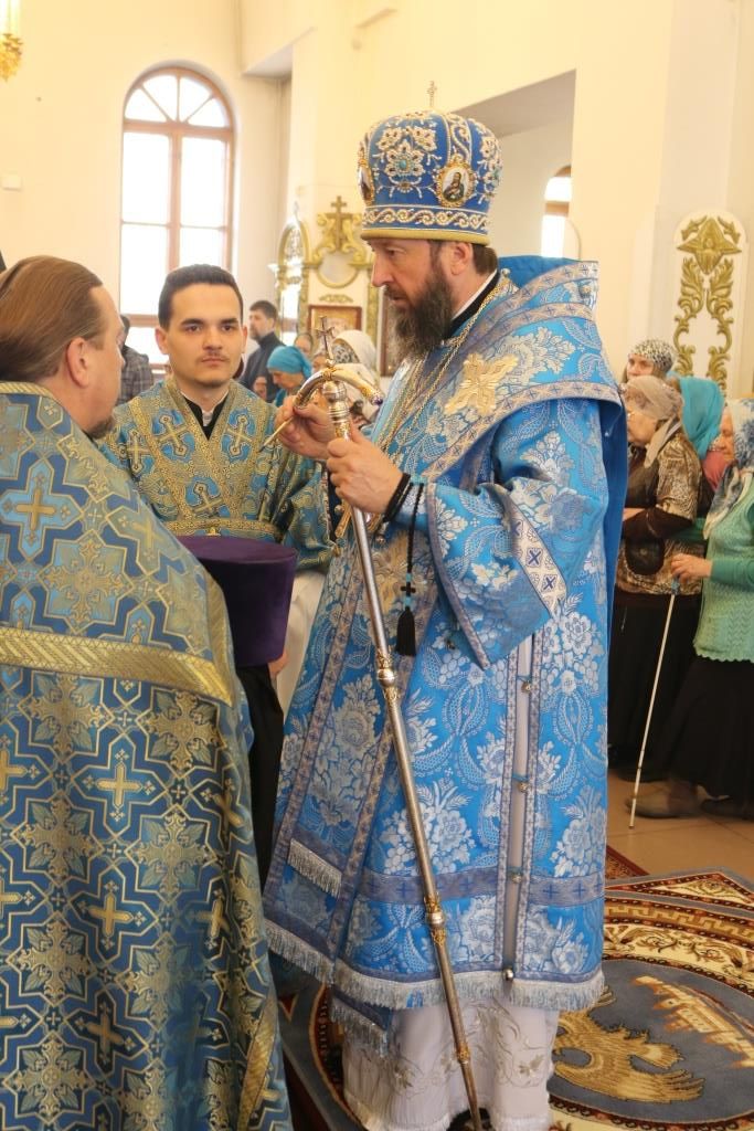 Его Преосвященству сослужили: ключарь собора иеромонах Никодим (Авдеев), клирики собора иерей Алексий Клепиков, иеромонах Силуан (Магилев), иерей Роман Подрезов, иерей Константин Дьяков, секретарь епархии диакон Илия Кван, протодиакон Андрей Дудник. Песнопения праздника Благовещения исполнял хор под управлением регента Н. Романцовой. За вечерним богослужением совершалась лития – сугубо моление с освящением пшеницы, хлеба, вина и елея.