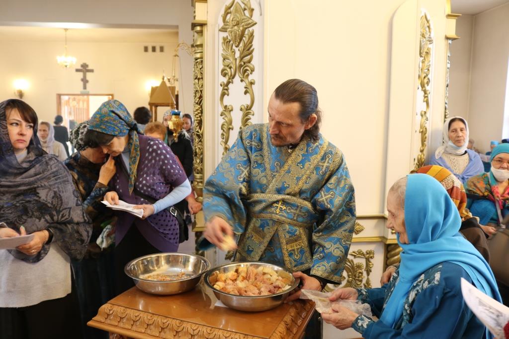 После чтения Евангелия Архипастырь помазал духовенство и прихожан освященным елеем. После помазания молящиеся получили очередной номер приходского миссионерского издания «Андреевский листок».