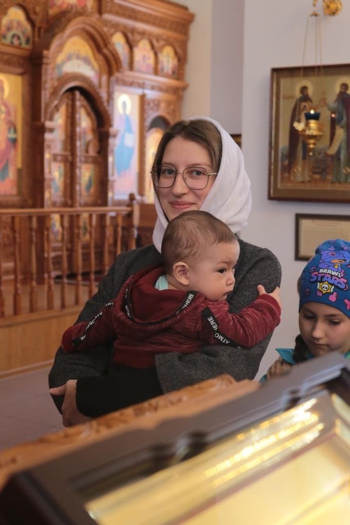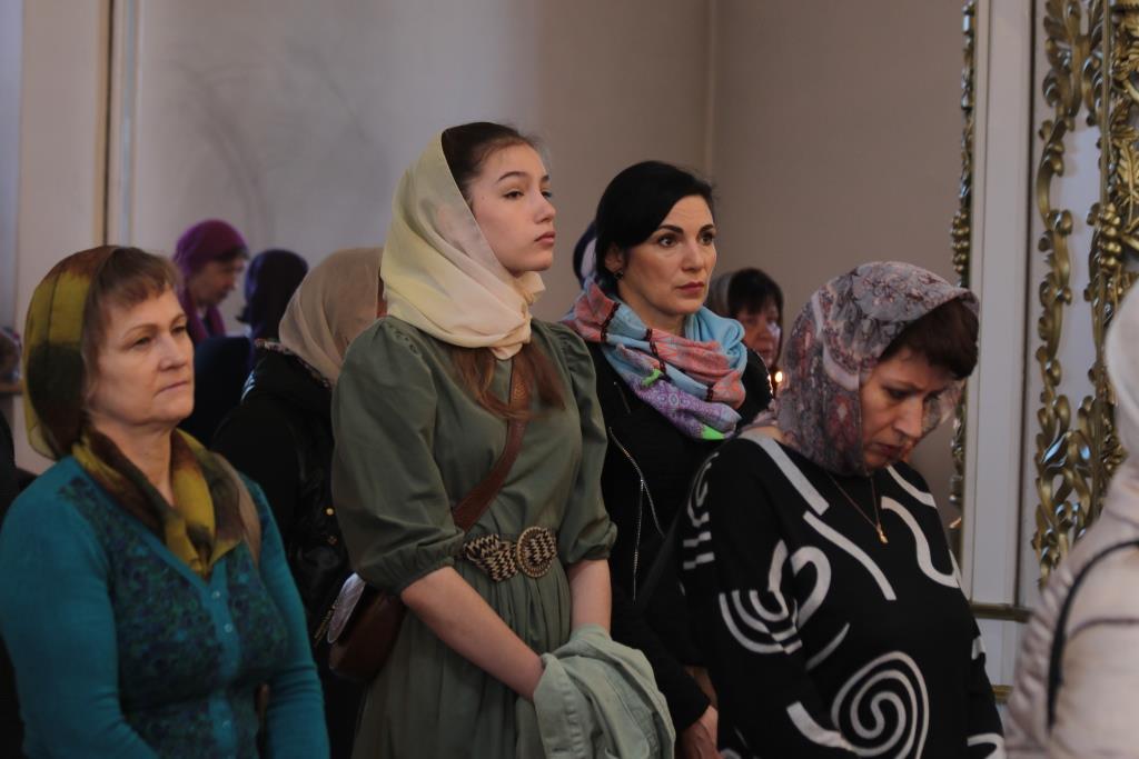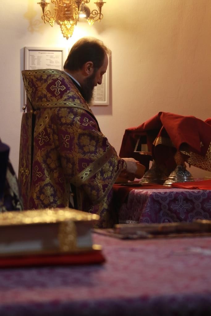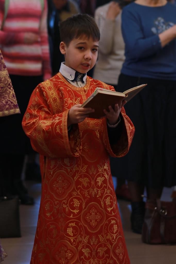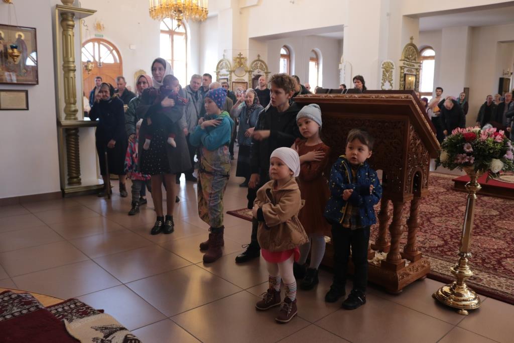 За богослужением молились сотрудники епархиального управления, насельники Свято-Троицкого мужского монастыря города Усть-Каменогорска, прихожане кафедрального собора и воспитанники Центральный воскресной школы. Литургические песнопения исполнял хор под управлением регента Н. Романцовой. На сугубой ектение епископ Амфилохий вознес молитву о мире на Украине. Перед причастием мирян иеромонах Силуан (Магилев) произнёс проповедь.