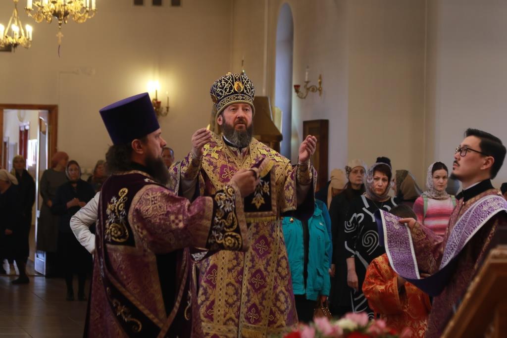 В пятое воскресение Святой Четыредесятницы епископ Усть-Каменогорский и Семипалатинский Амфилохий возглавил служение Божественной Литургии святителя Василия Великого в Андреевском кафедральном соборе города Усть-Каменогорска. Архипастырю сослужили: ключарь кафедрального собора иеромонах Никодим (Авдеев), клирики главного храма Восточного Казахстана иерей Алексий Клепиков и иеромонах Силуан (Магилев), секретарь епархии диакон Илия Кван, протодиакон Андрей Дудник.