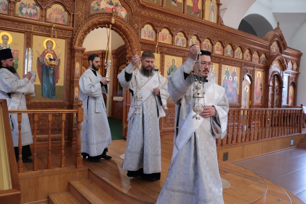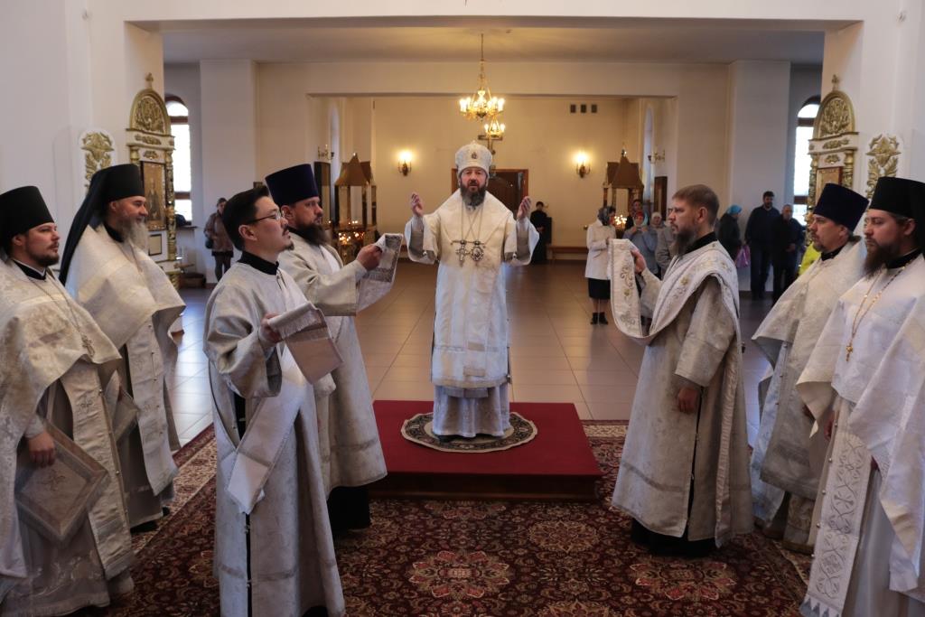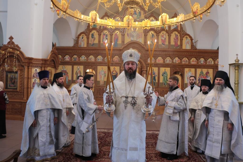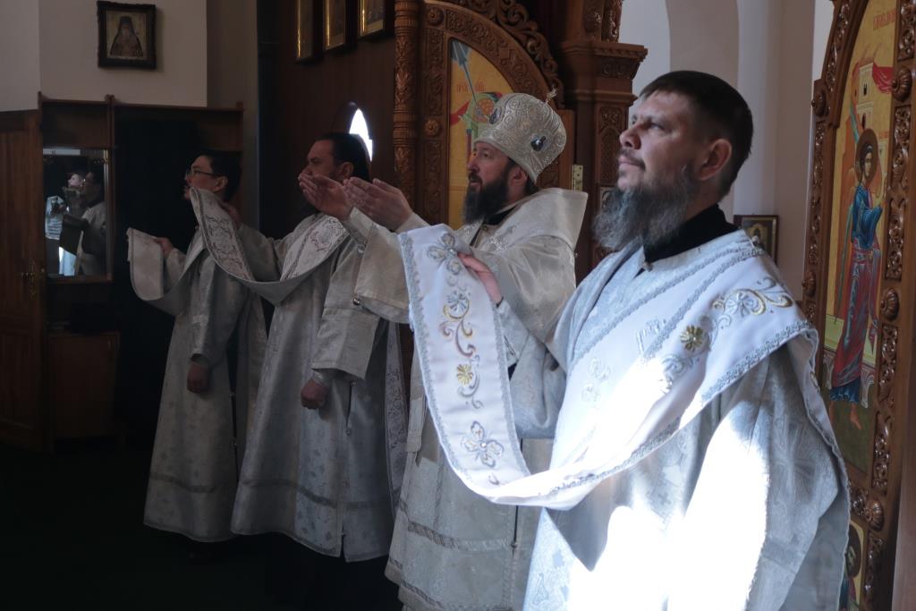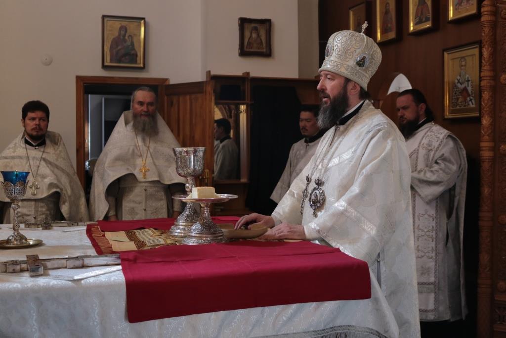 Преосвященнейший епископ Усть-Каменогорский и Семипалатинский Амфилохий совершил Божественную Литургию святителя Иоанна Златоуста в Андреевском кафедральном соборе столицы Восточного Казахстана. Архипастырю сослужили: ключарь кафедрального собора иеромонах Никодим (Авдеев), клирики собора иерей Алексий Клепиков иеромонах Силуан (Магилев), иеромонах Мефодий (Шевчук), секретарь епархии диакон Илия Кван, протодиаконы Андрей Дудник и Георгий Засыпкин.