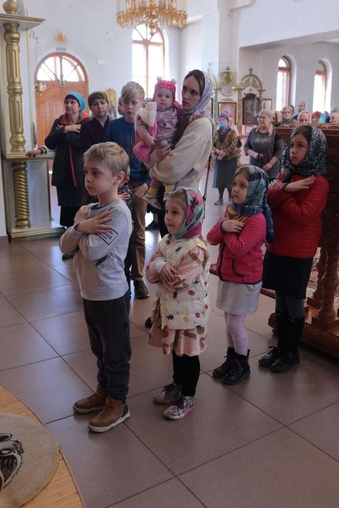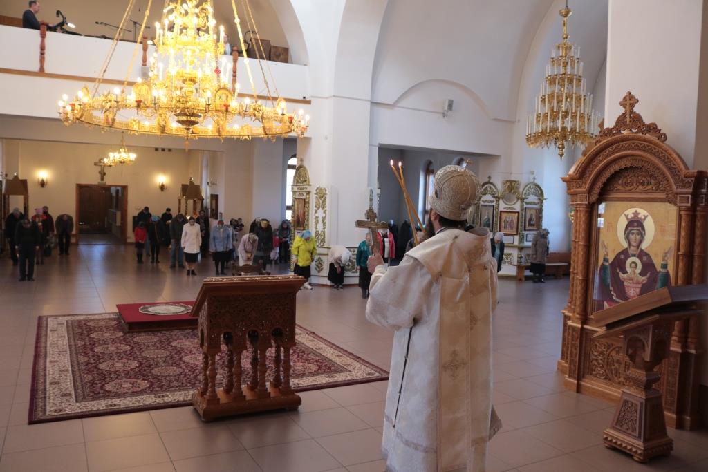 Песнопения Лазаревой субботы исполнял хор Андреевского собора под управлением Н. Романцовой. За богослужением молились прихожане собора, сотрудники епархиального управления и насельники Свято-Троицкого мужского монастыря. Перед причастием мирян проповедовал иеромонах Силуан (Магилев).