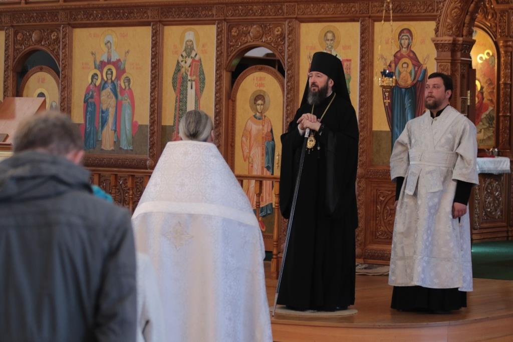После окончания Богослужения Владыка епископ поздравил духовенство и прихожан с праздником Лазаревой субботы и обратился к богомольцам со словами наставления.