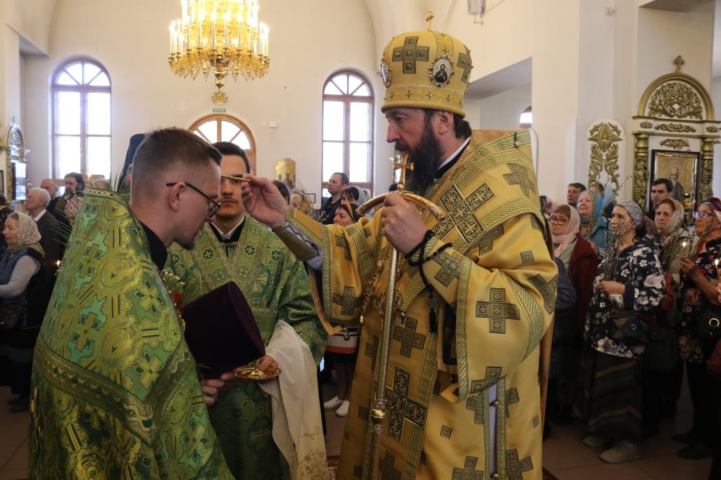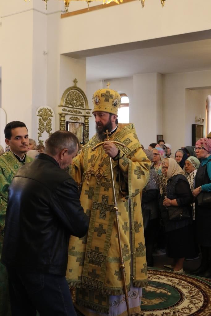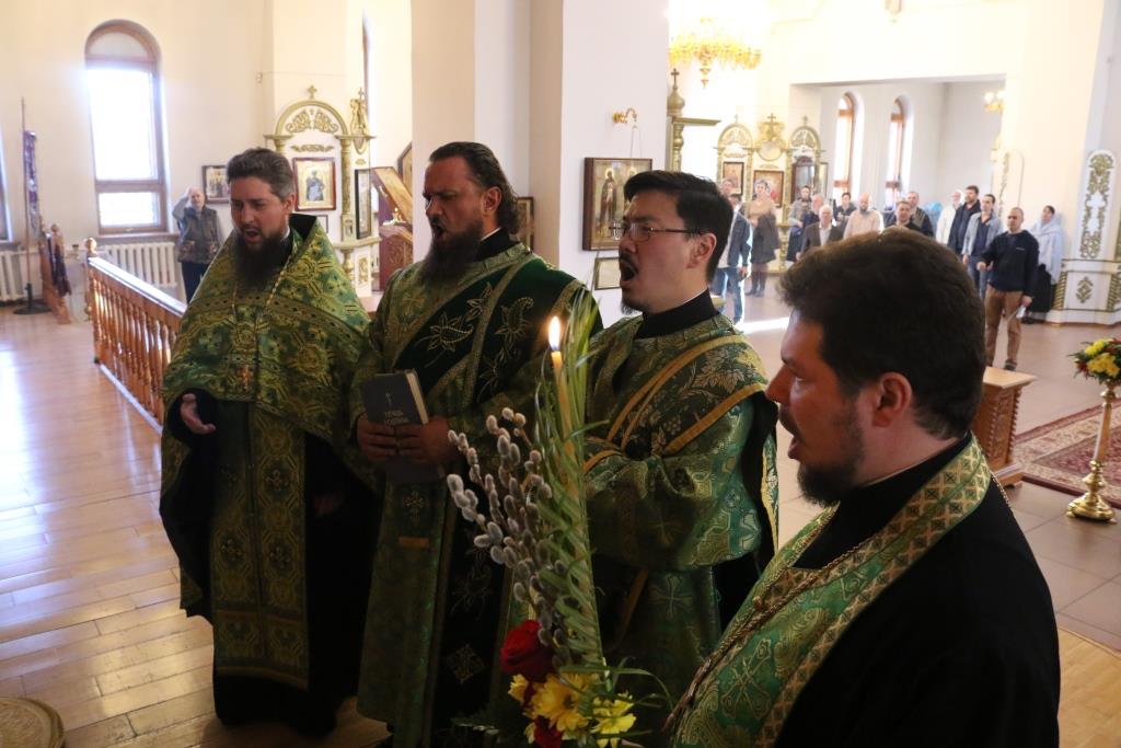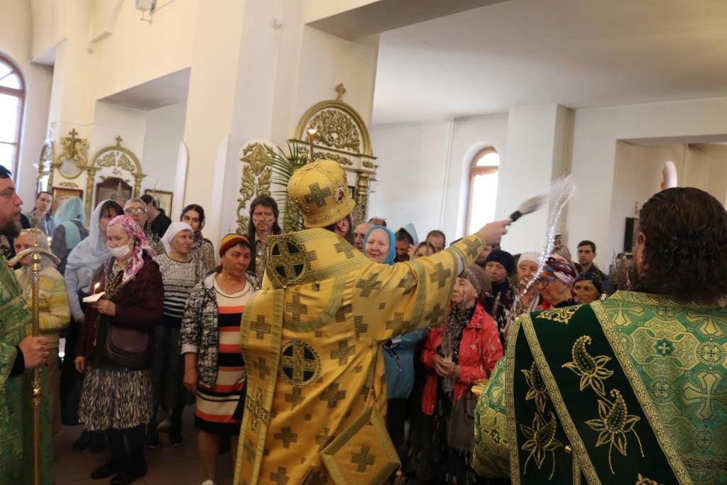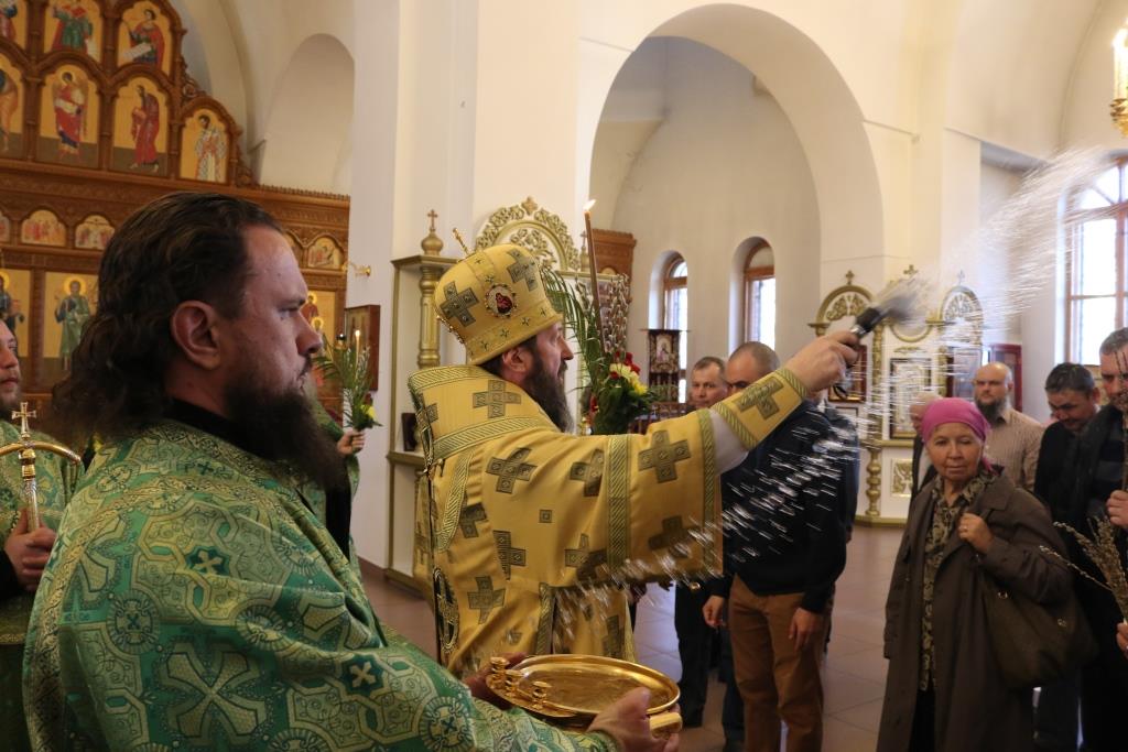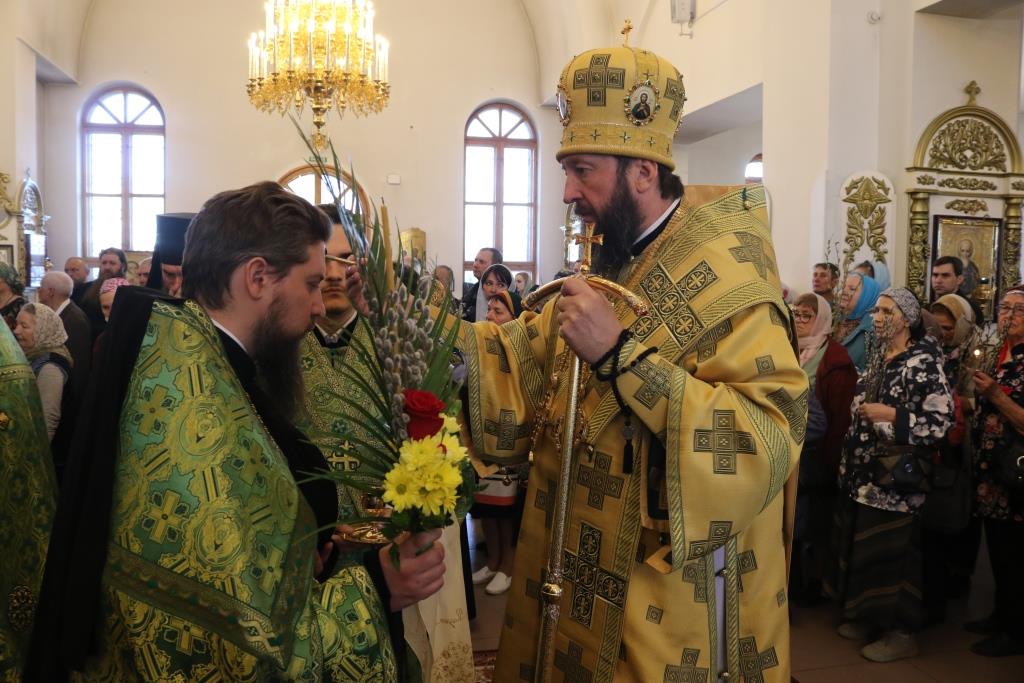 Его Преосвященству сослужили: ключарь собора иеромонах Никодим (Авдеев) и духовенство главного храма епархии. Песнопения праздника Входа Господня в Иерусалим исполнял хор под управлением регента Н. Романцовой. За вечерним богослужением совершалась лития – сугубое моление с освящением пшеницы, хлеба, вина и елея.