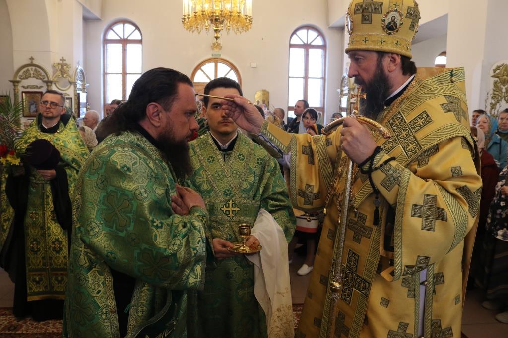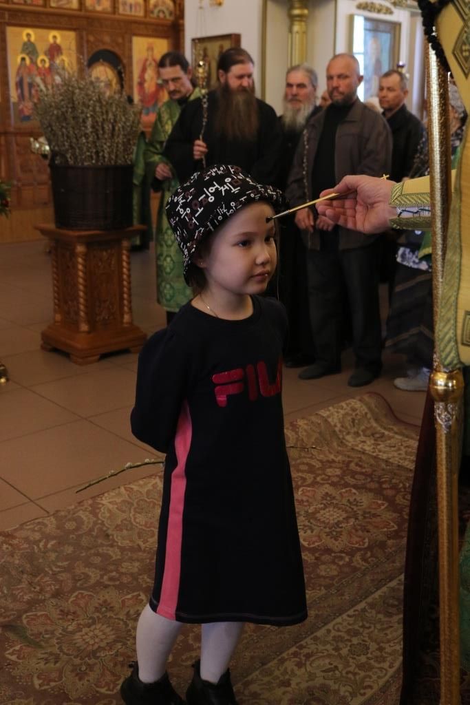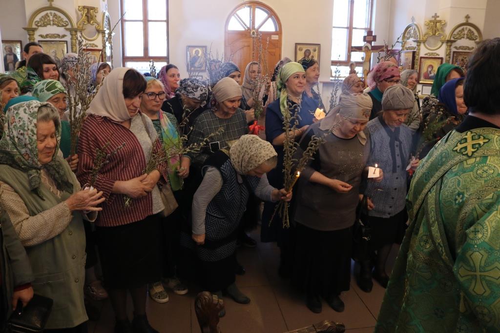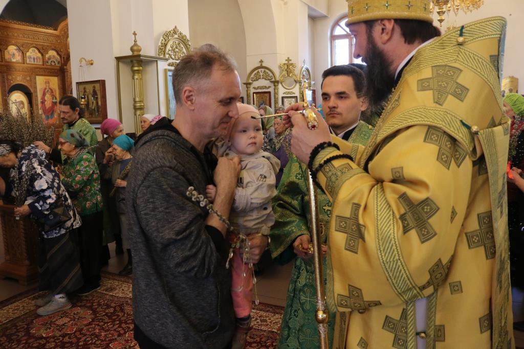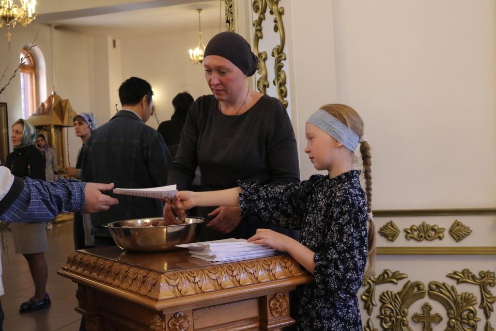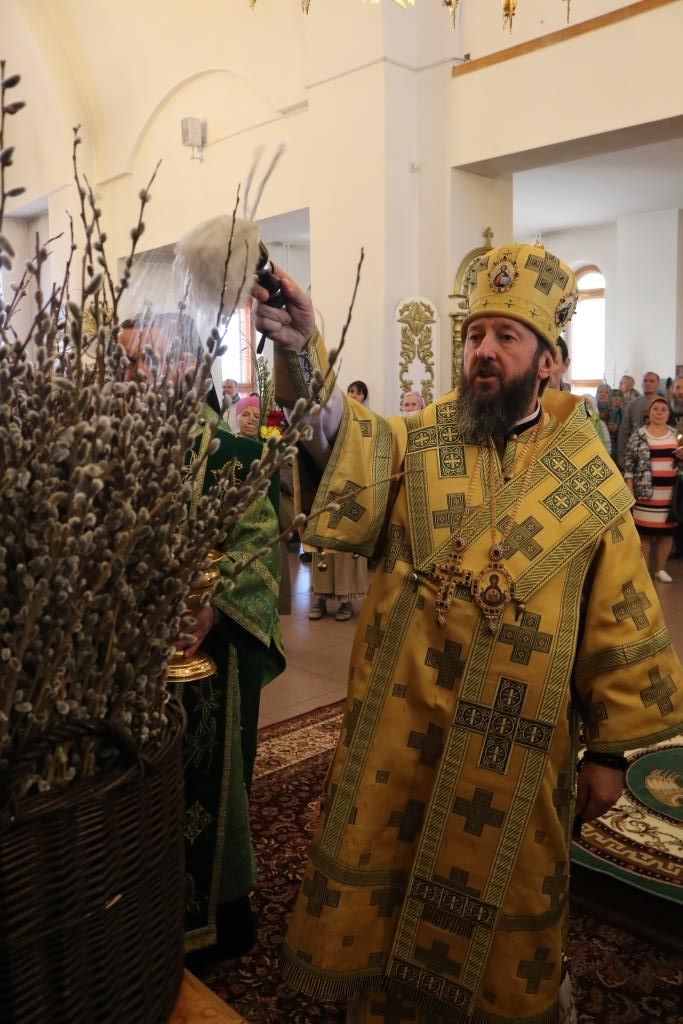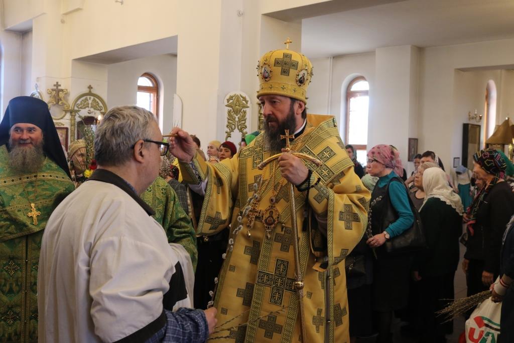 После чтения Евангелия Архипастырь вознес молитву на освящение ветвей верб и ваий и окропил их святой водой. После помазания молящиеся получили очередной номер приходского миссионерского издания «Андреевский листок».