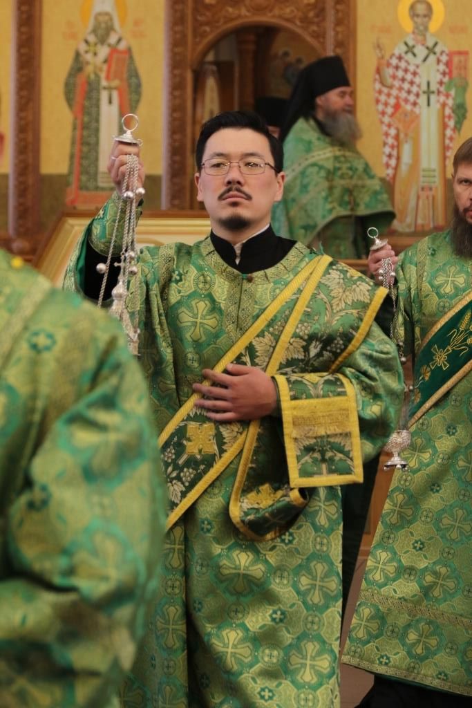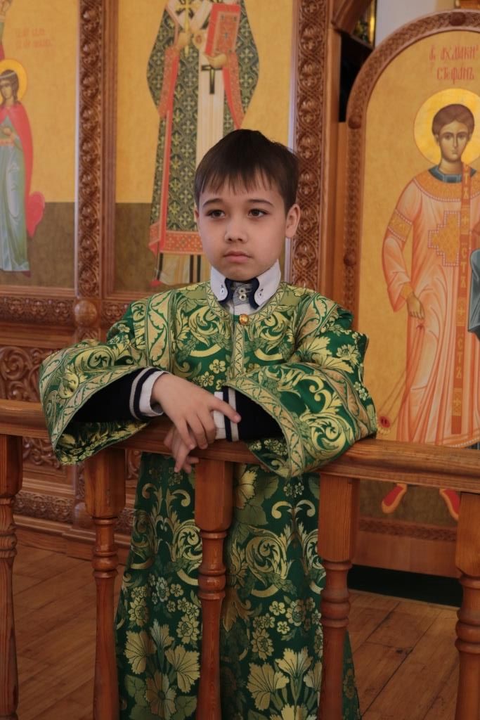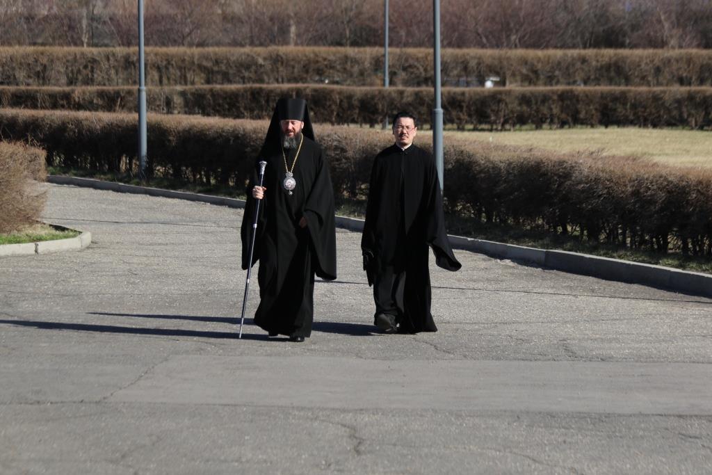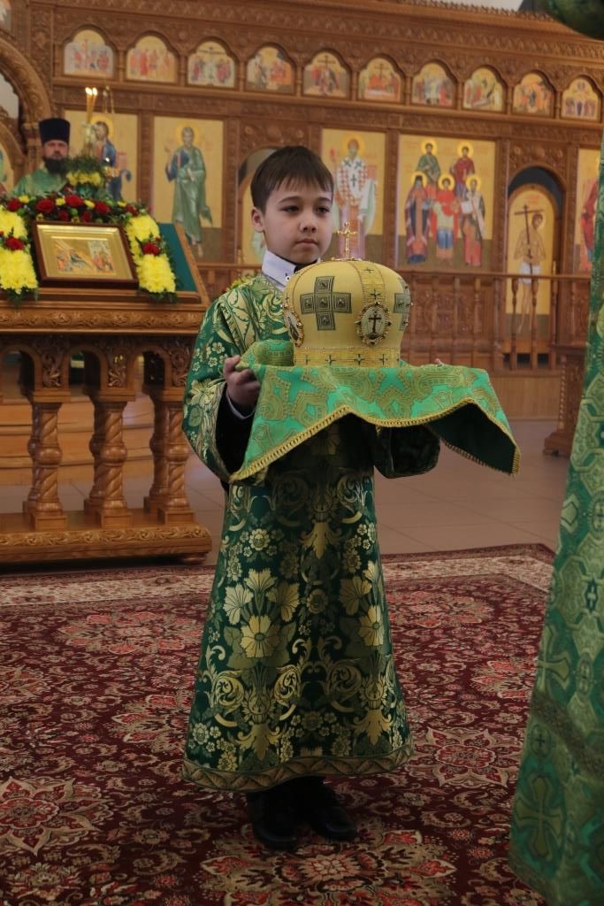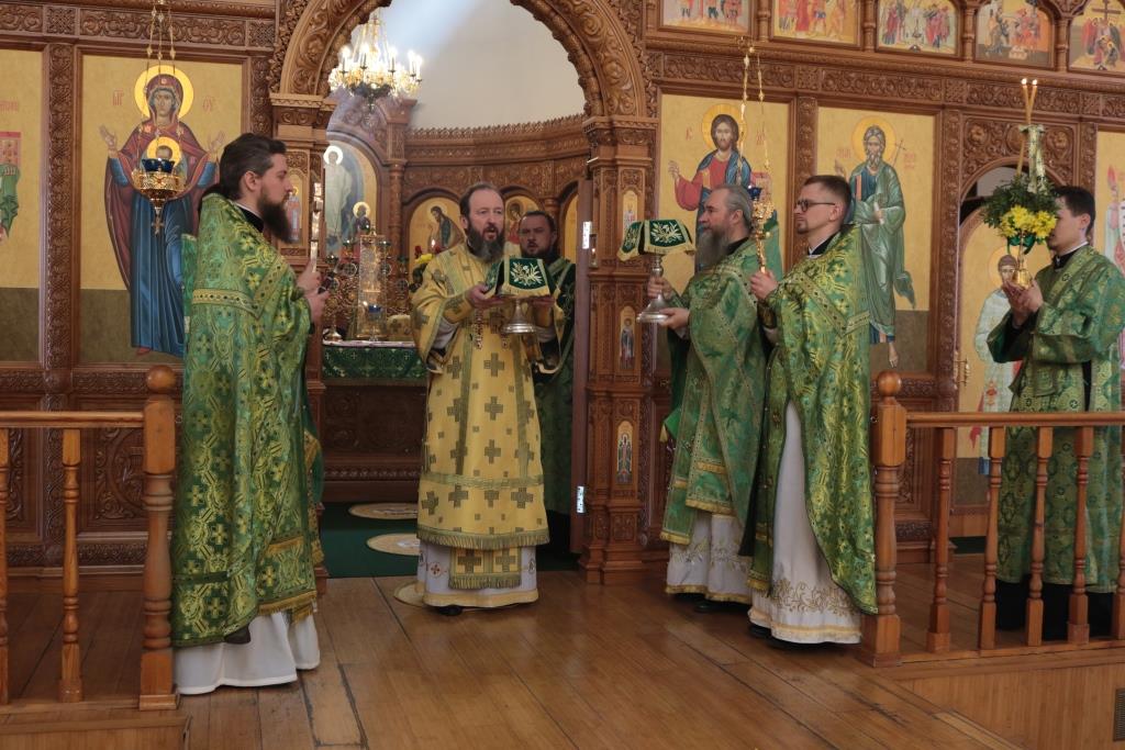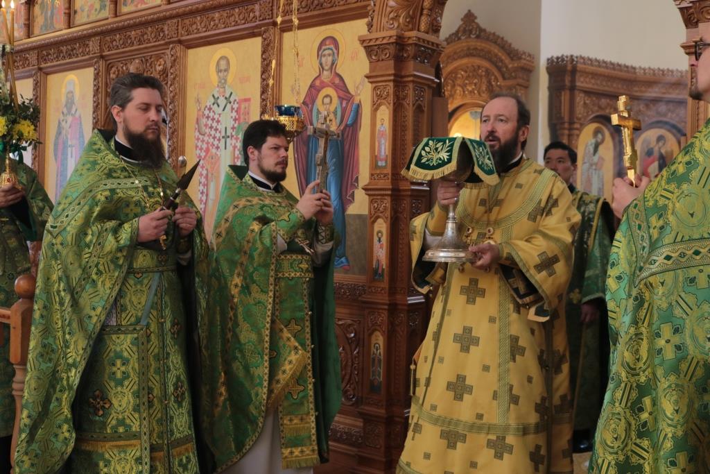 Архипастырю сослужили: ключарь кафедрального собора иеромонах Никодим (Авдеев), клирики собора иеромонах Силуан (Магилев), иерей Константин Дьяков, иеромонах Мефодий (Шевчук), секретарь епархии диакон Илия Кван, протодиакон Андрей Дудник и протодиакон Георгий Засыпкин. Песнопения праздника и Божественной Литургии исполнял хор Андреевского собора под управлением регента Н. Романцовой.