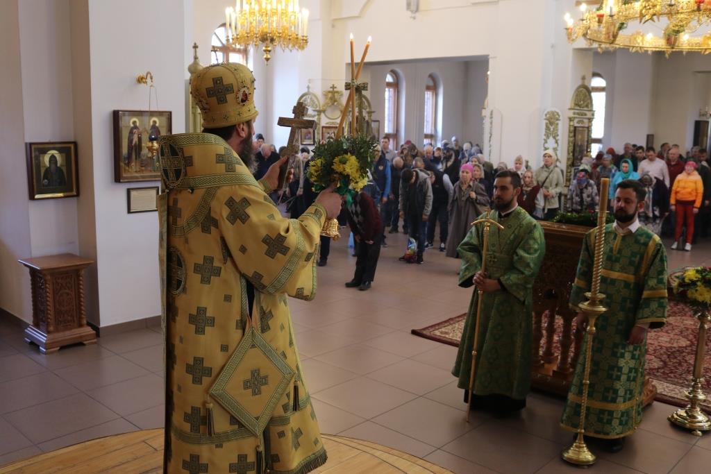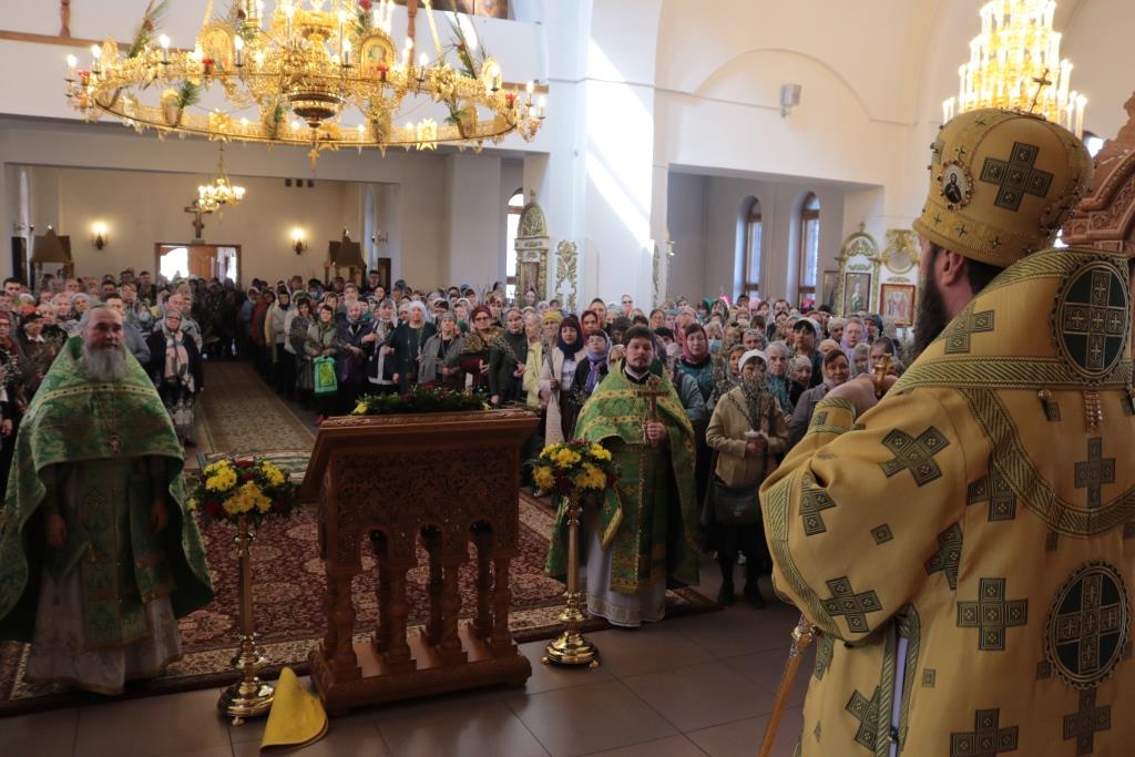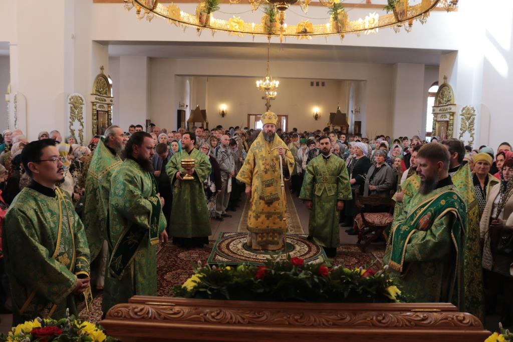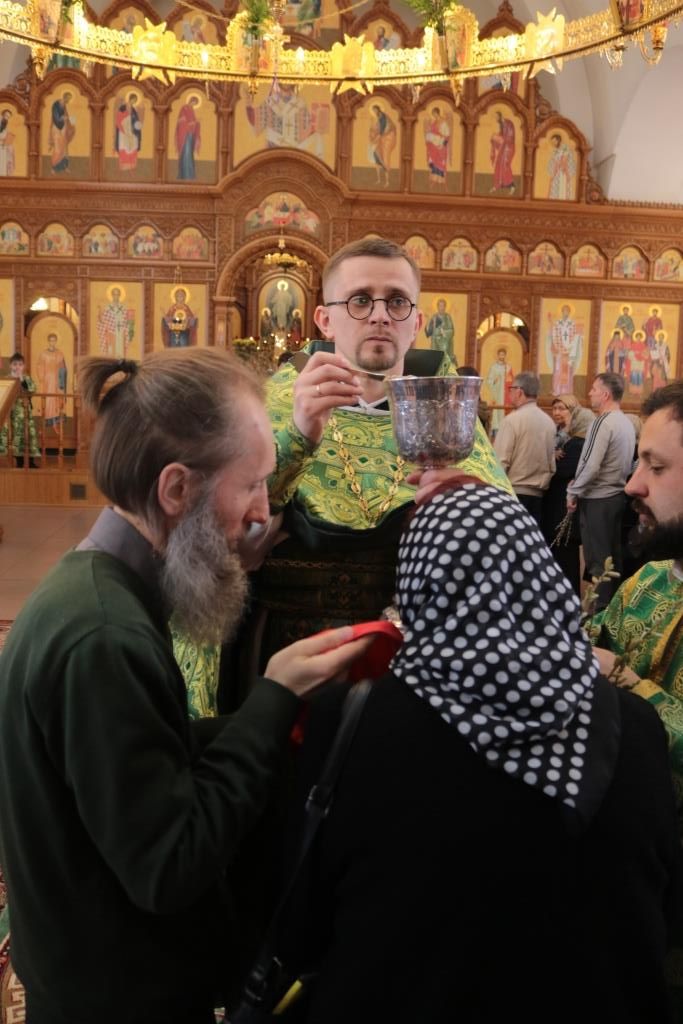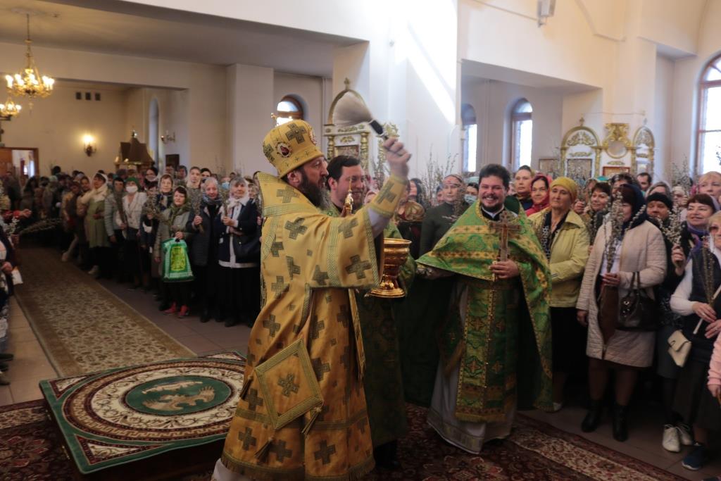 За воскресным богослужением молились прихожане главного храма епархии, насельники Свято-Троицкого мужского монастыря, сотрудники епархиального управления, преподаватели и воспитанники Центральной воскресной школы. Перед причастием мирян проповедовал иеромонах Силуан (Магилев). По благочестивой традиции, множество православных христиан в этот день приобщились Святых Христовых Таин.