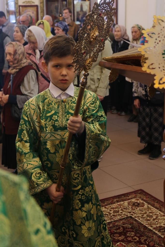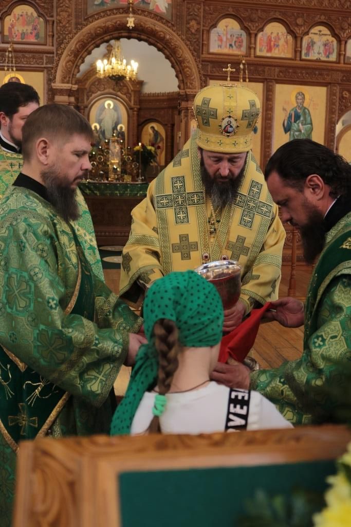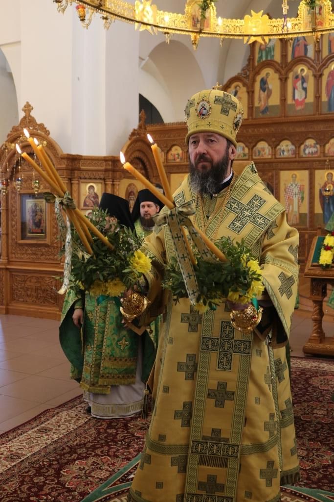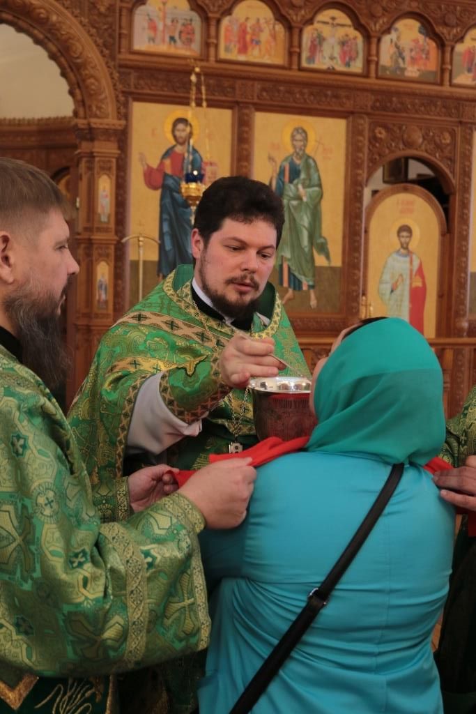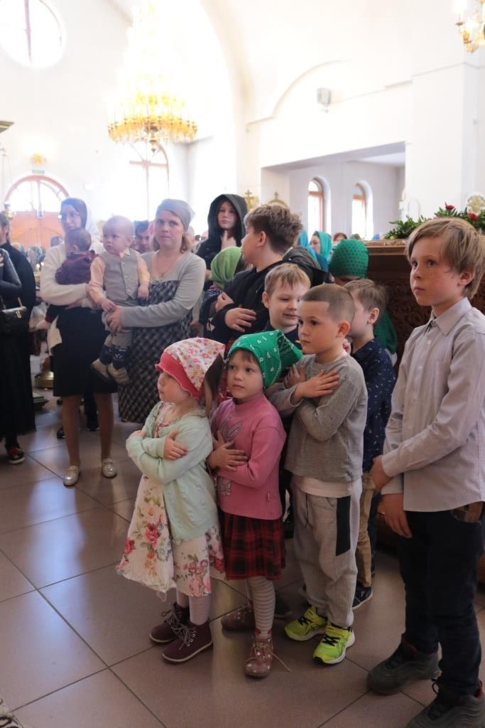 За воскресным богослужением молились прихожане главного храма епархии, насельники Свято-Троицкого мужского монастыря, сотрудники епархиального управления, преподаватели и воспитанники Центральной воскресной школы. Перед причастием мирян проповедовал иеромонах Силуан (Магилев). По благочестивой традиции, множество православных христиан в этот день приобщились Святых Христовых Таин.