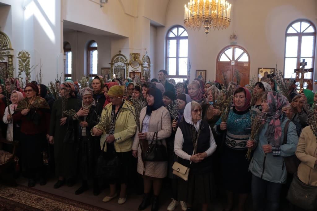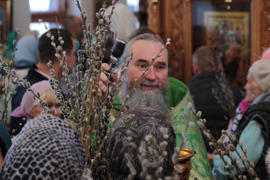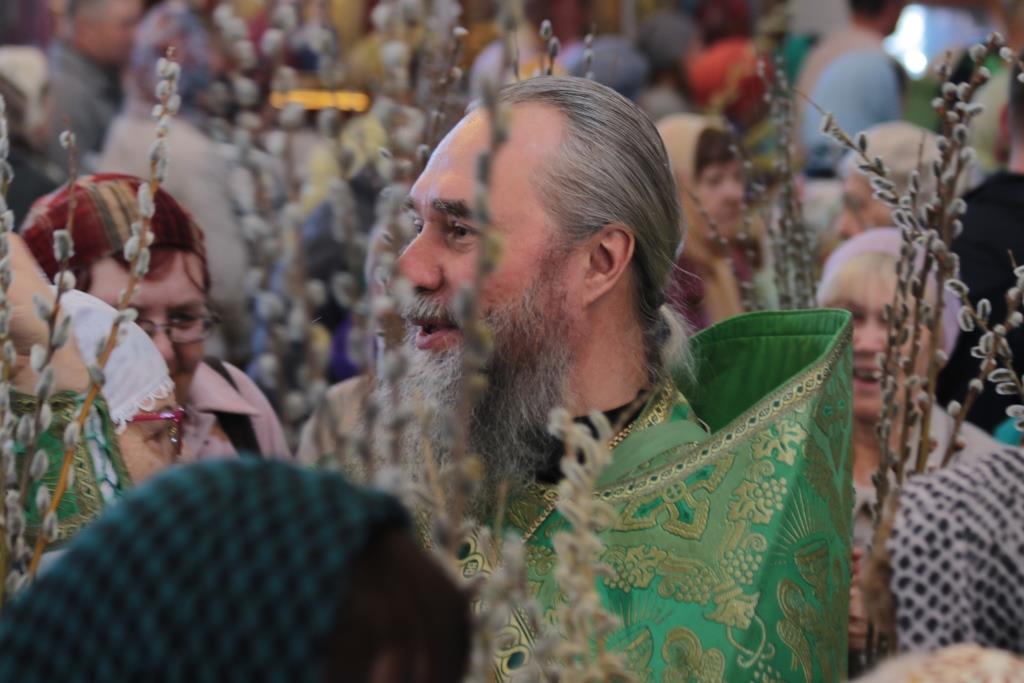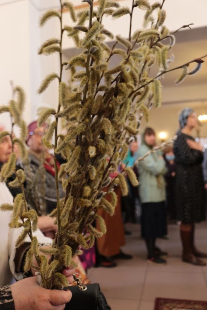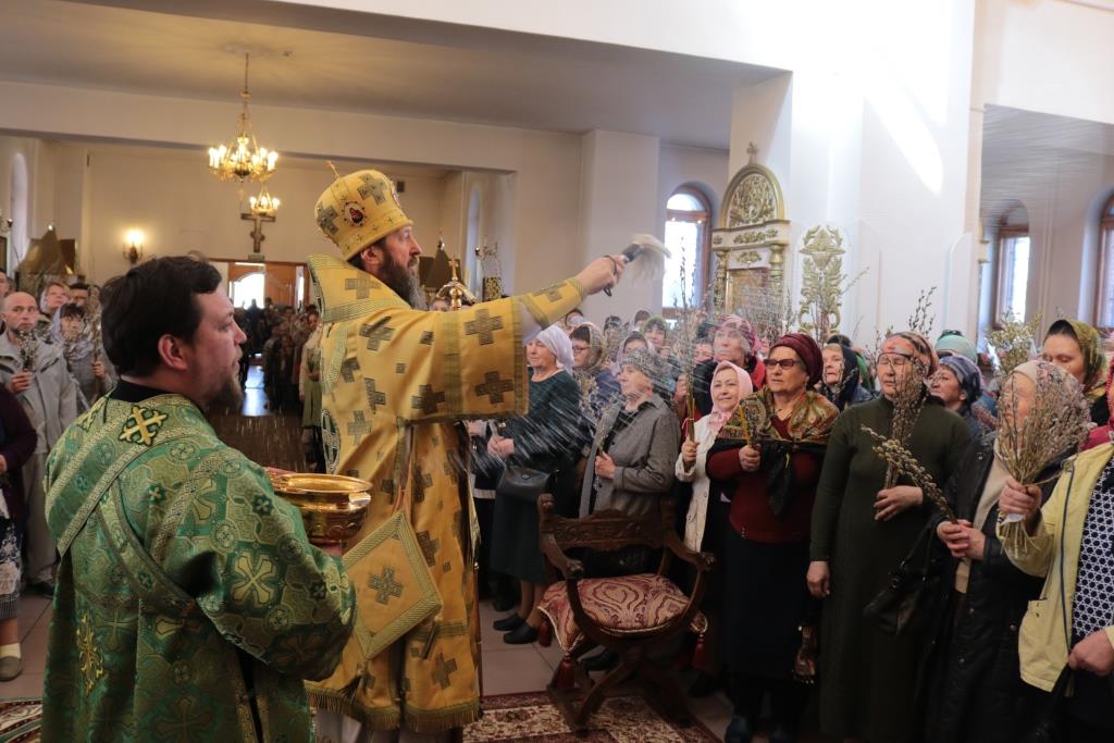 После заамвонной молитвы было совершено славление Грядущему на вольное распятие Господу Иисусу Христу и освящение ветвей верб. Затем Архипастырь обратился к народу Божию со словами поздравления и поучения.
