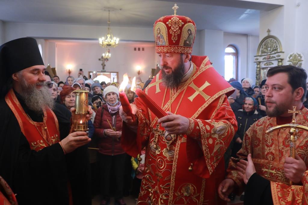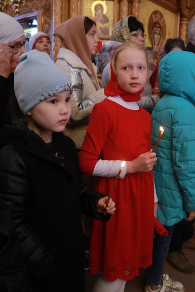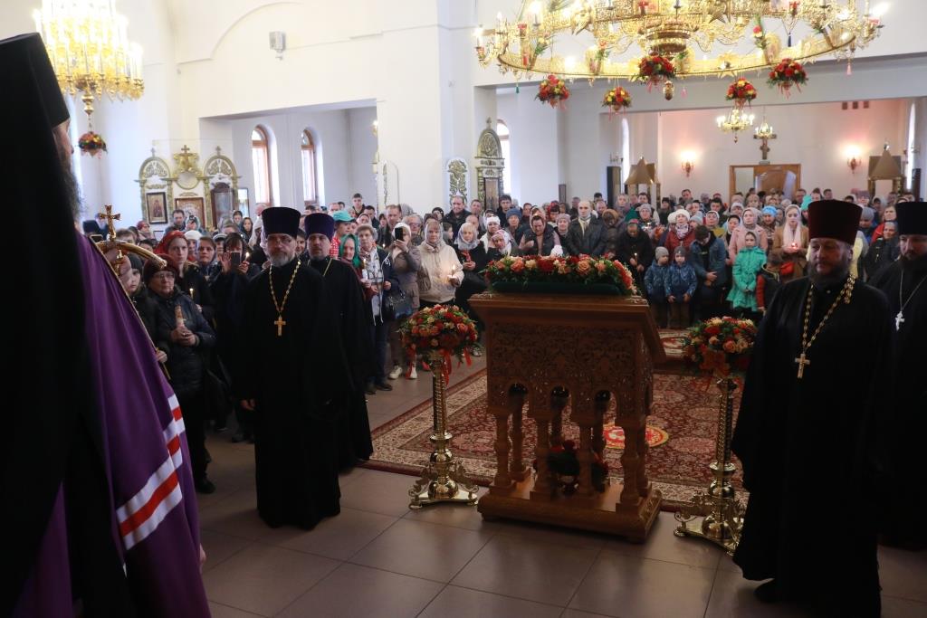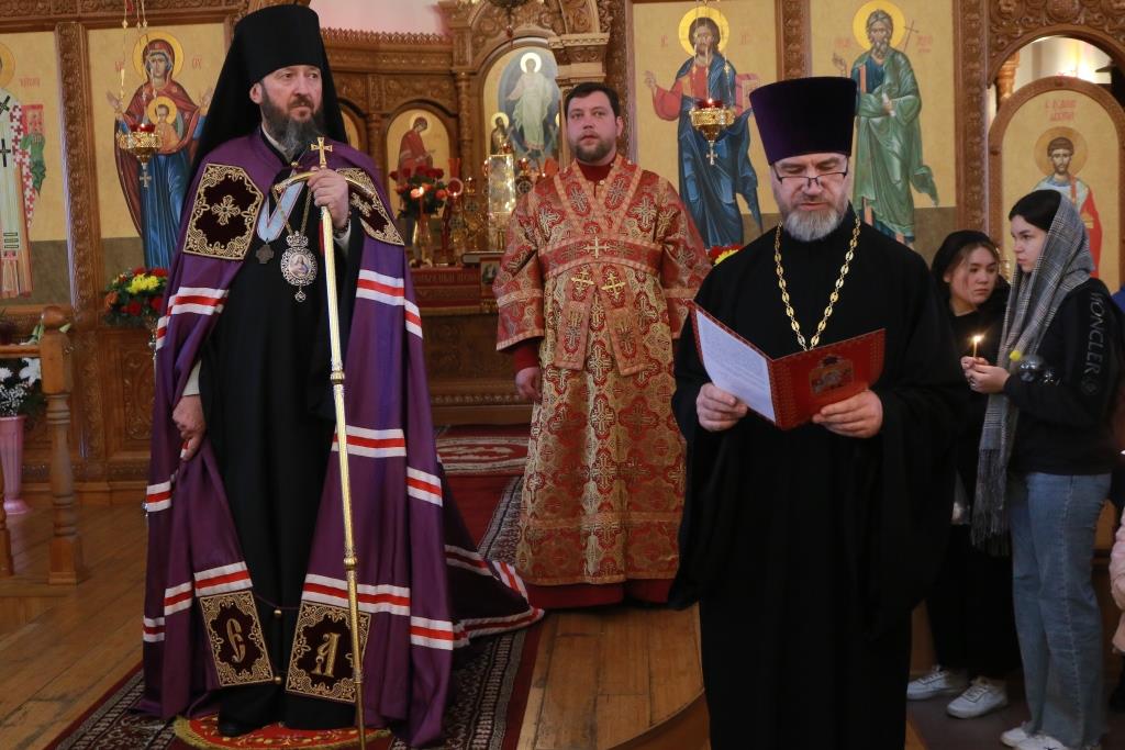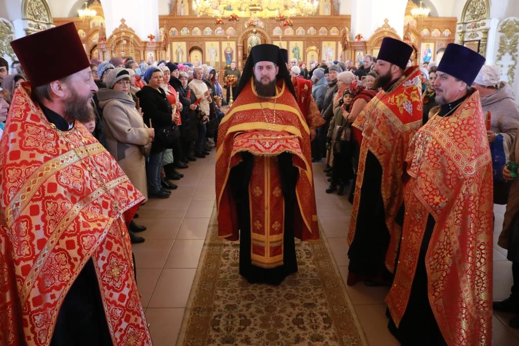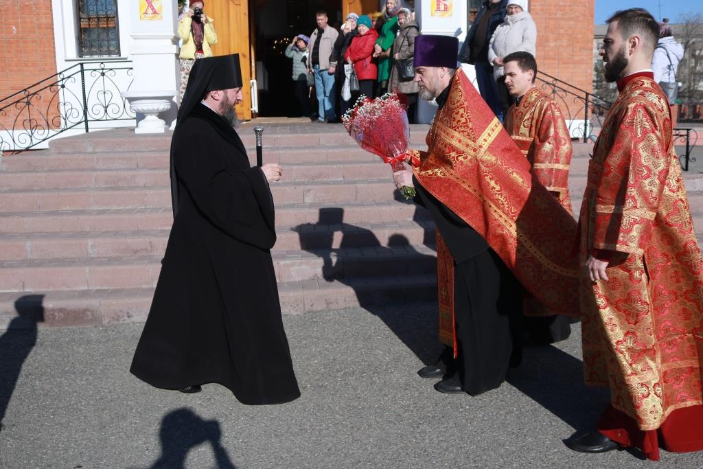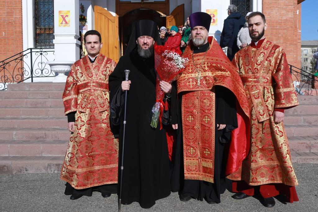 Архипастырю сослужили: благочинный Усть-Каменогорского церковного округа иерей Алексий Анищенко, ключарь Андреевского собора иеромонах Никодим (Авдеев), клирики кафедрального собора и городское духовенство.