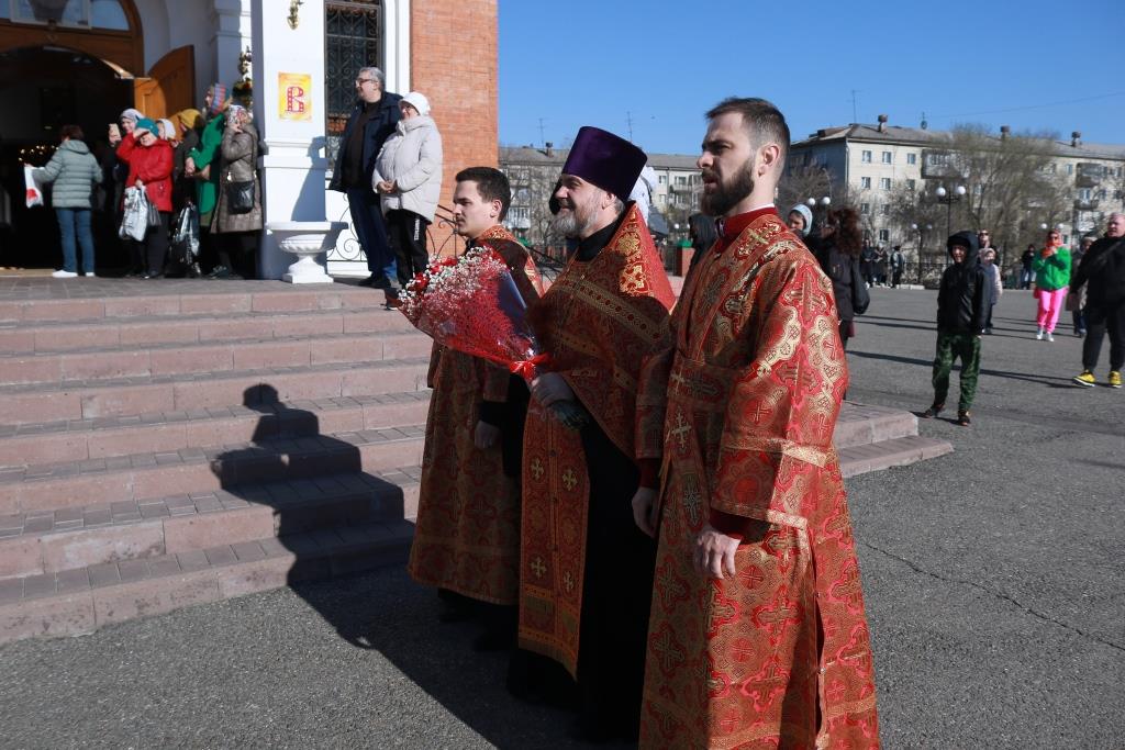 После окончания вечерни благочинный Усть-Каменогорского церковного округа иерей Алексий Анищенко огласил Пасхальное послание епископа Усть-Каменогорского и Семипалатинского Амфилохия, в котором Архипастырь отметил: «празднование Пасхи Христовой не будет для нас полным, если мы не поспешим разделить радость «праздника праздников и торжества из торжеств» с нашими ближними, с теми, кто нуждается в помощи, в заботе и утешении. Протянем им руку помощи, окажем им свою деятельную любовь, укрепим духовно и поддержим материальной жертвой. «Благотворительность, как рай, полна благословений, и милостыня пребывает вовек» (Сир. 40:17), - напоминает нам ветхозаветный праведник».