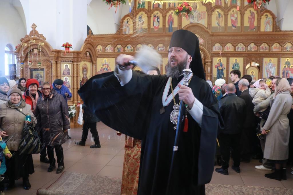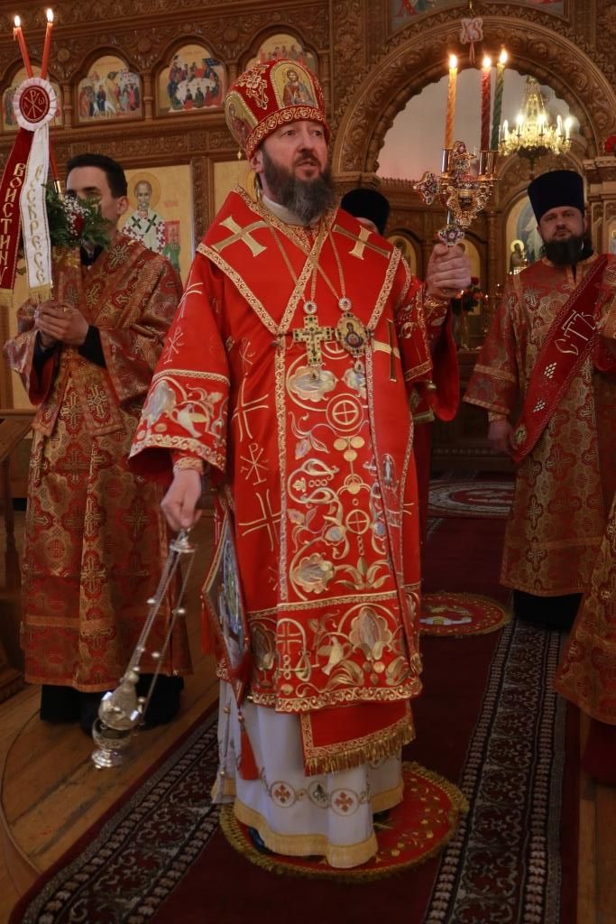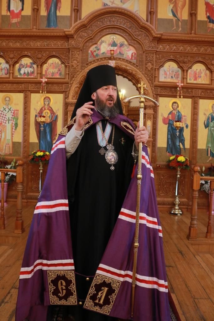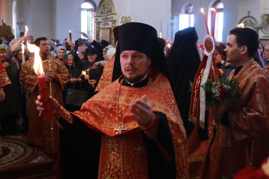 После чтения Пасхального послания Преосвященнейший Владыка обратился к духовенству и прихожанам с Архипастырским словом, в котором поздравил всех собравшихся с великим торжеством Пасхи Господней и пожелал всем трепетно хранить радость о поправшем смерть Господе Иисусе в своих сердцах, чтоб делиться этой радостью со всеми близкими. После проповеди духовенство и прихожане поздравили Преосвященного Владыку с праздником Воскресения Христова.