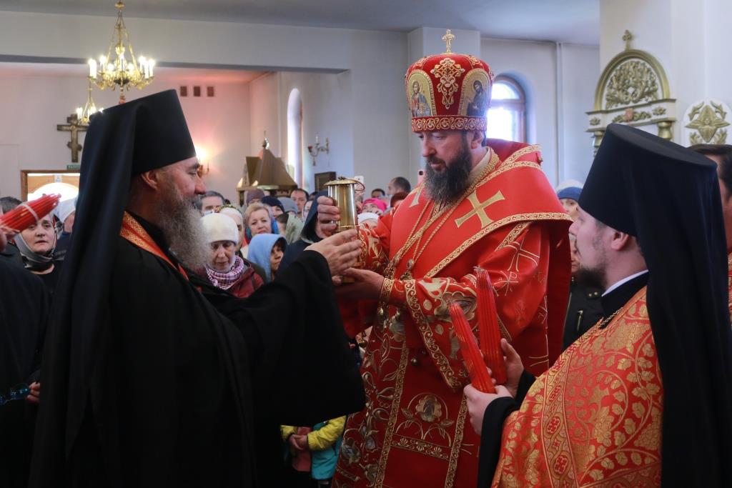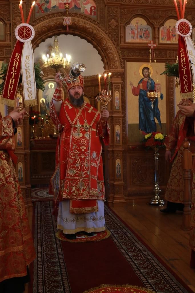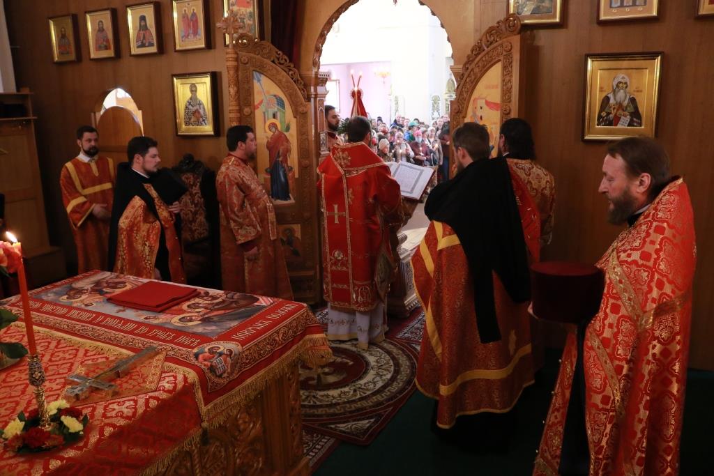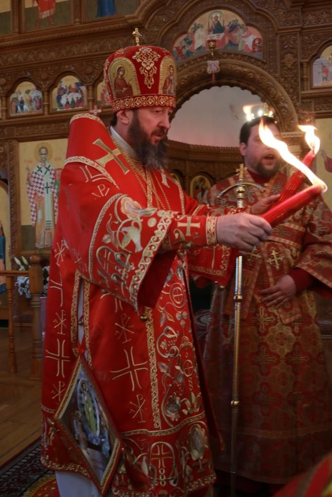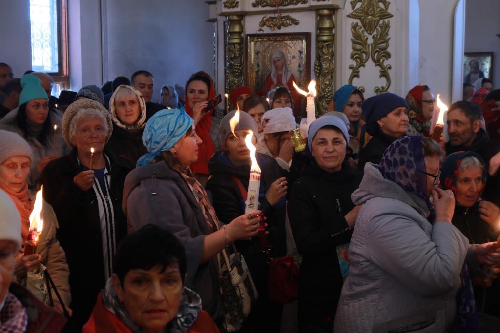 После чтения Пасхального послания Преосвященнейший Владыка обратился к духовенству и прихожанам с Архипастырским словом, в котором поздравил всех собравшихся с великим торжеством Пасхи Господней и пожелал всем трепетно хранить радость о поправшем смерть Господе Иисусе в своих сердцах, чтоб делиться этой радостью со всеми близкими. После проповеди духовенство и прихожане поздравили Преосвященного Владыку с праздником Воскресения Христова.