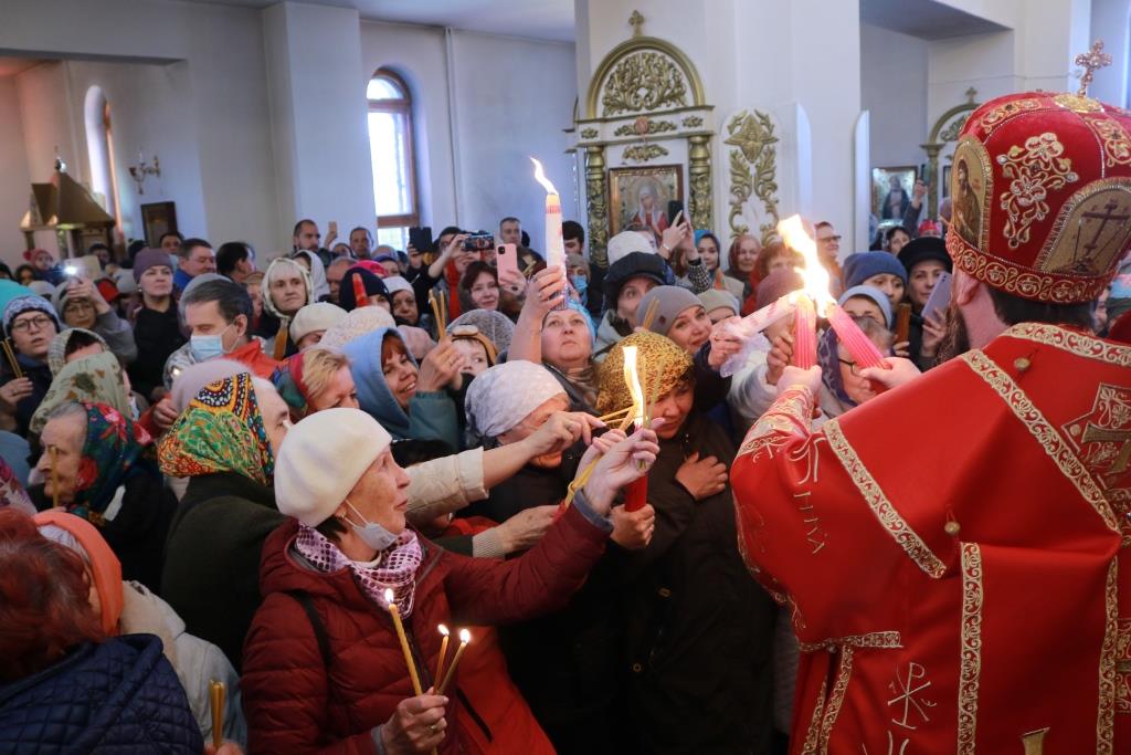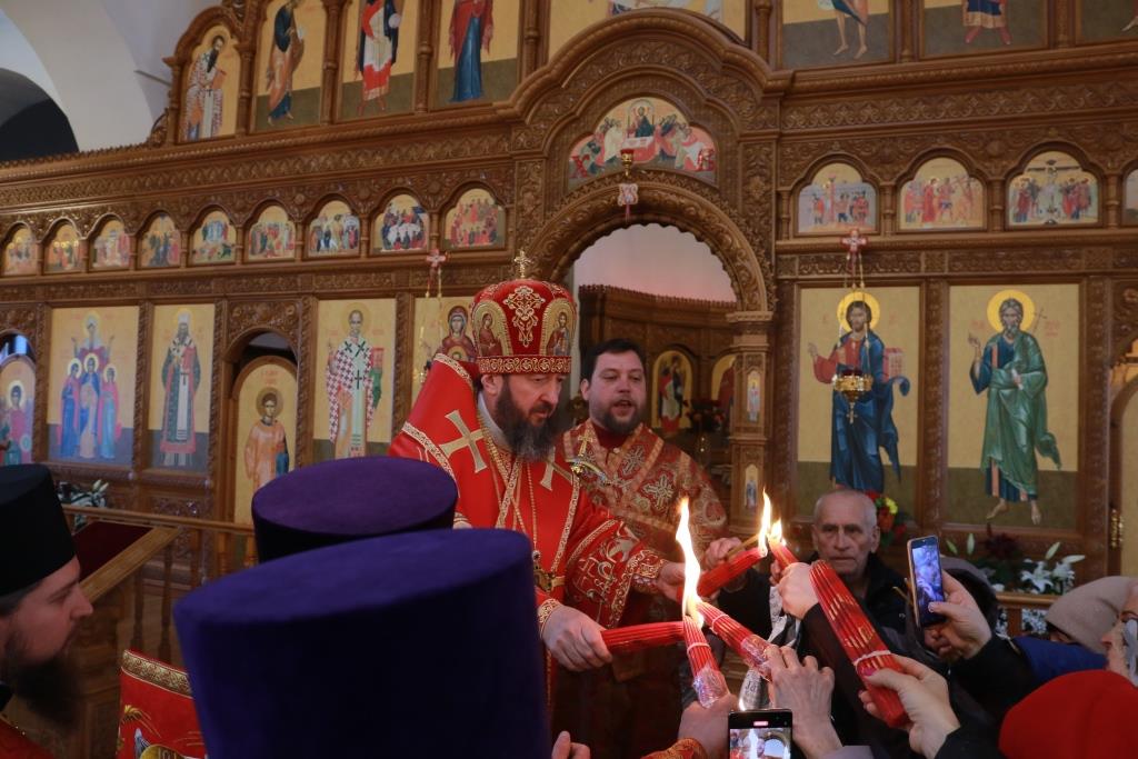 К началу праздничного пасхального богослужения под своды главного храма епархии по благословению владыки Амфилохия была доставлена великая святыня со Святой Земли – Благодатный Огонь. Архипастырь возжег от лампады свечи, после чего раздал святыню многочисленным прихожанам, богомольцам и паломникам.