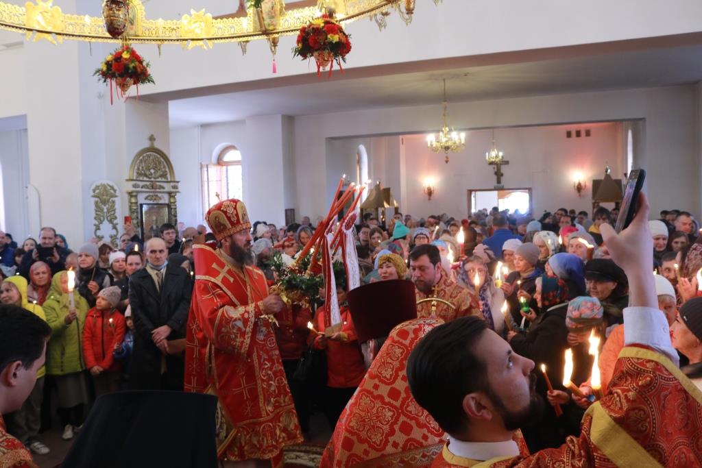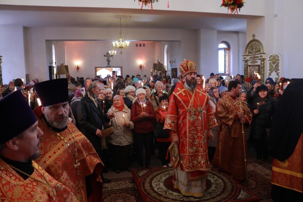 В день Воскресения Христова Преосвященнейший епископ Усть-Каменогорский и Семипалатинский Амфилохий возглавил служение Пасхальной вечерни в Андреевском кафедральном соборе города Усть-Каменогорска.