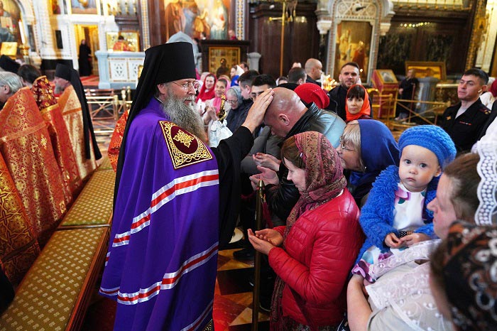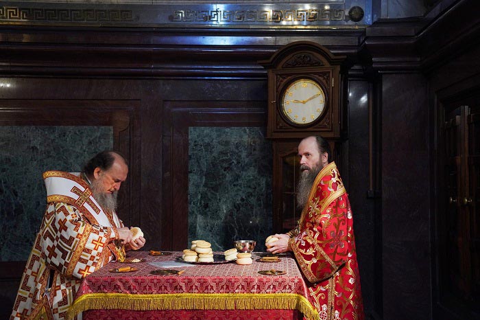 Проповедь перед причастием произнес протоиерей Александр Березовский, клирик храма Благовещения Пресвятой Богородицы в Петровском парке города Москвы.