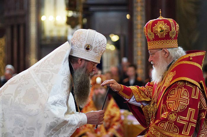 По окончании Литургии Предстоятель Русской Православной Церкви напутствовал епископа Талдыкорганского Клавдиана на служение и вручил ему архиерейский жезл. По традиции новорукоположенный архиерей преподал верующим первое архипастырское благословение.