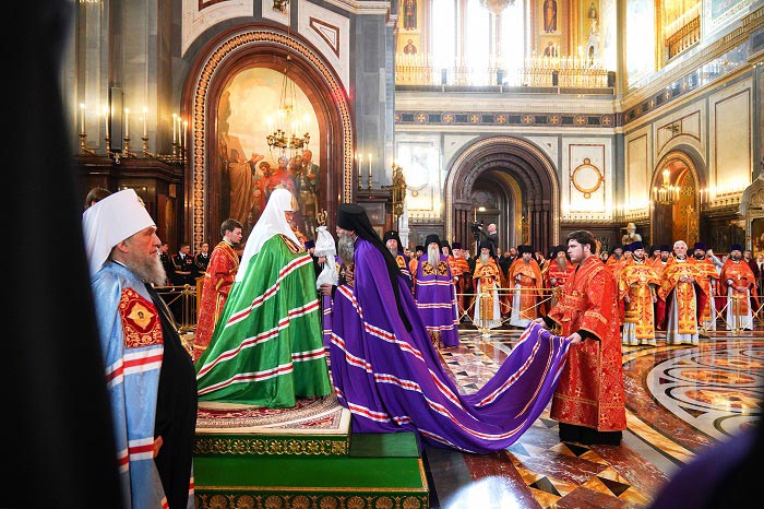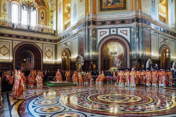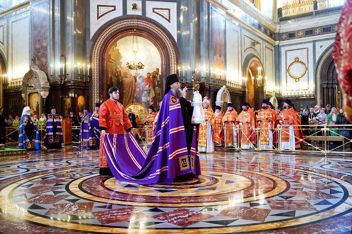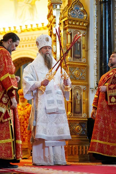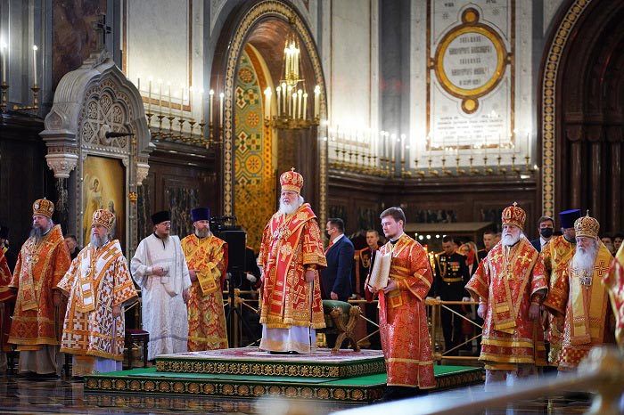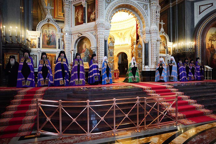 Богослужебные песнопения исполнил Патриарший хор Храма Христа Спасителя (регент – И.Б. Толкачев).